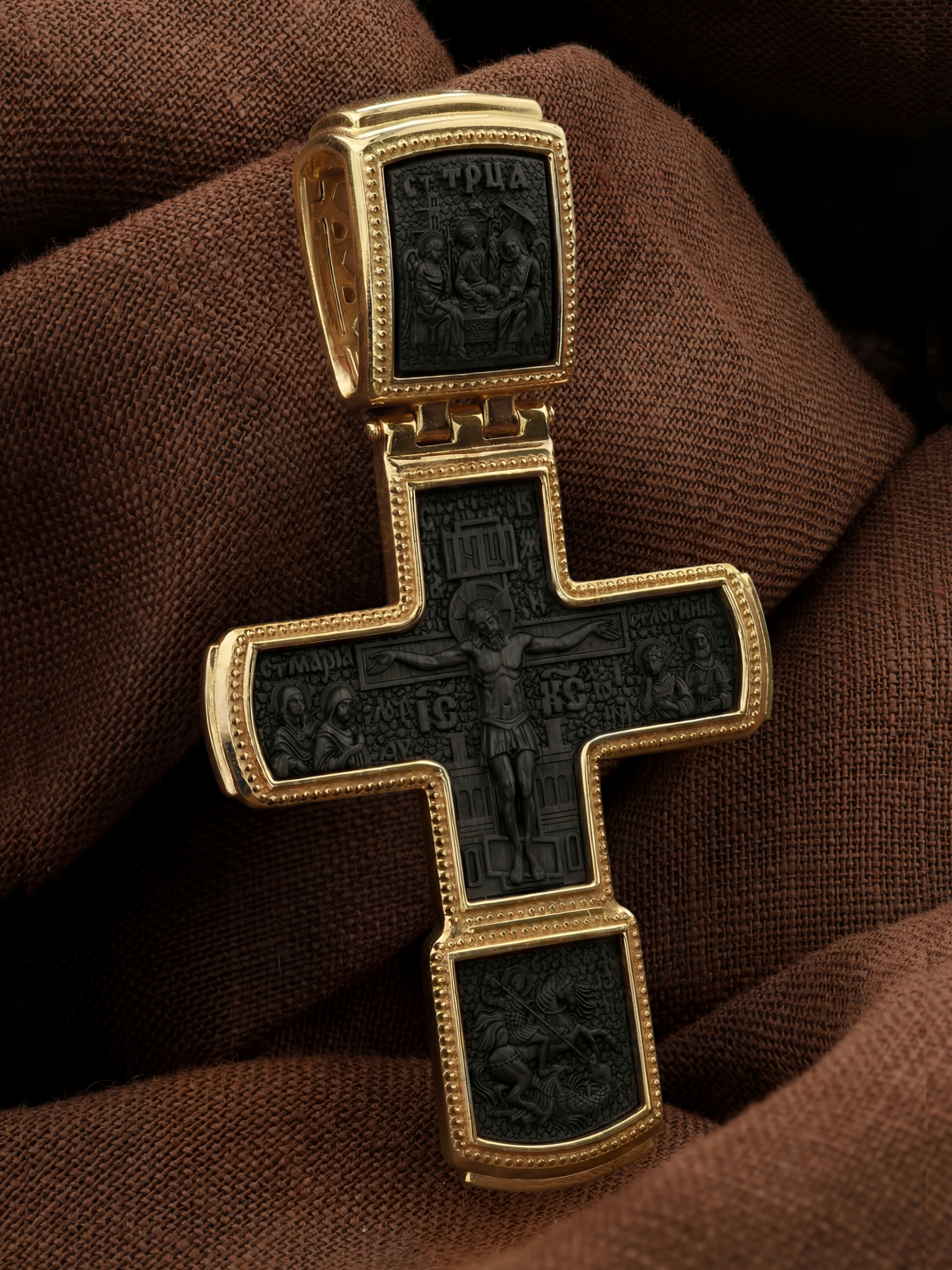 Крест из лимонного золота c эбеновым деревом