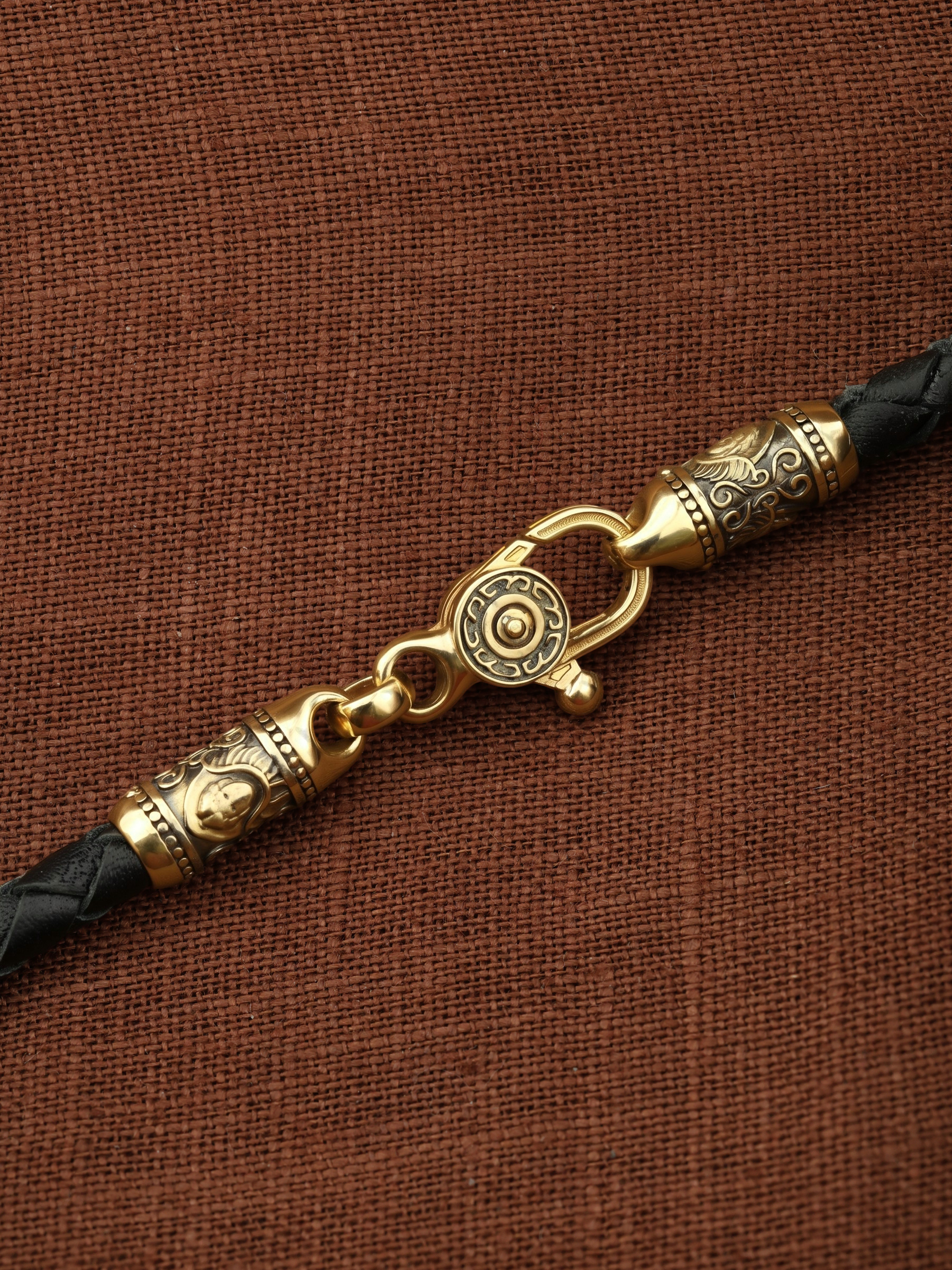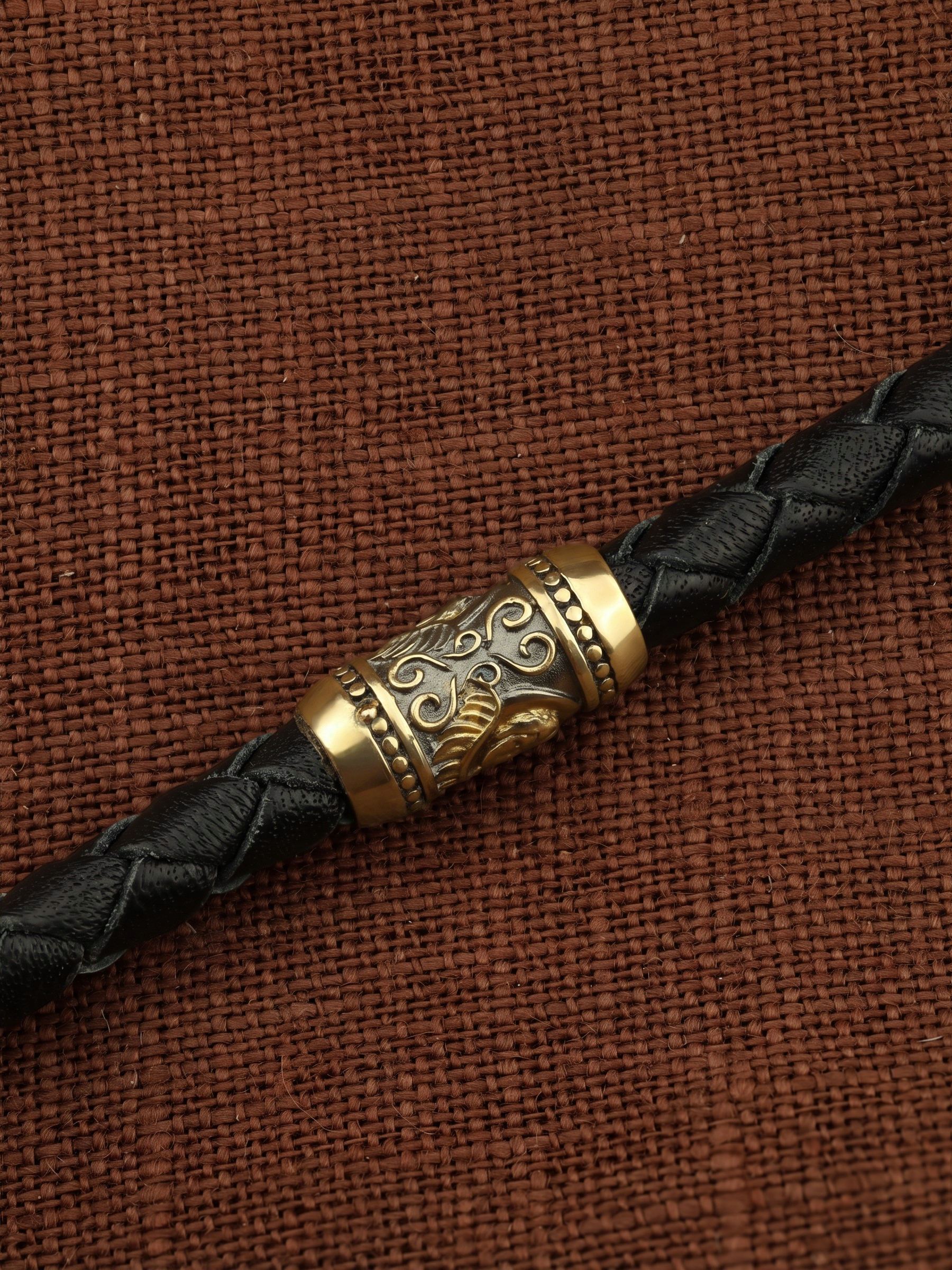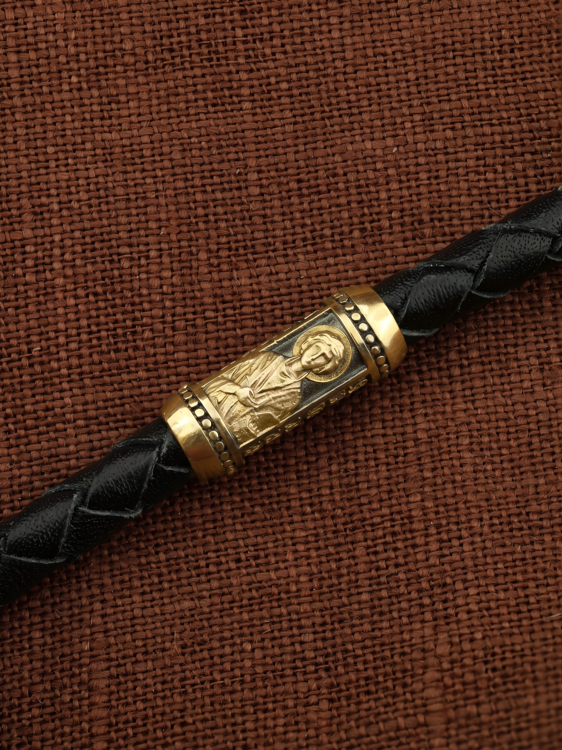Гайтан из лимонного золота c кожаным шнурком