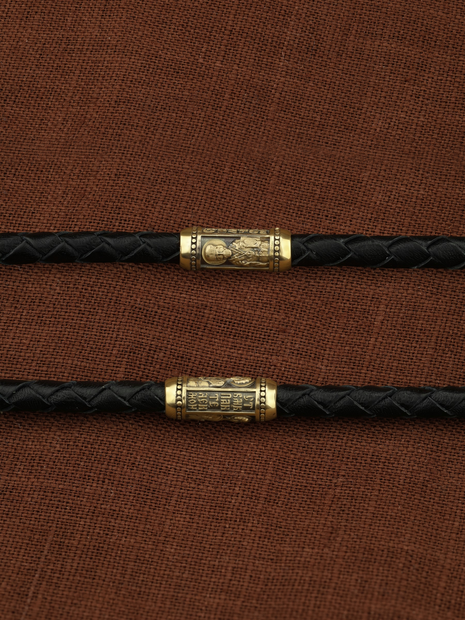 Гайтан из лимонного золота c кожаным шнурком