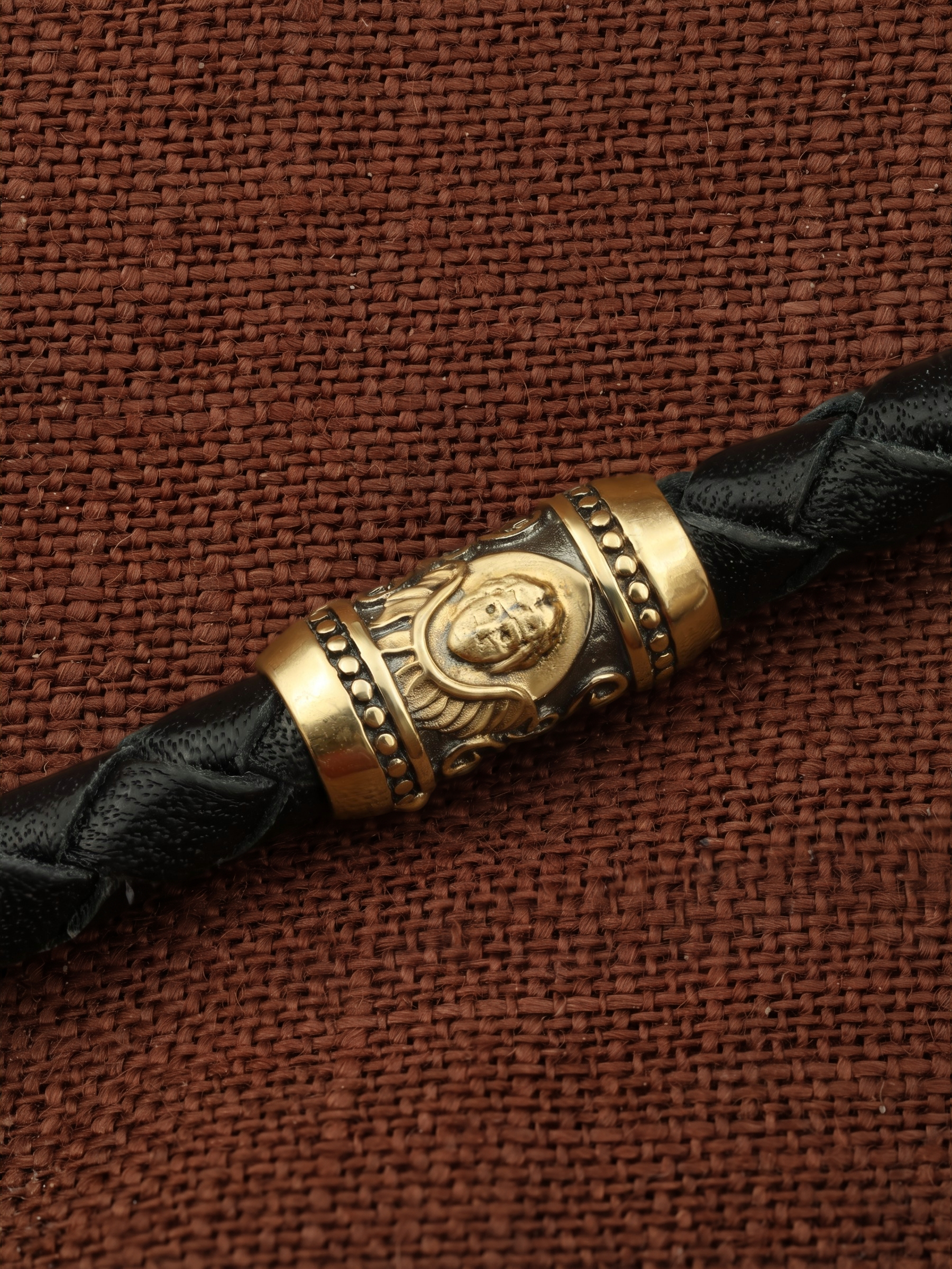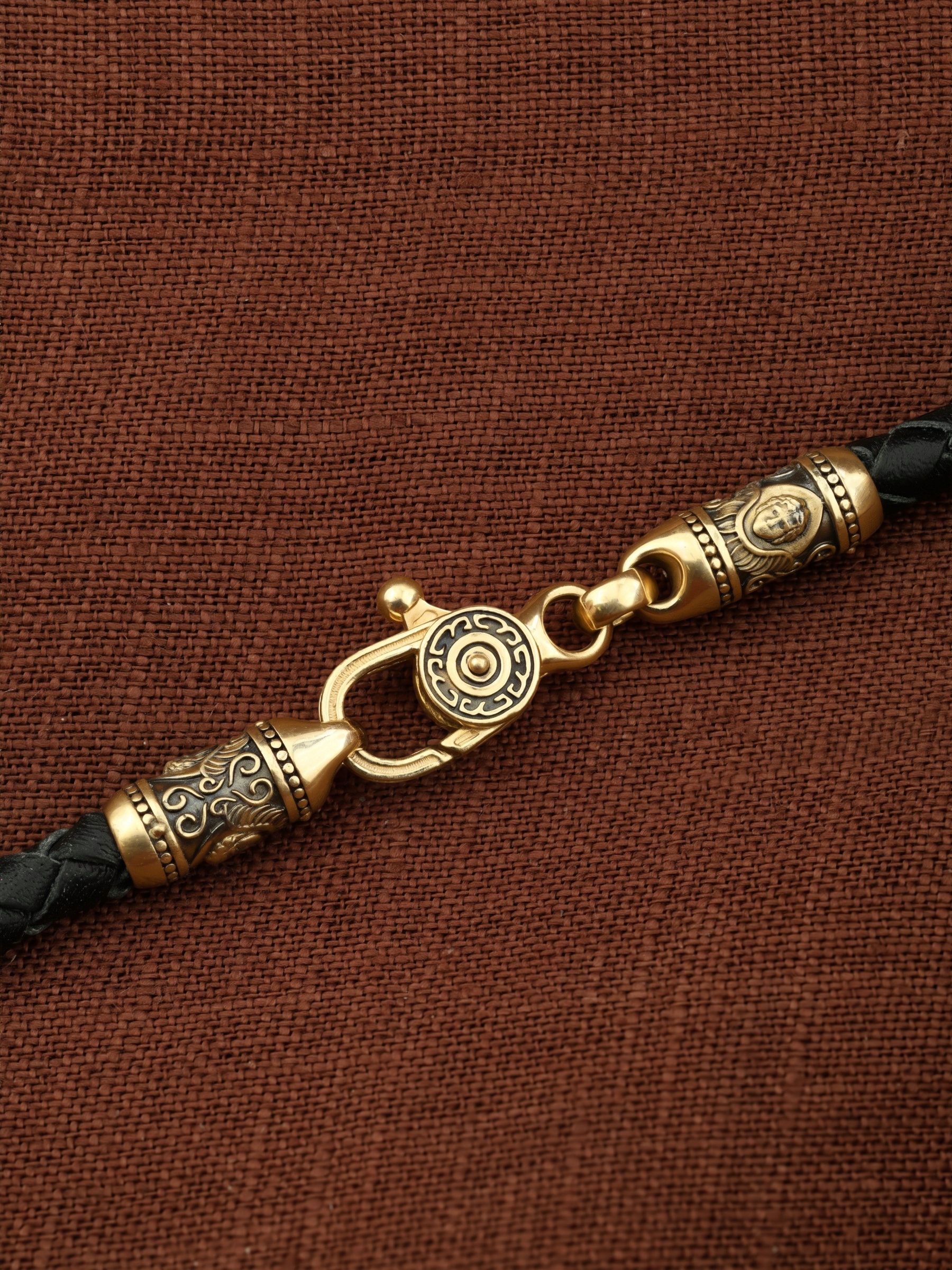 Гайтан из лимонного золота c кожаным шнурком