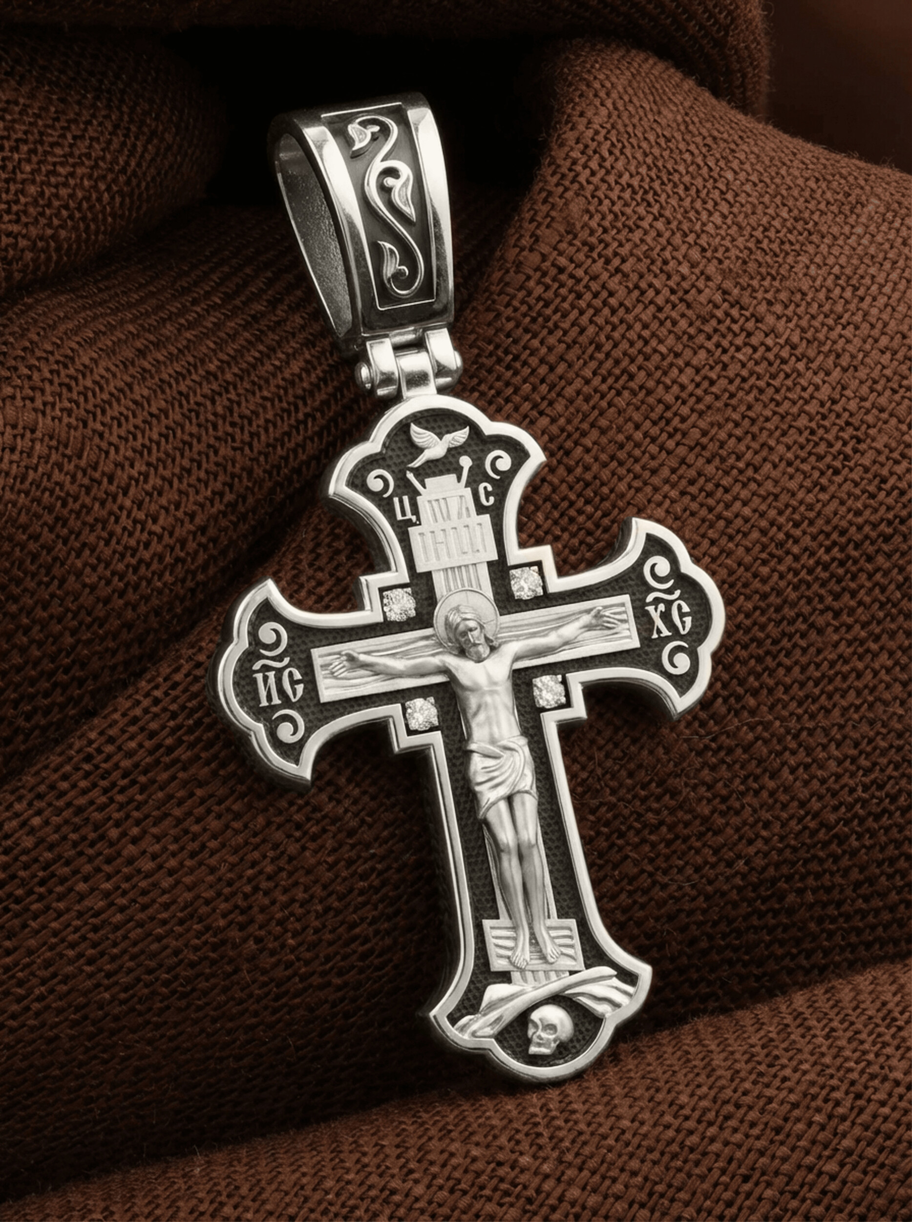 Крест из белого золота c бриллиантами