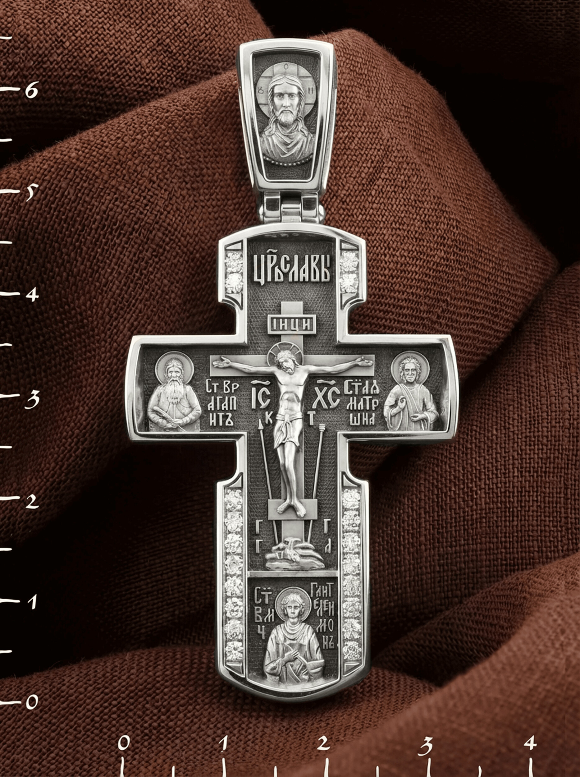 Как действенная помощь в немощах и болезнях был создан крест с образами святых целителей и со знаменитой афонской иконой Божией Матери «Всецарица».