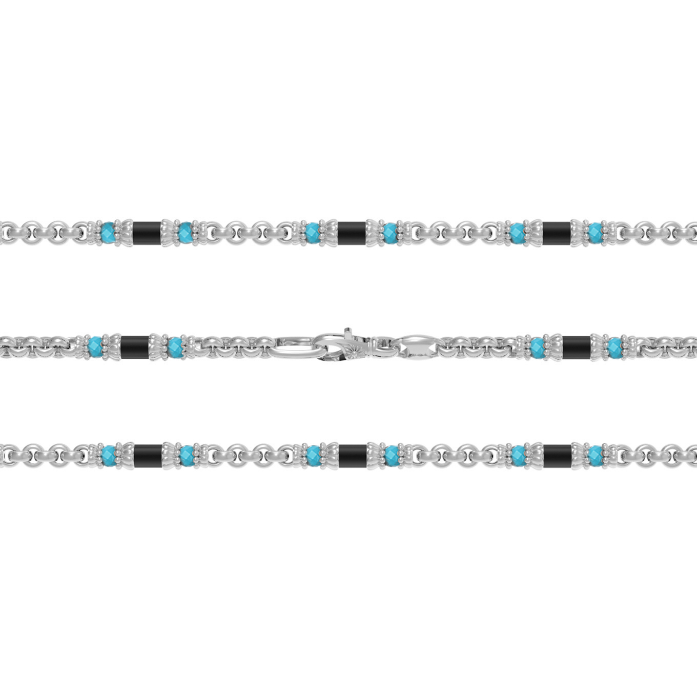 Цепь из белого золота c бирюзой и ониксом