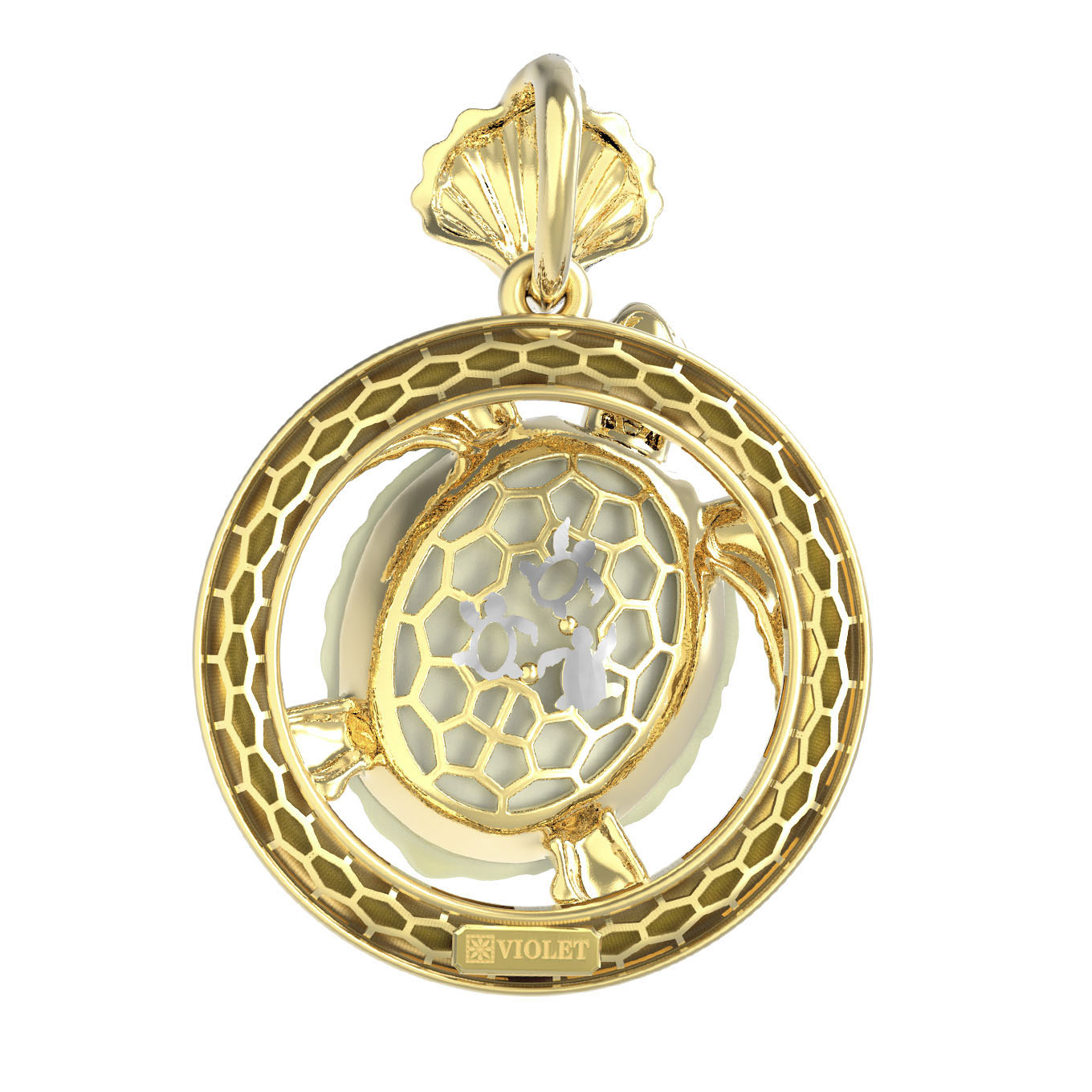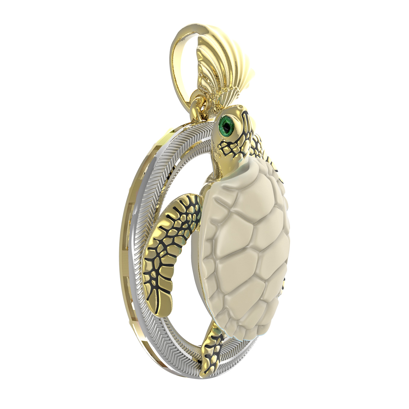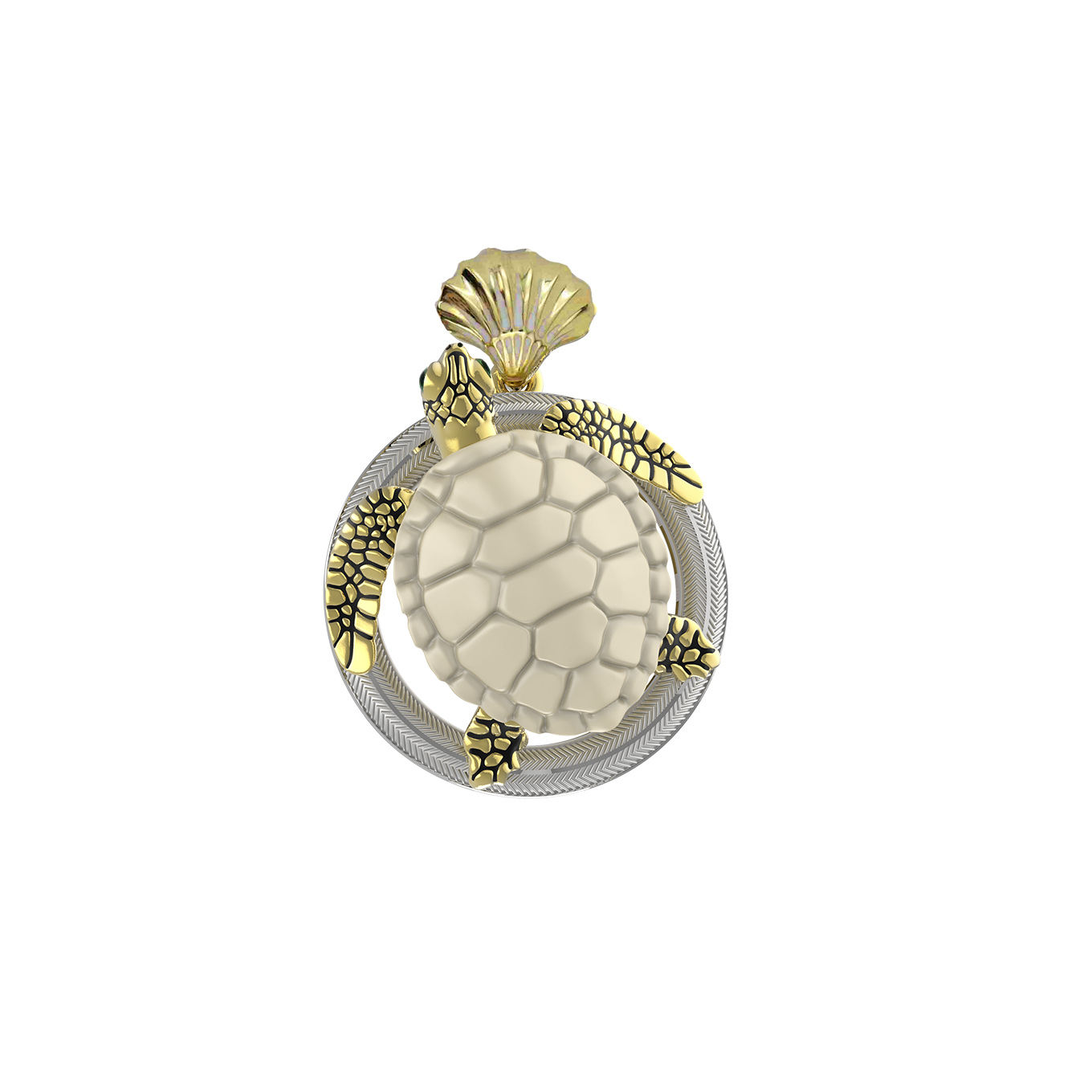 Подвеска из лимонного золота c эмалью и бивнем мамонта