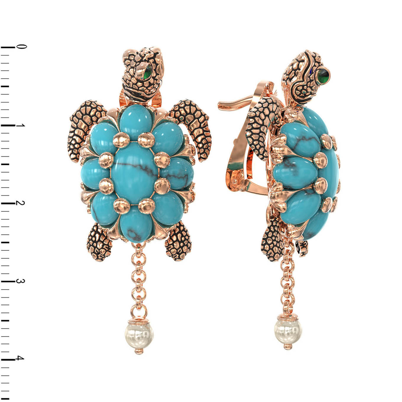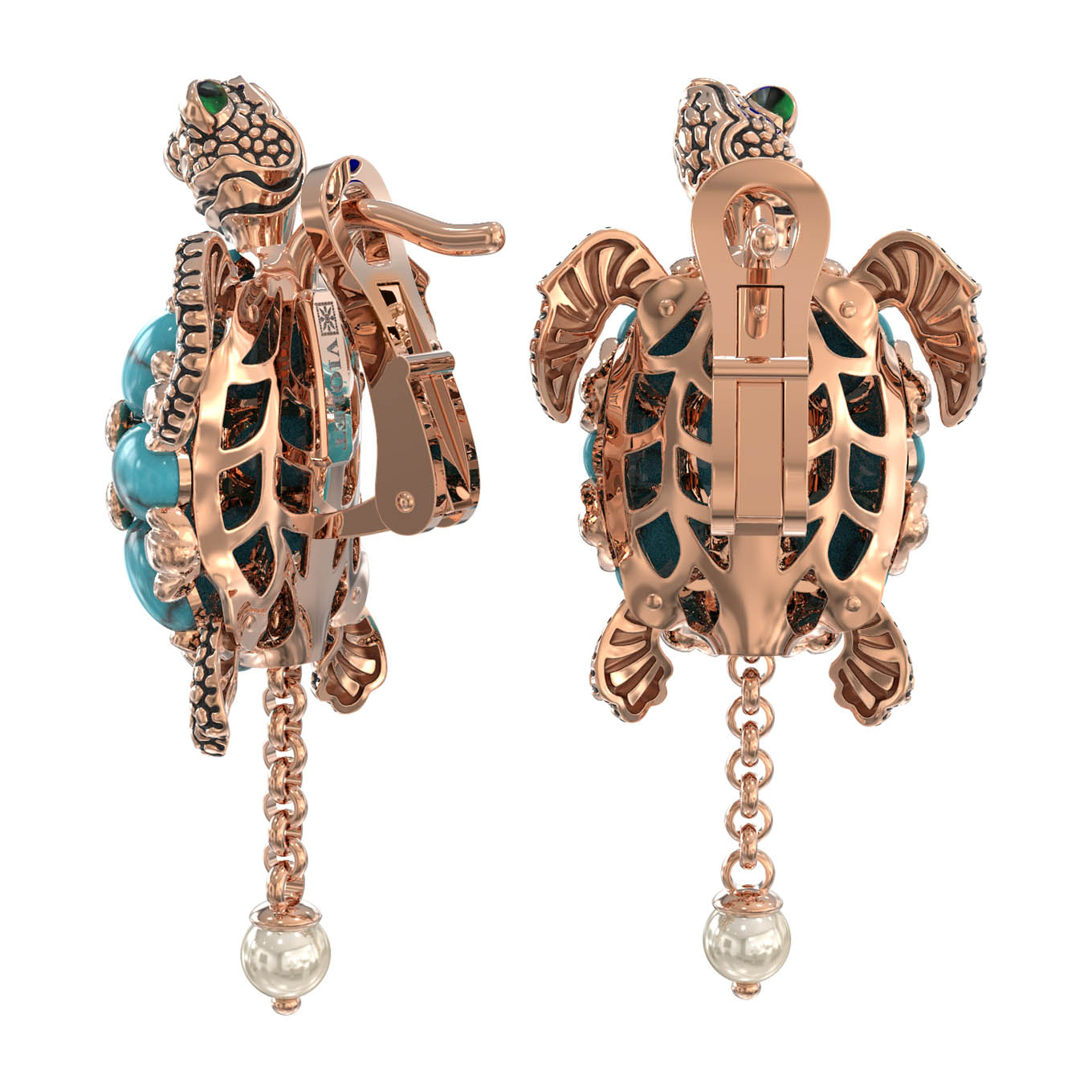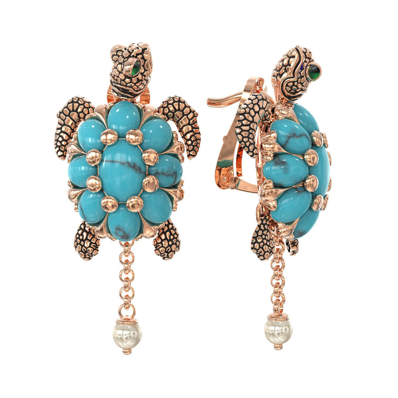 Серьги из золота c эмалью, жемчугом и бирюзой