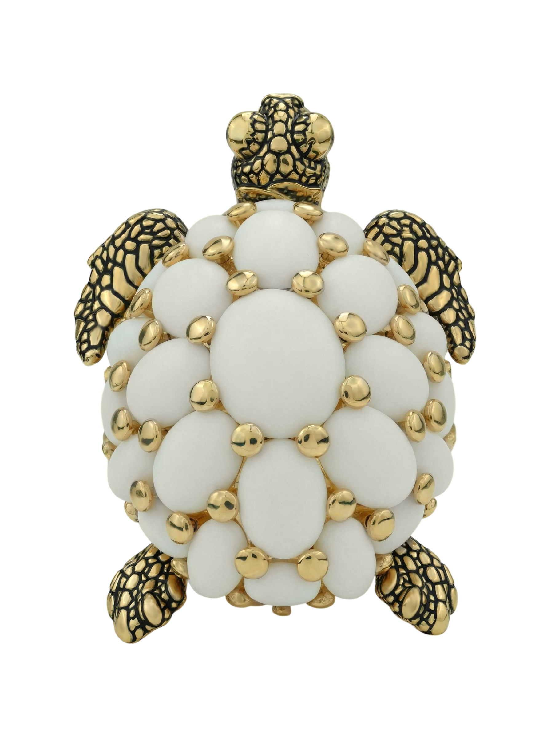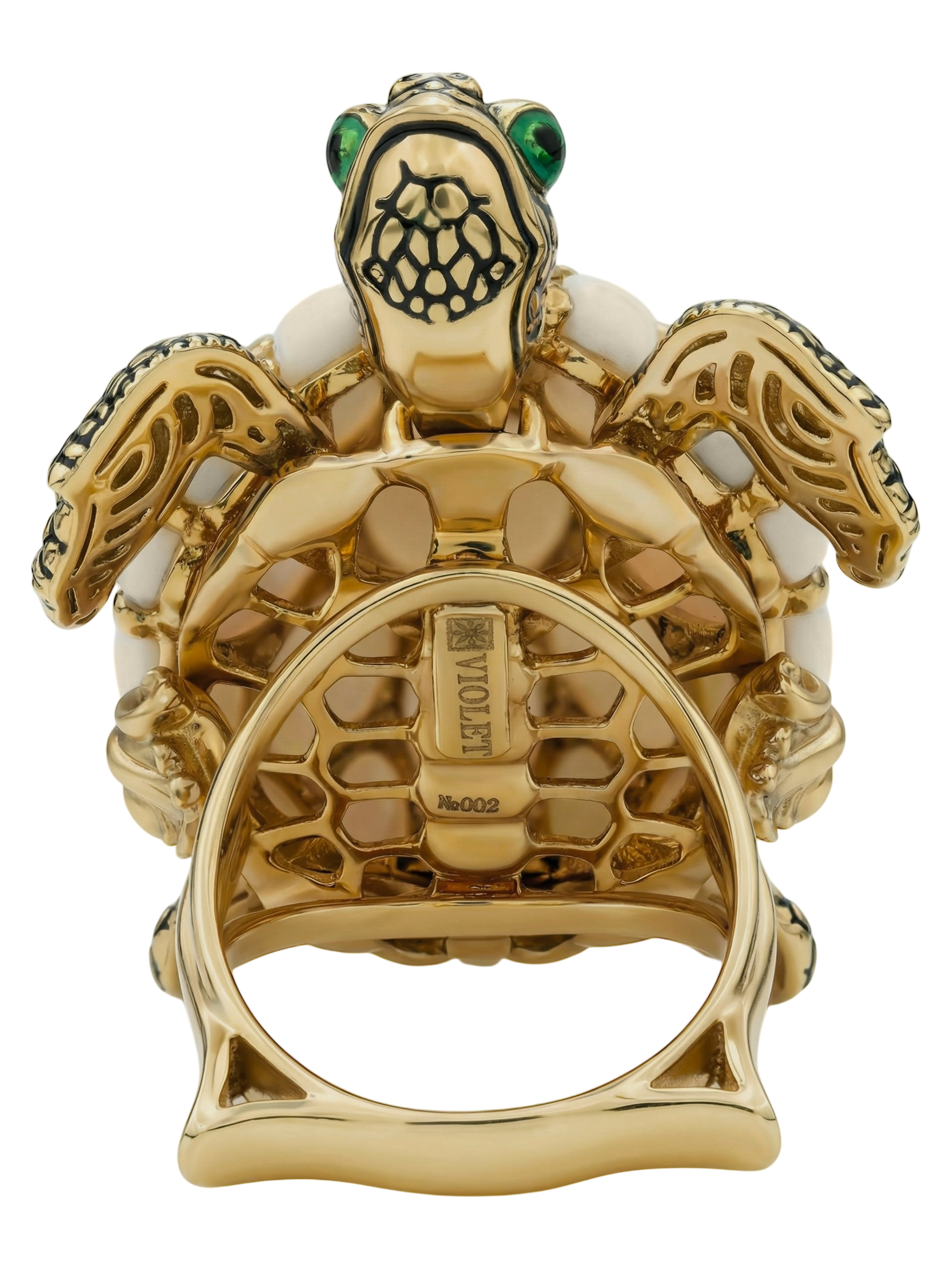 Кольцо из лимонного золота c эмалью и бивнем мамонта