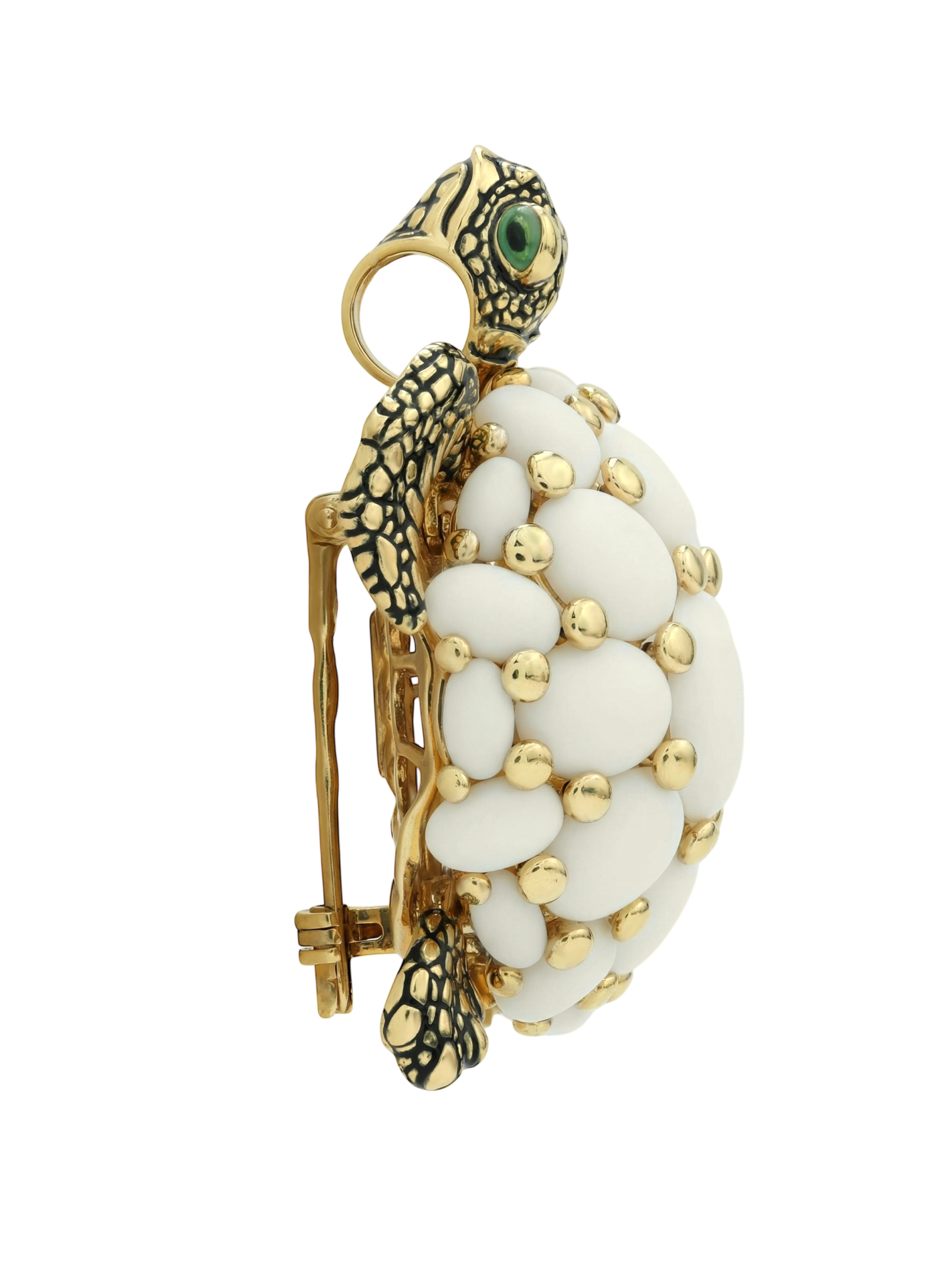 Брошь из лимонного золота c эмалью и бивнем мамонта