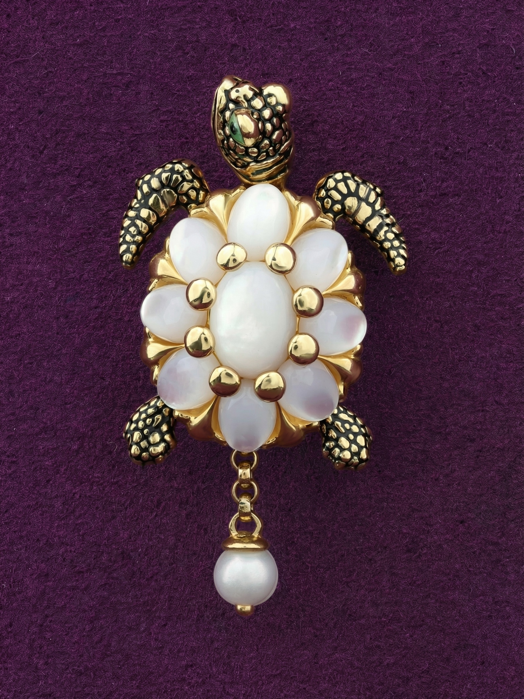 Подвеска из лимонного золота c эмалью, жемчугом и перламутром