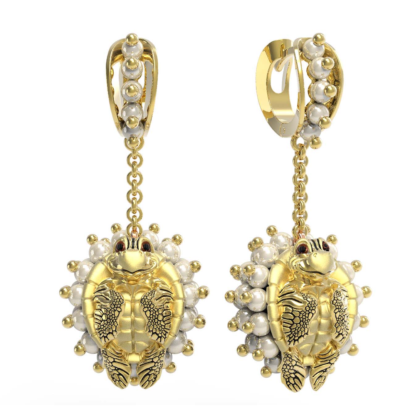 Серьги из лимонного золота c эмалью и жемчугом
