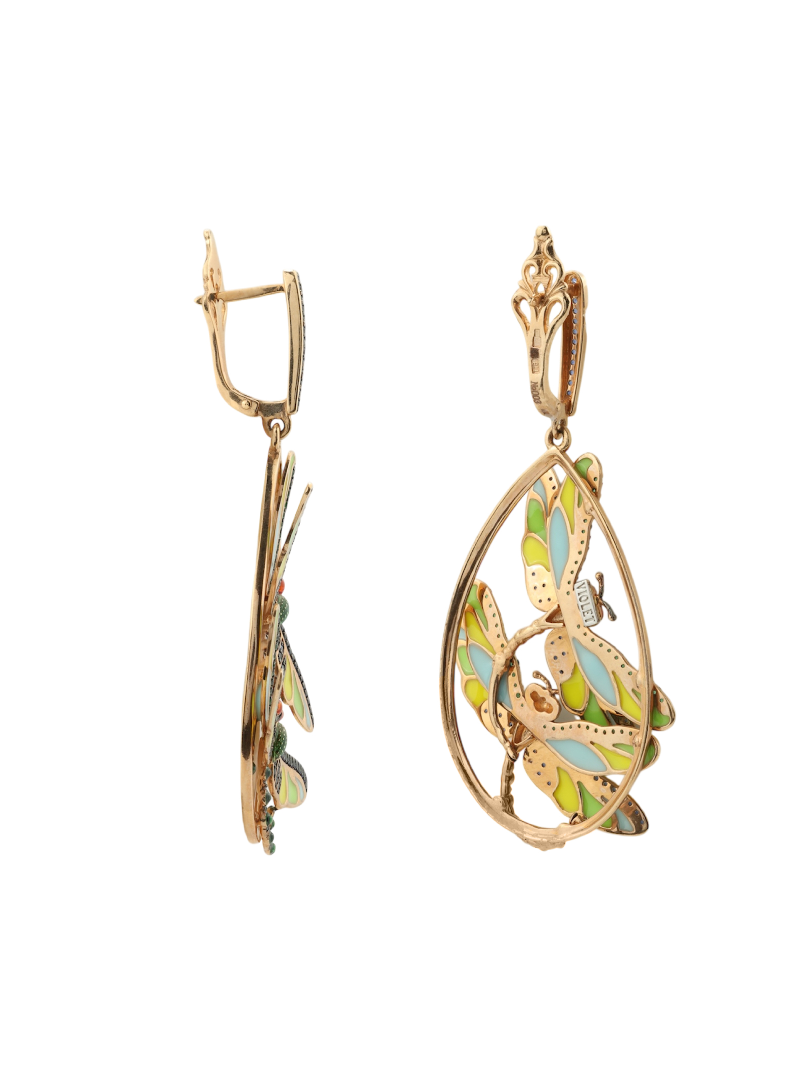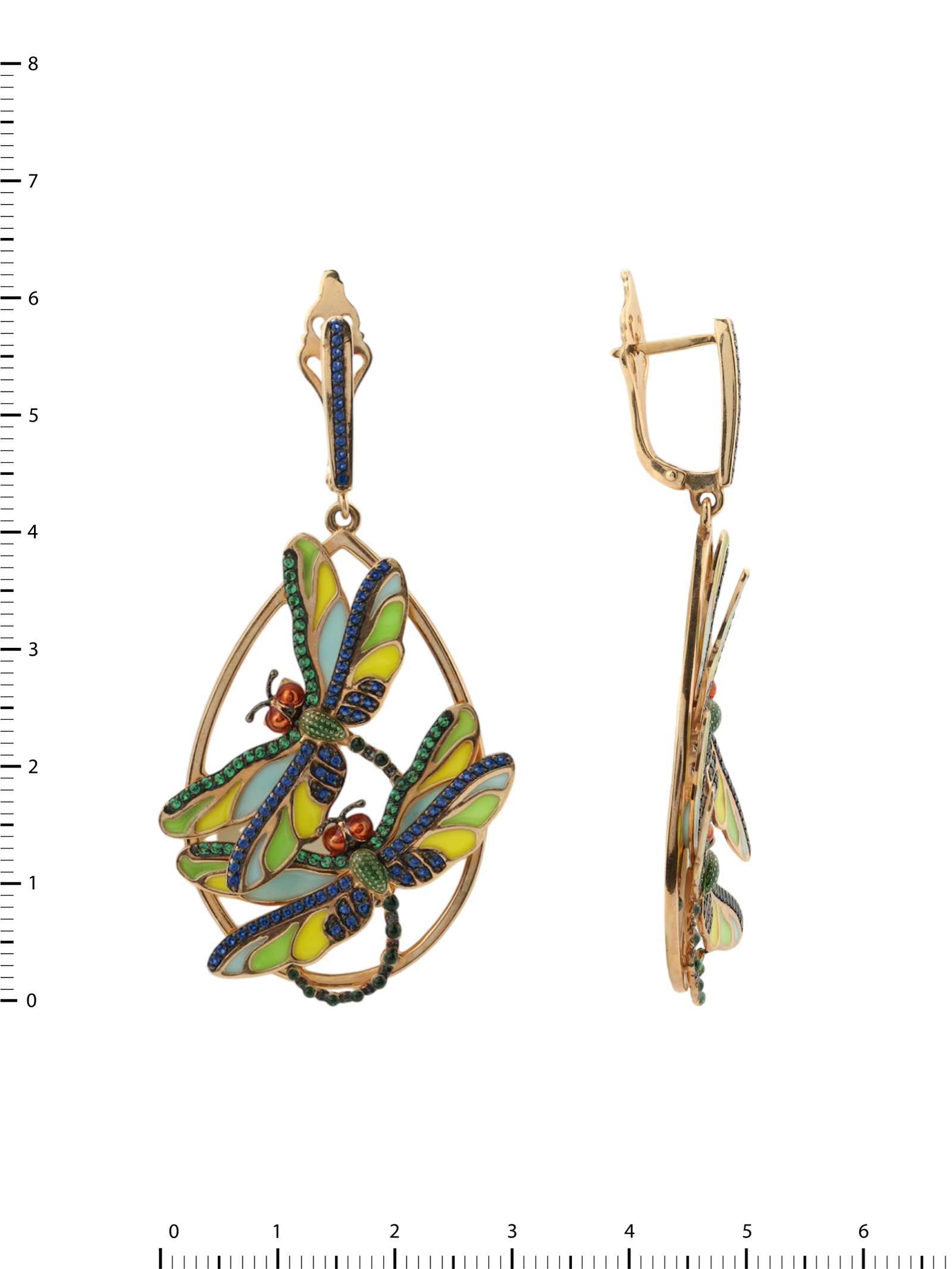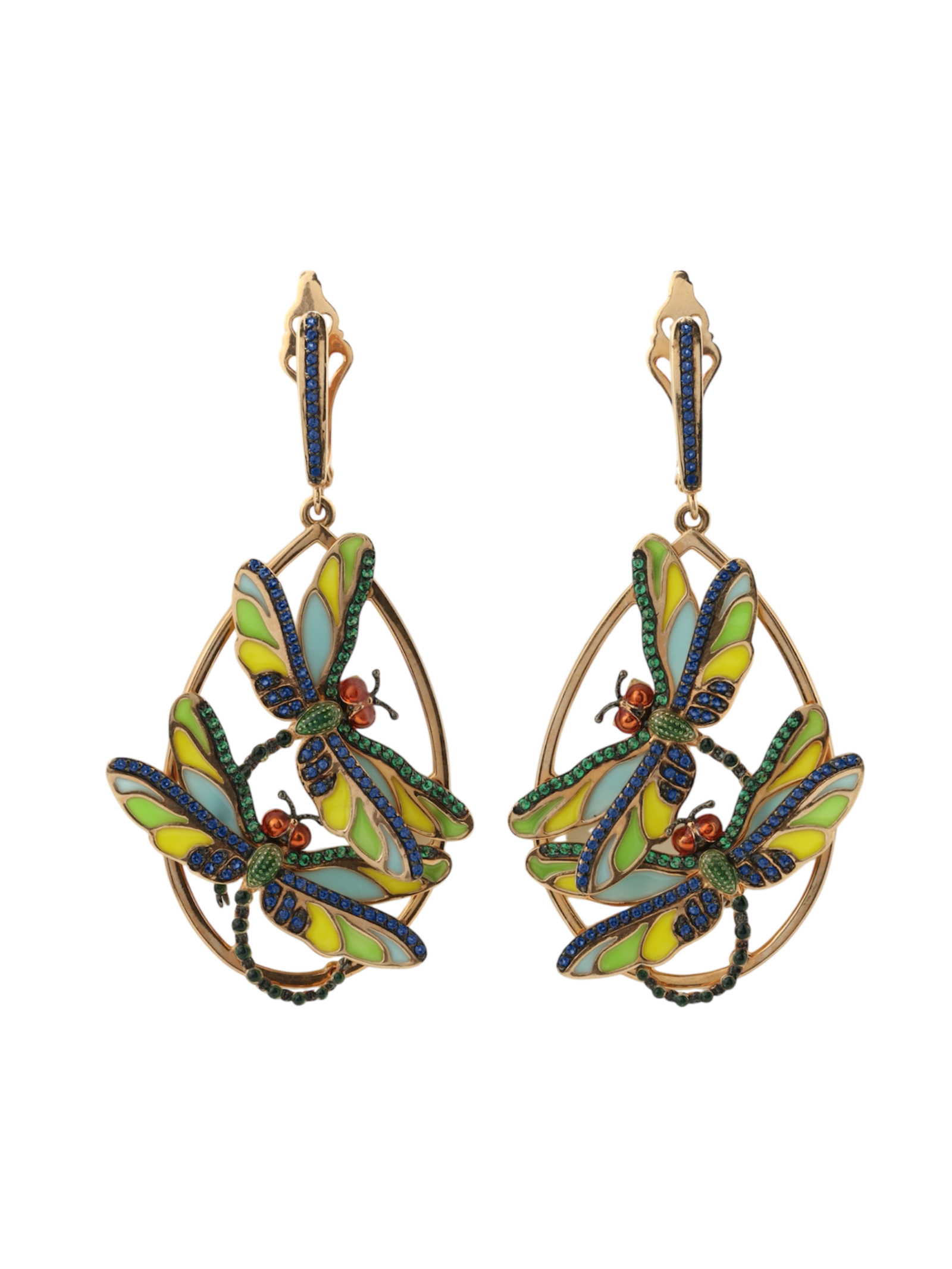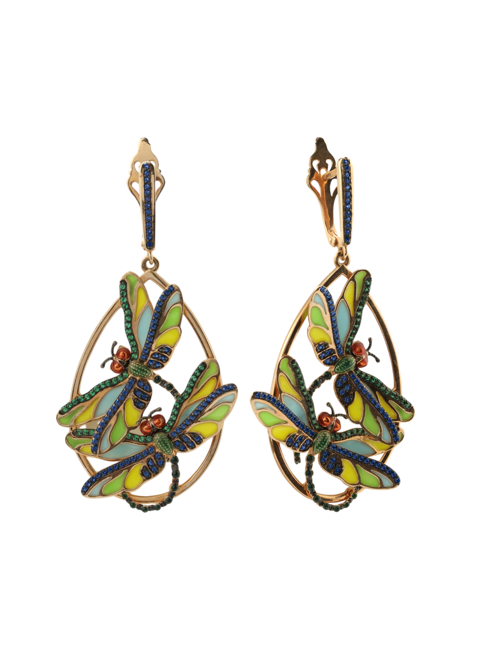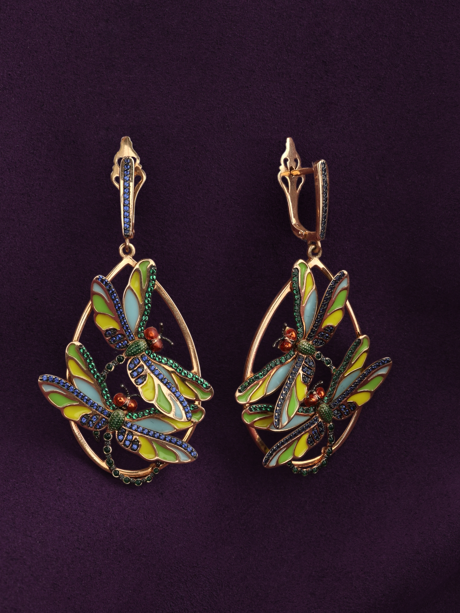 Серьги из золота c сапфиром, изумрудом и эмалью