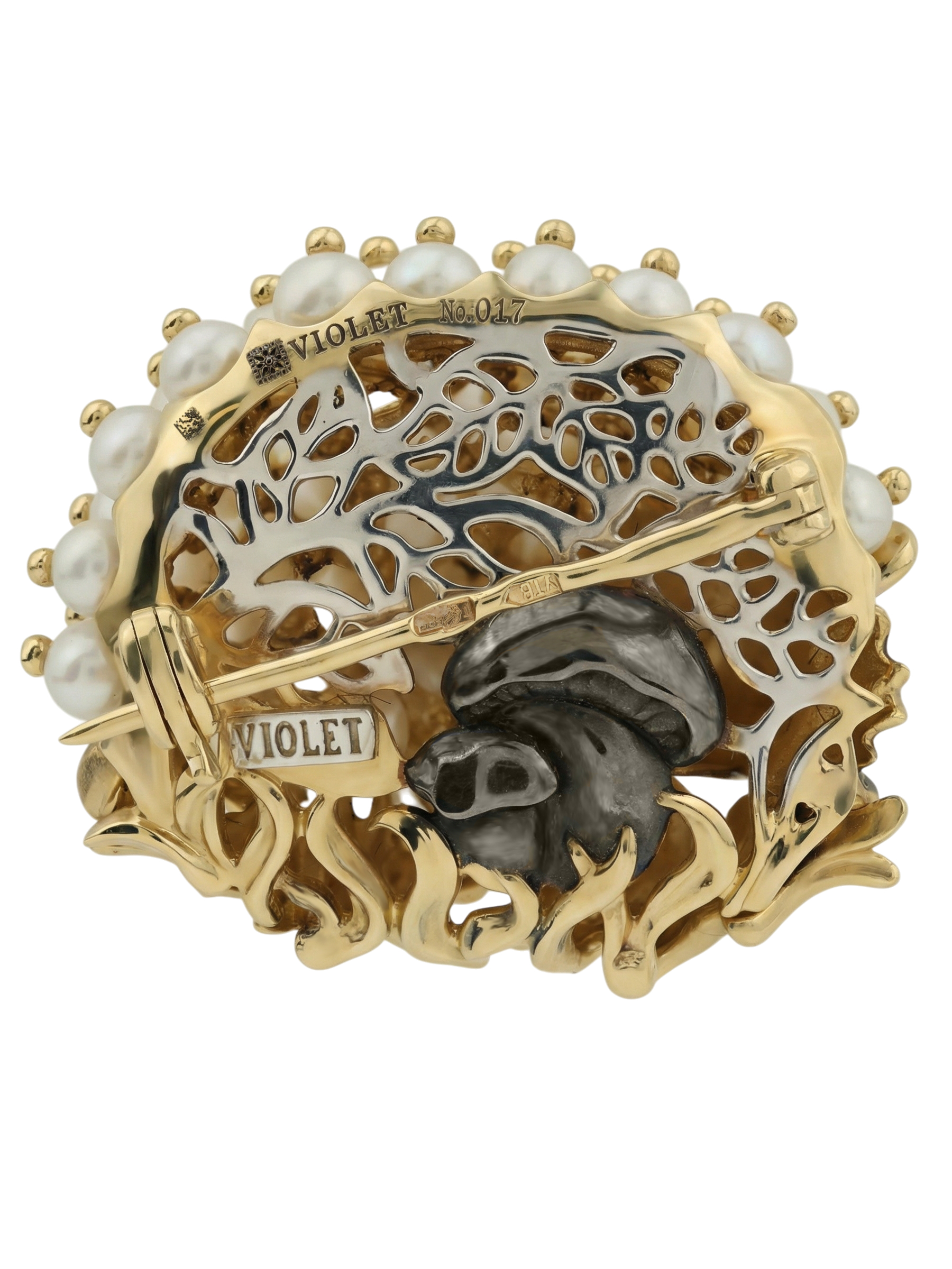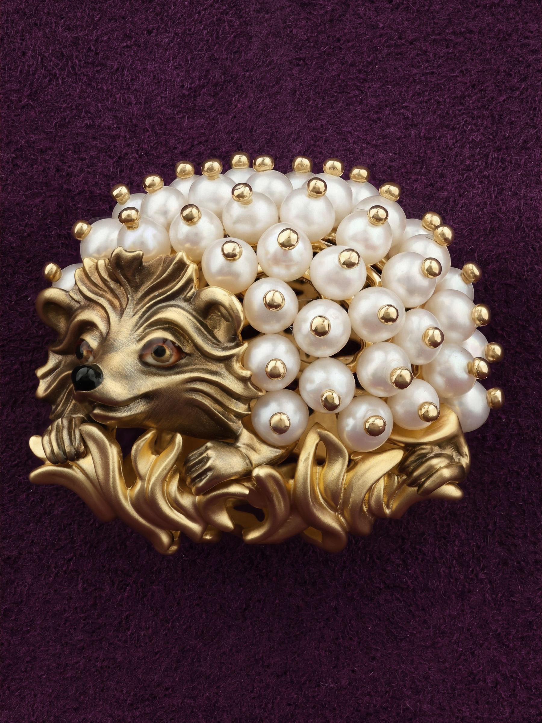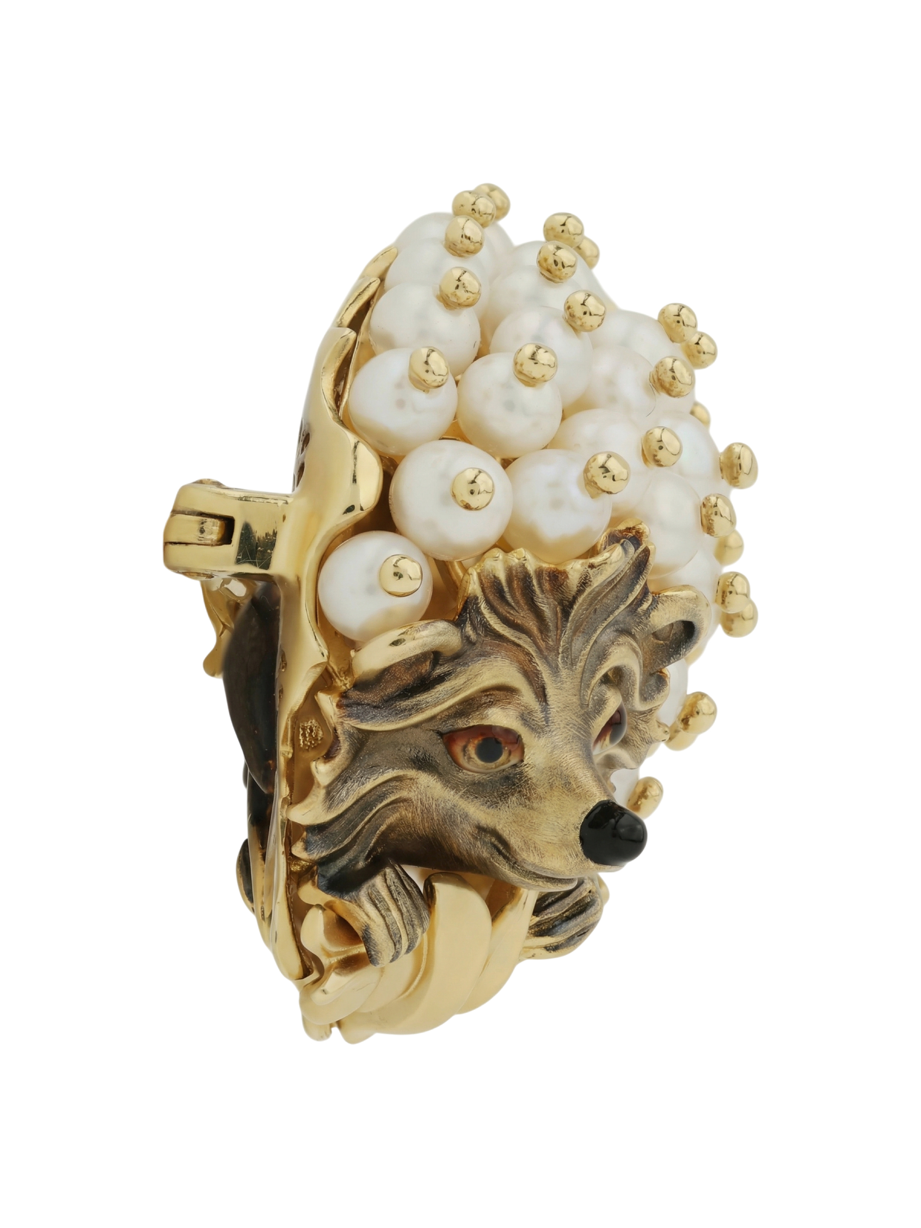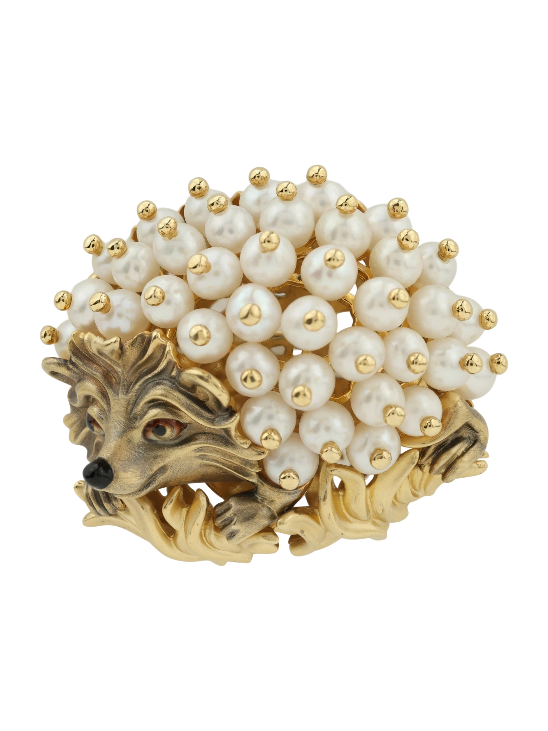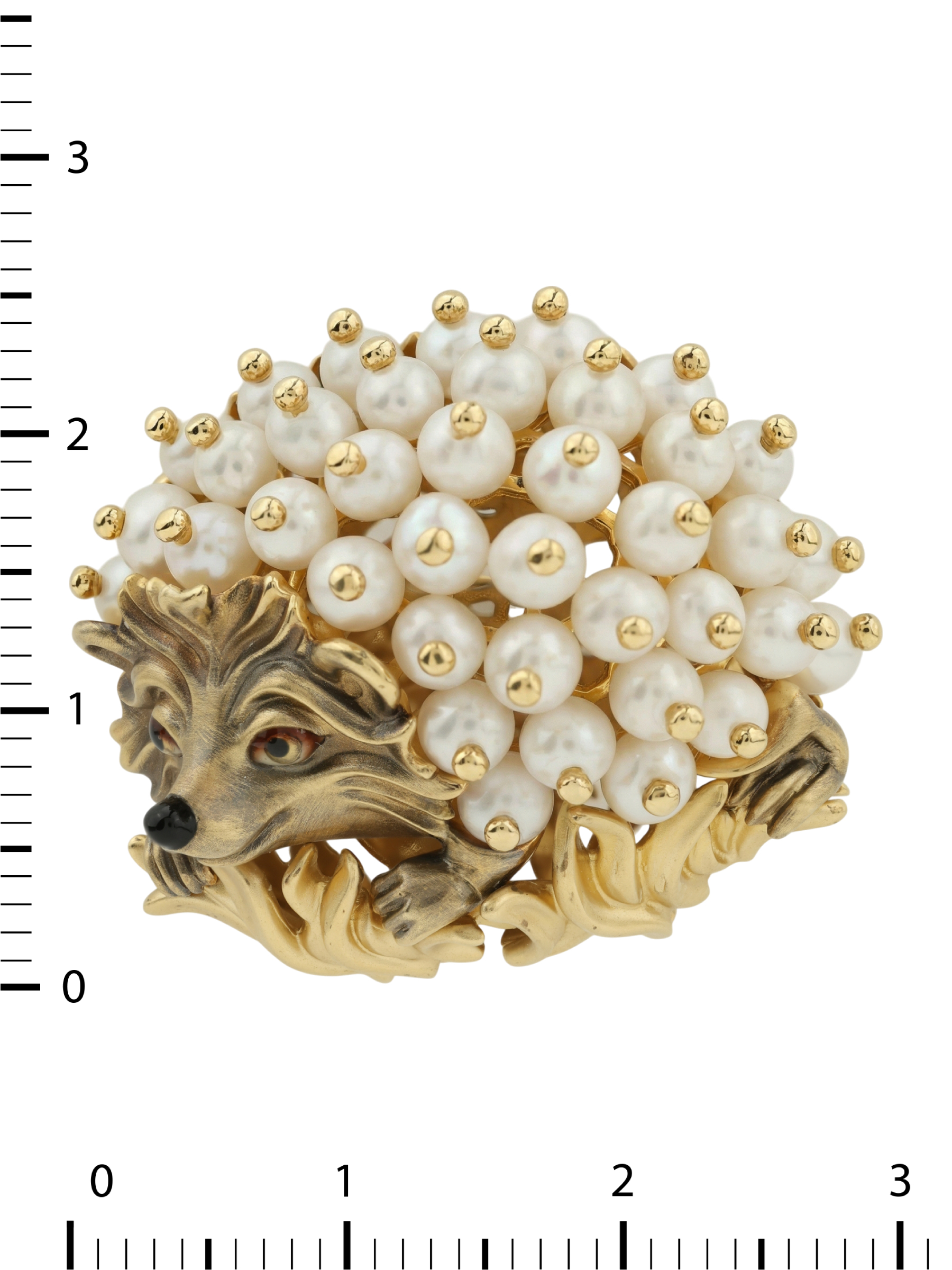 Брошь из лимонного золота c эмалью и жемчугом
