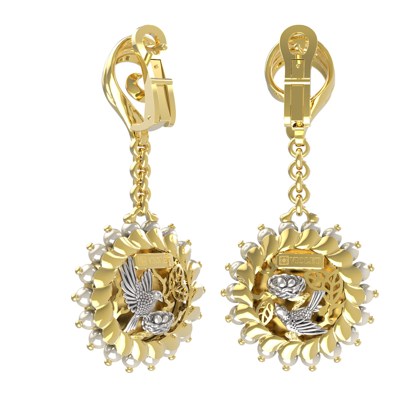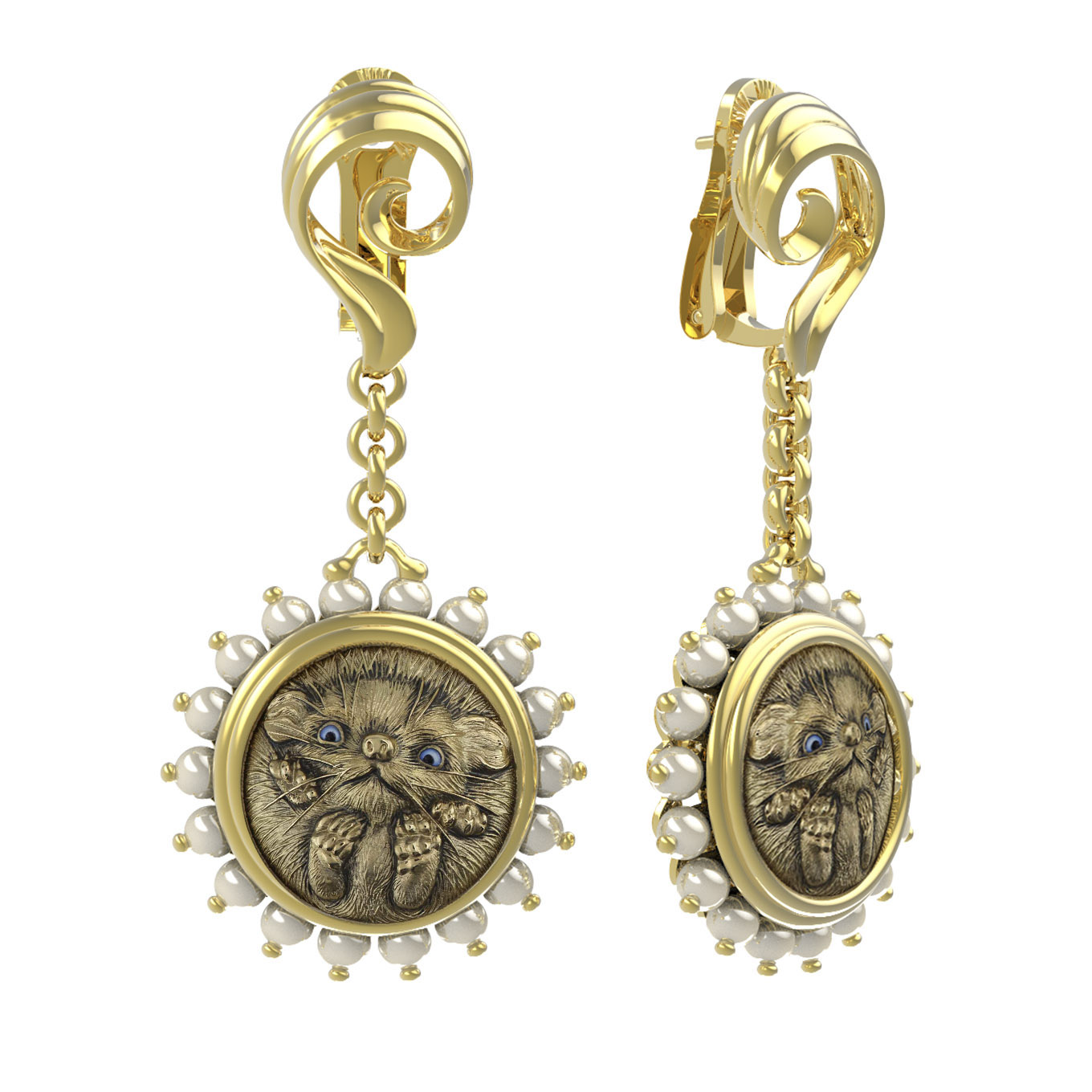 Серьги из лимонного золота c эмалью и жемчугом