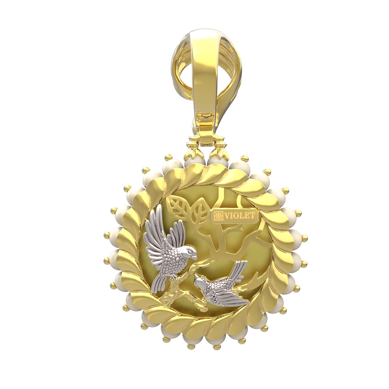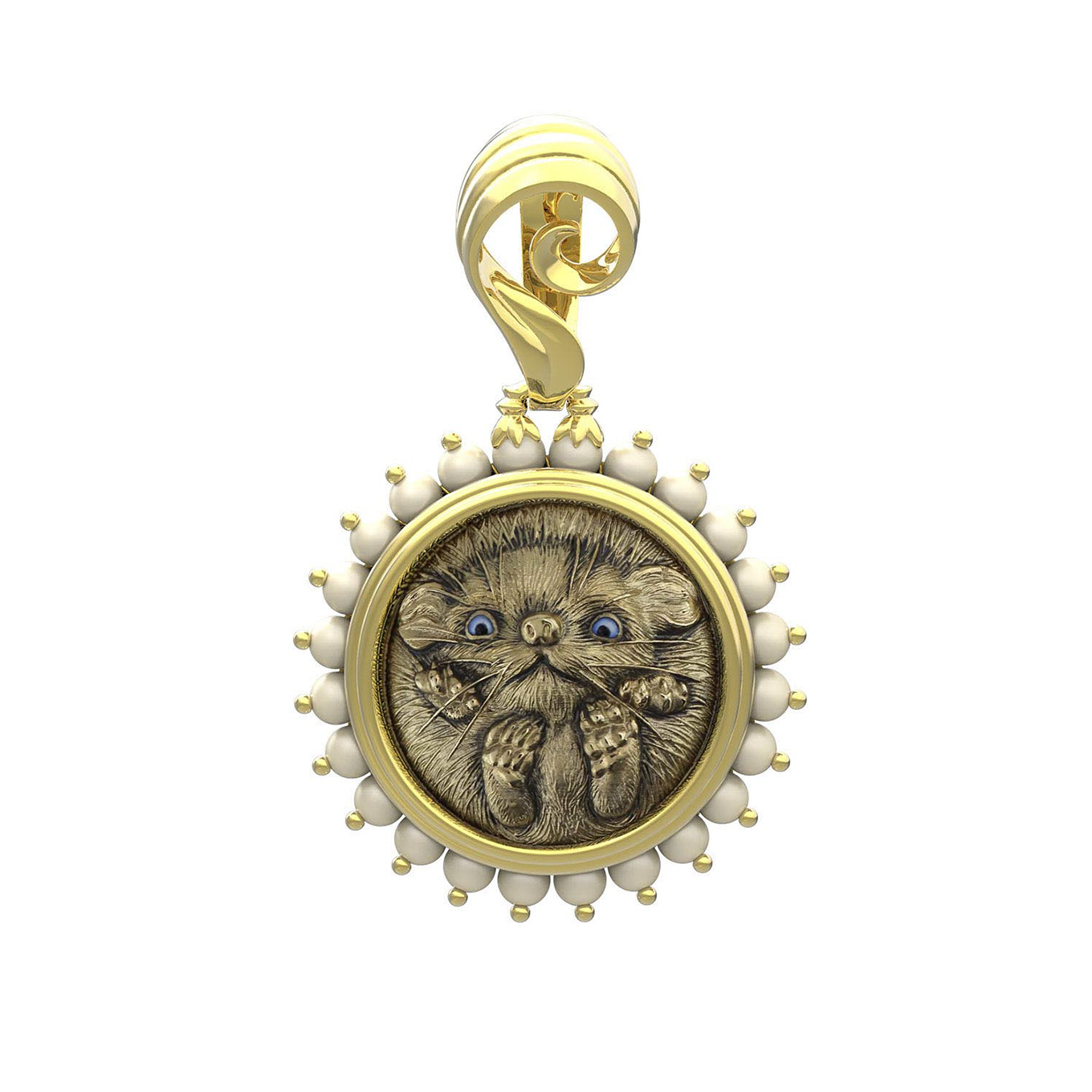 Подвеска из лимонного золота c эмалью и жемчугом
