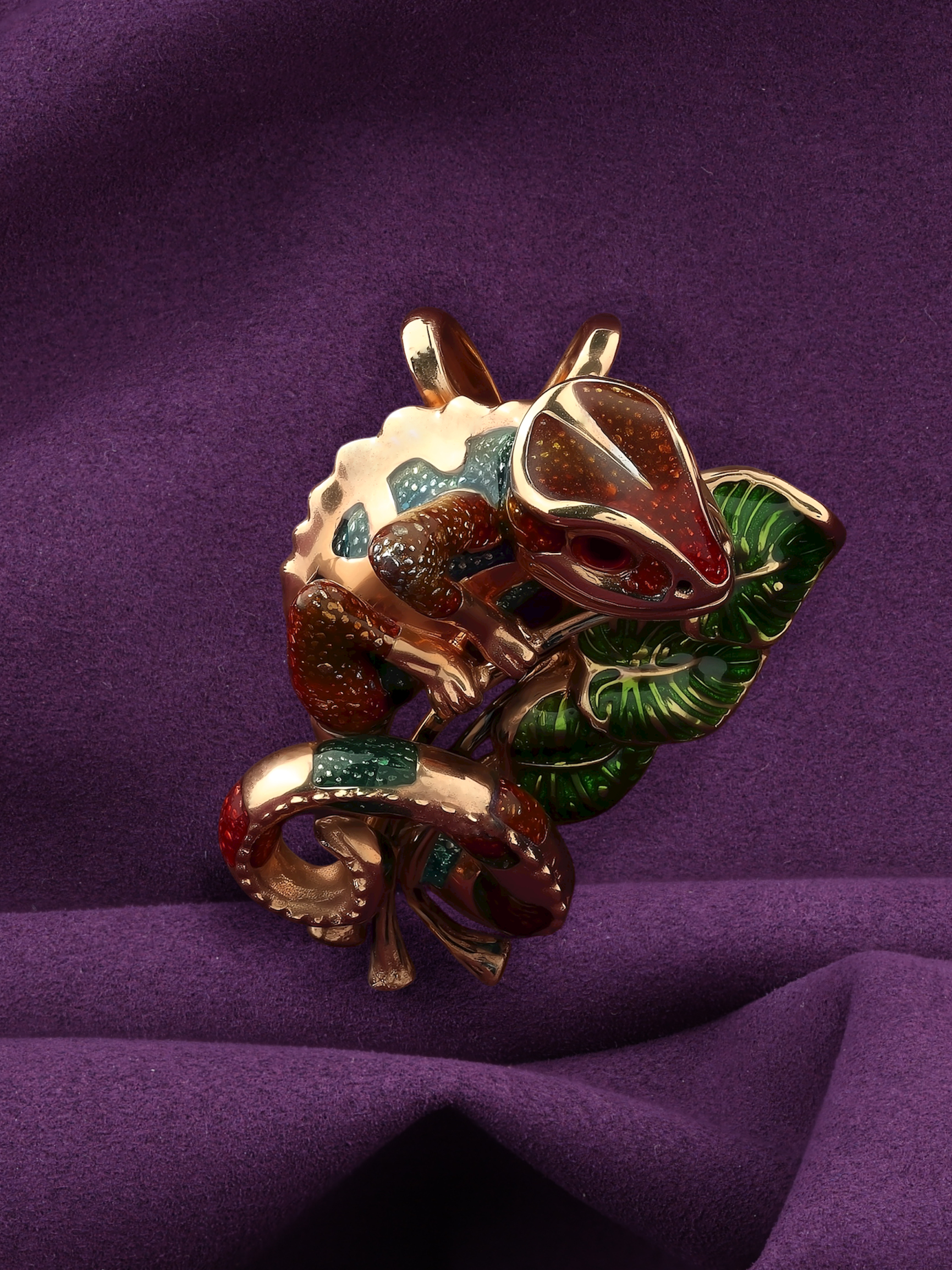 Подвеска из золота c эмалью и гранатом