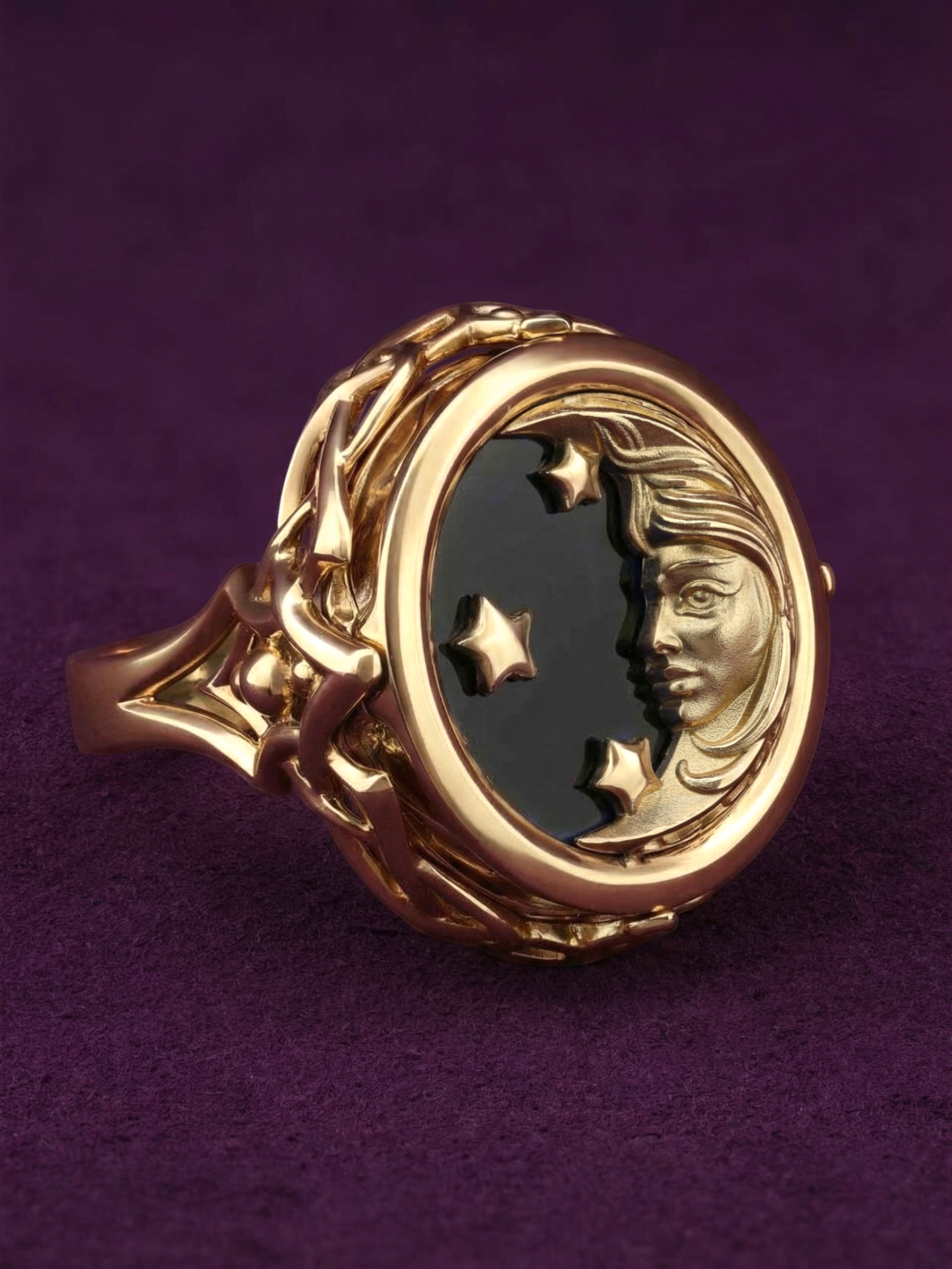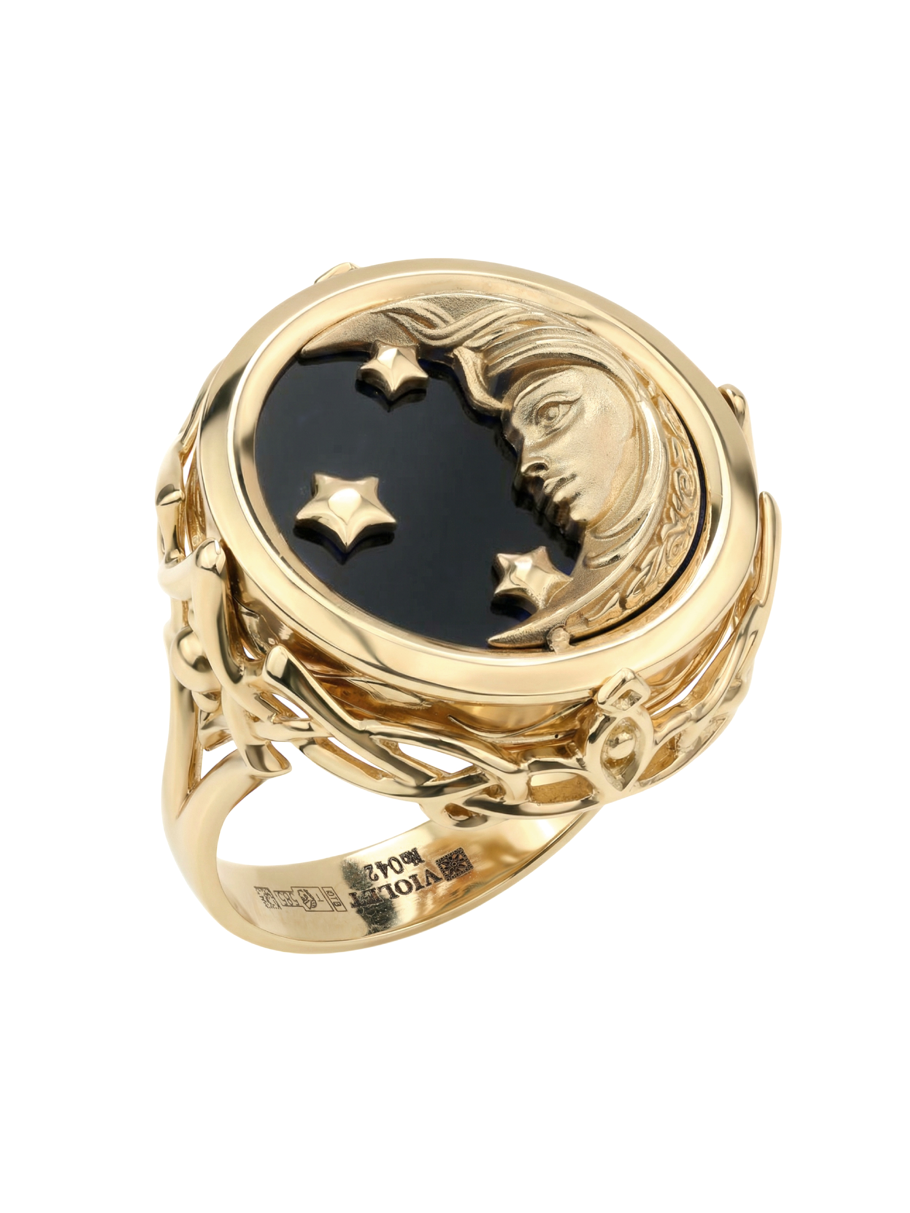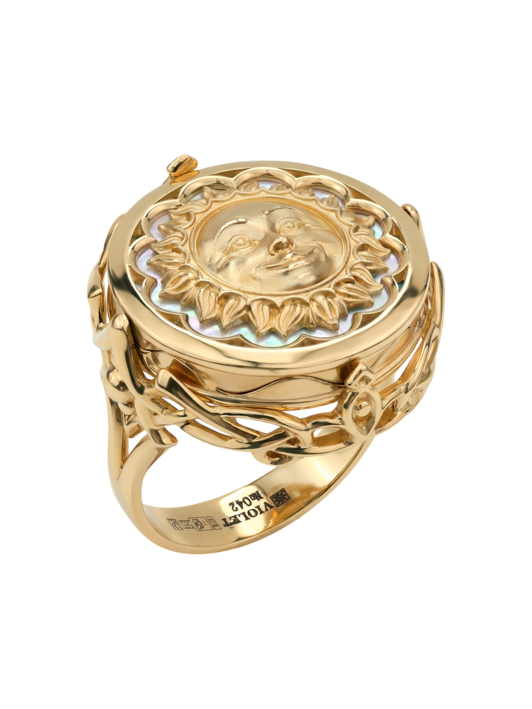Кольцо из золота c ониксом и перламутром