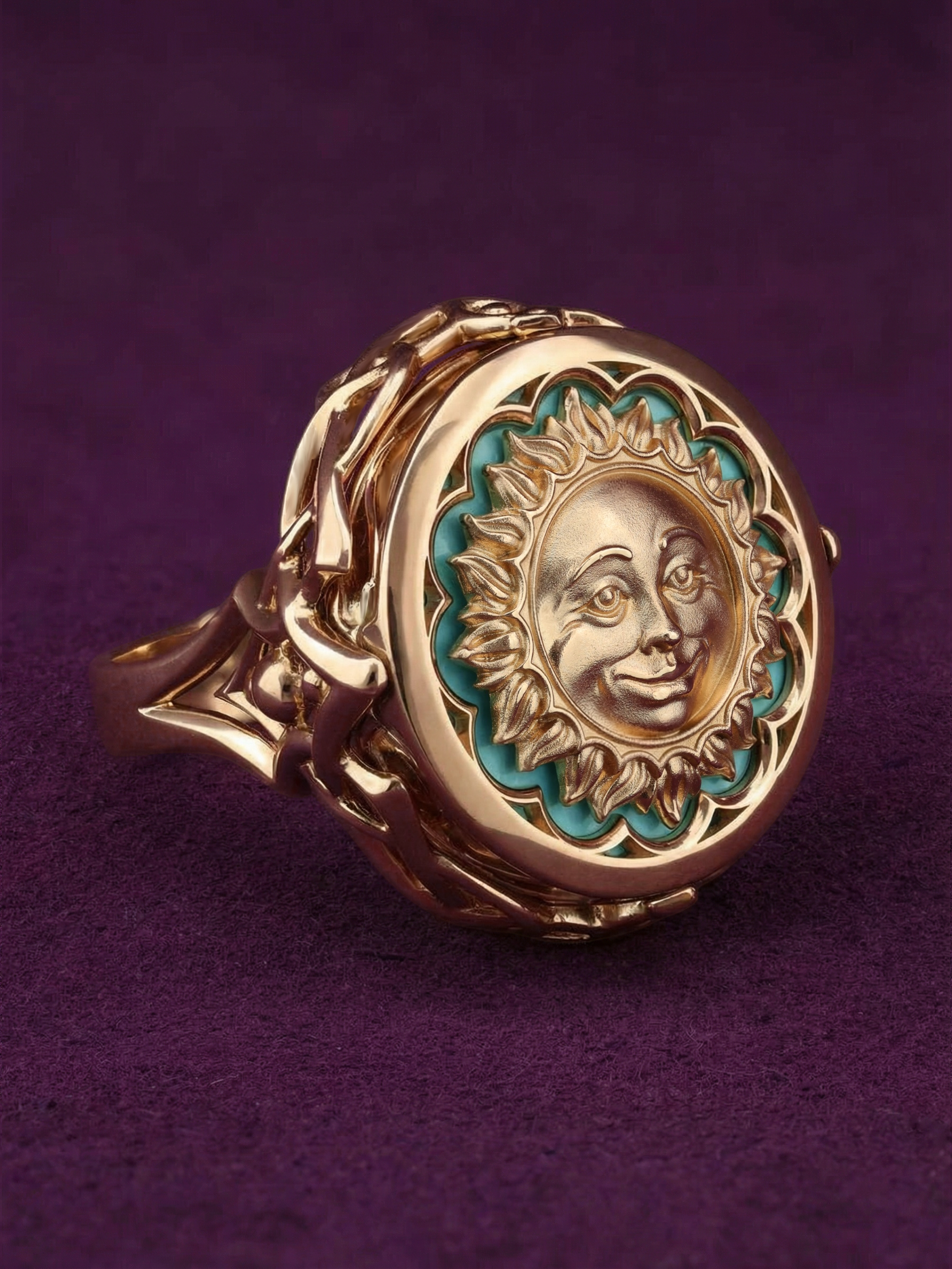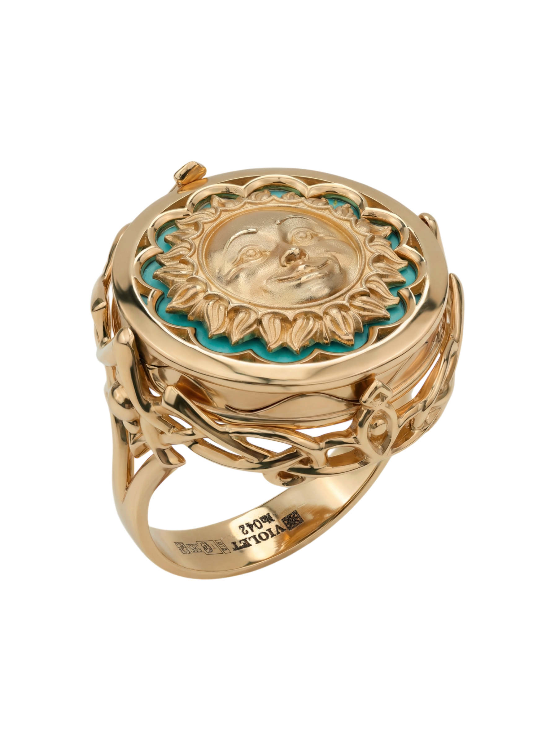 Кольцо из золота c бирюзой и лазуритом