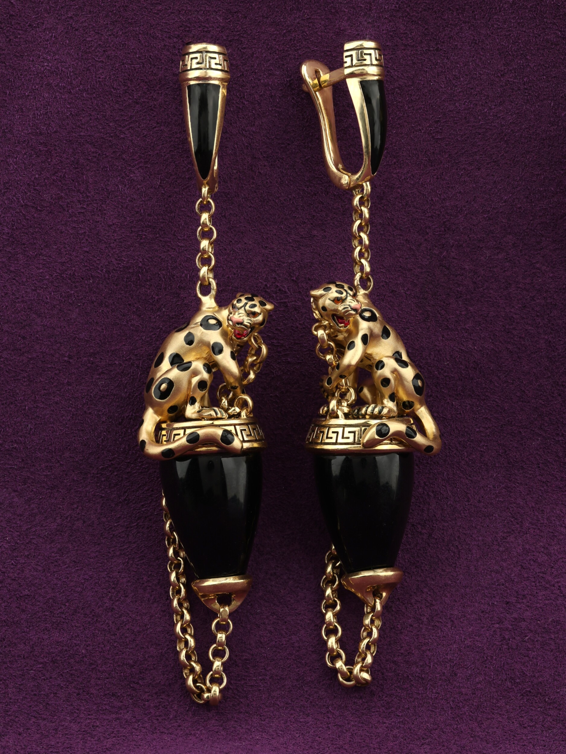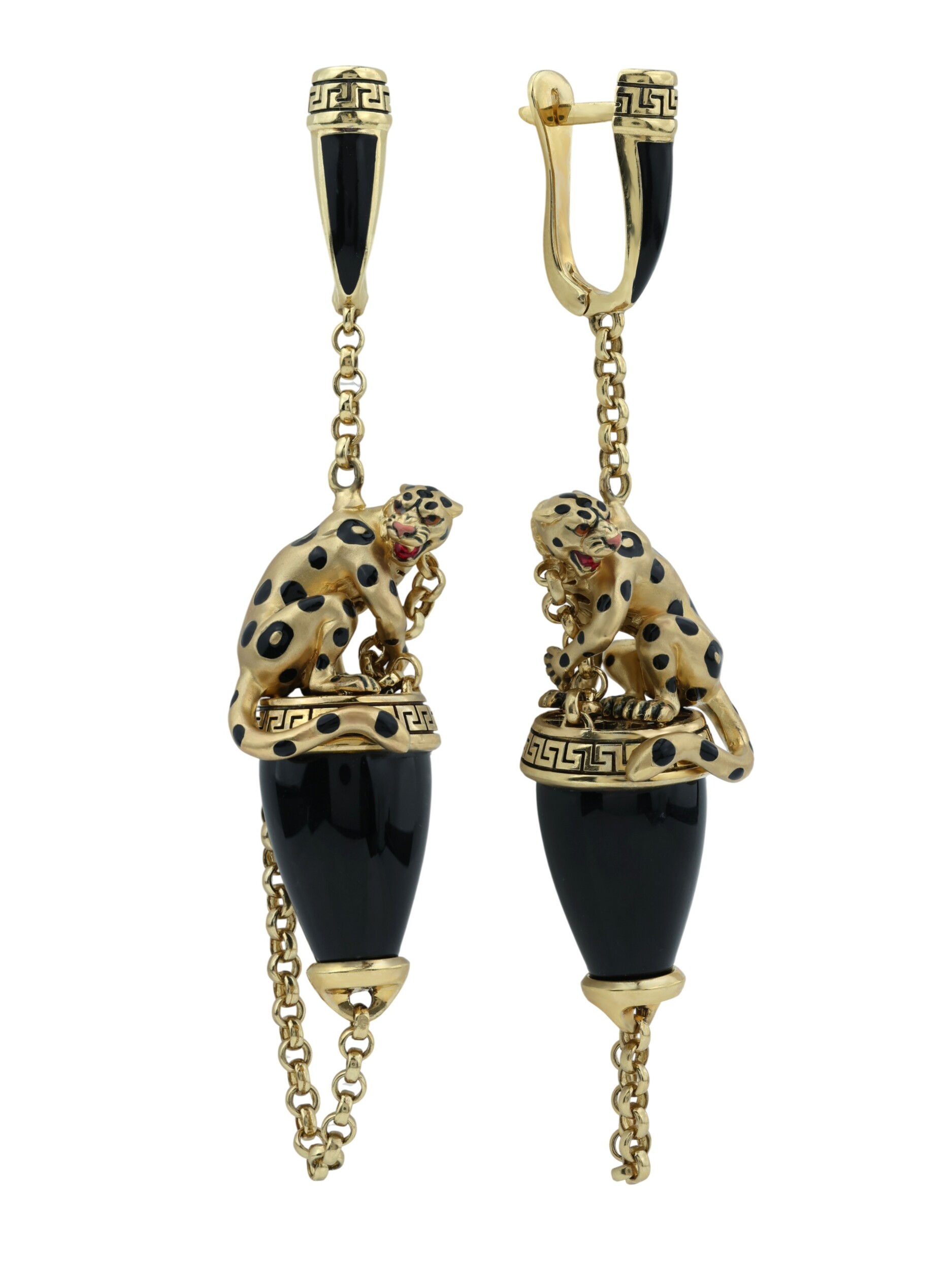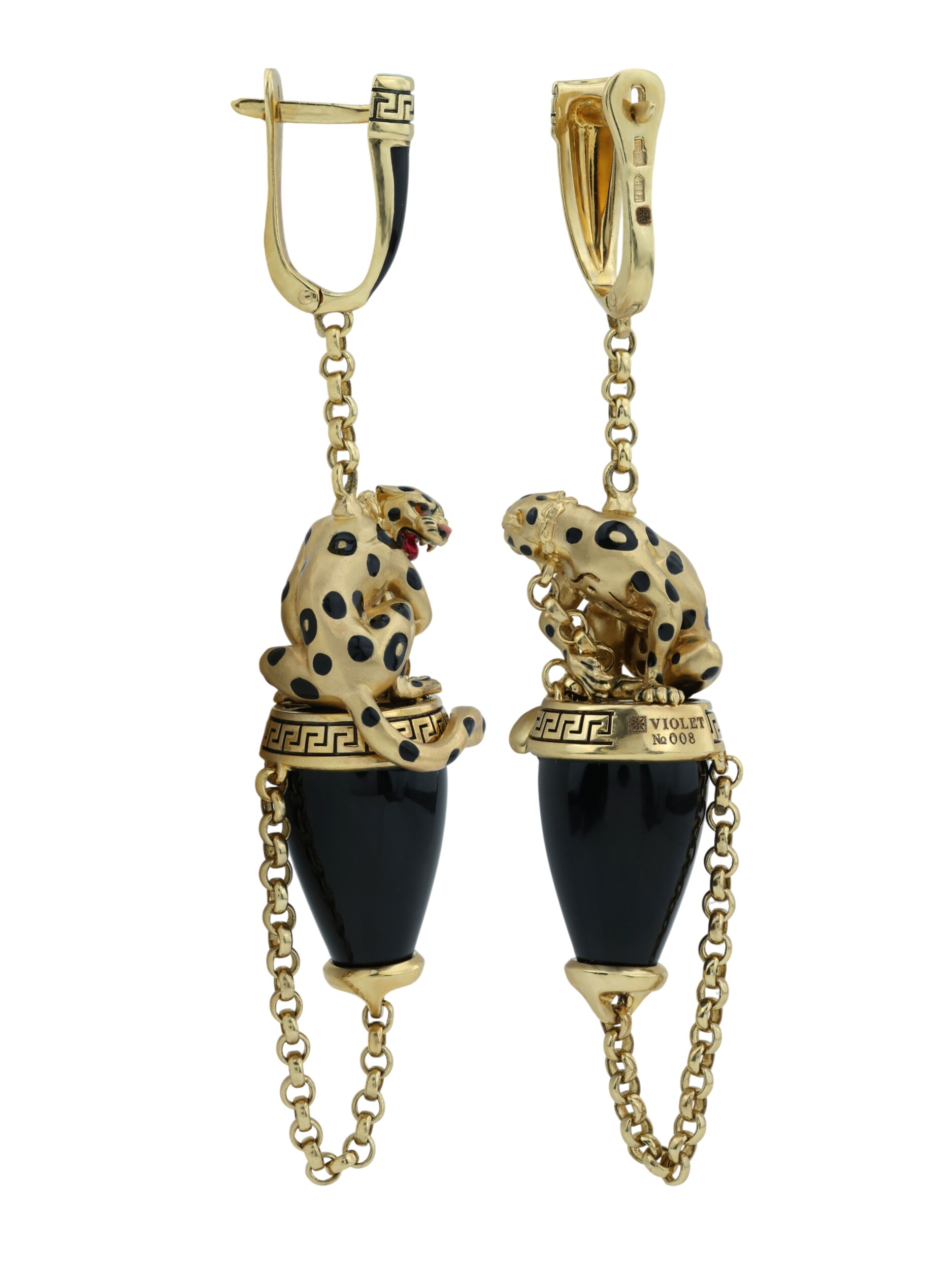 Серьги из лимонного золота c эмалью и ониксом