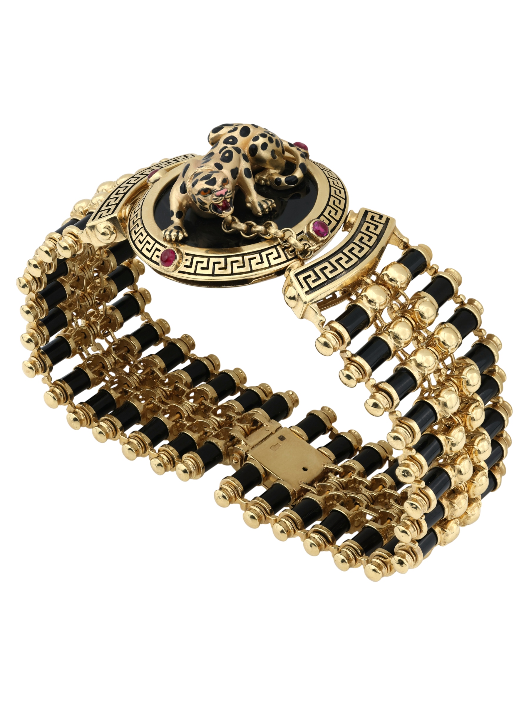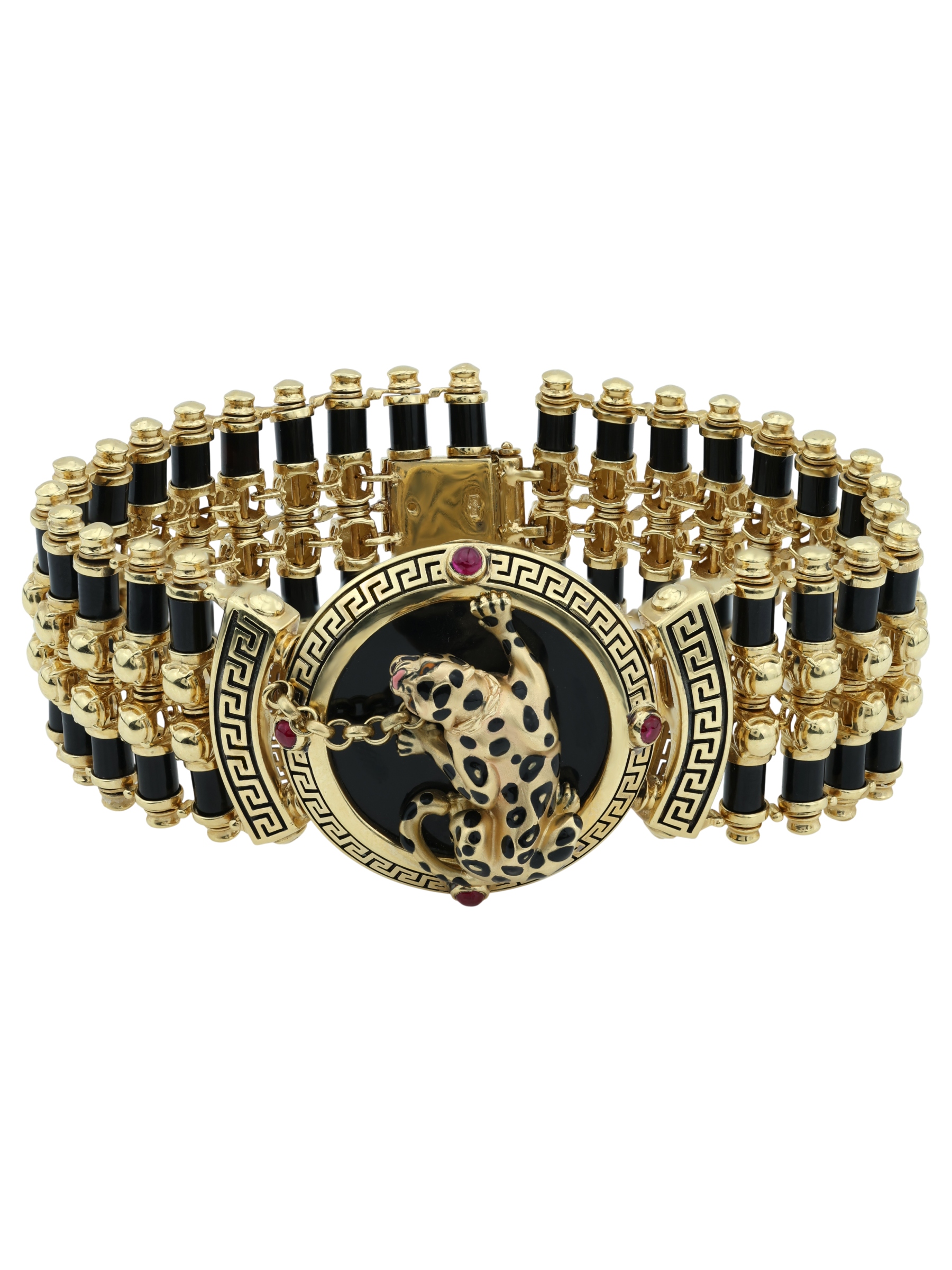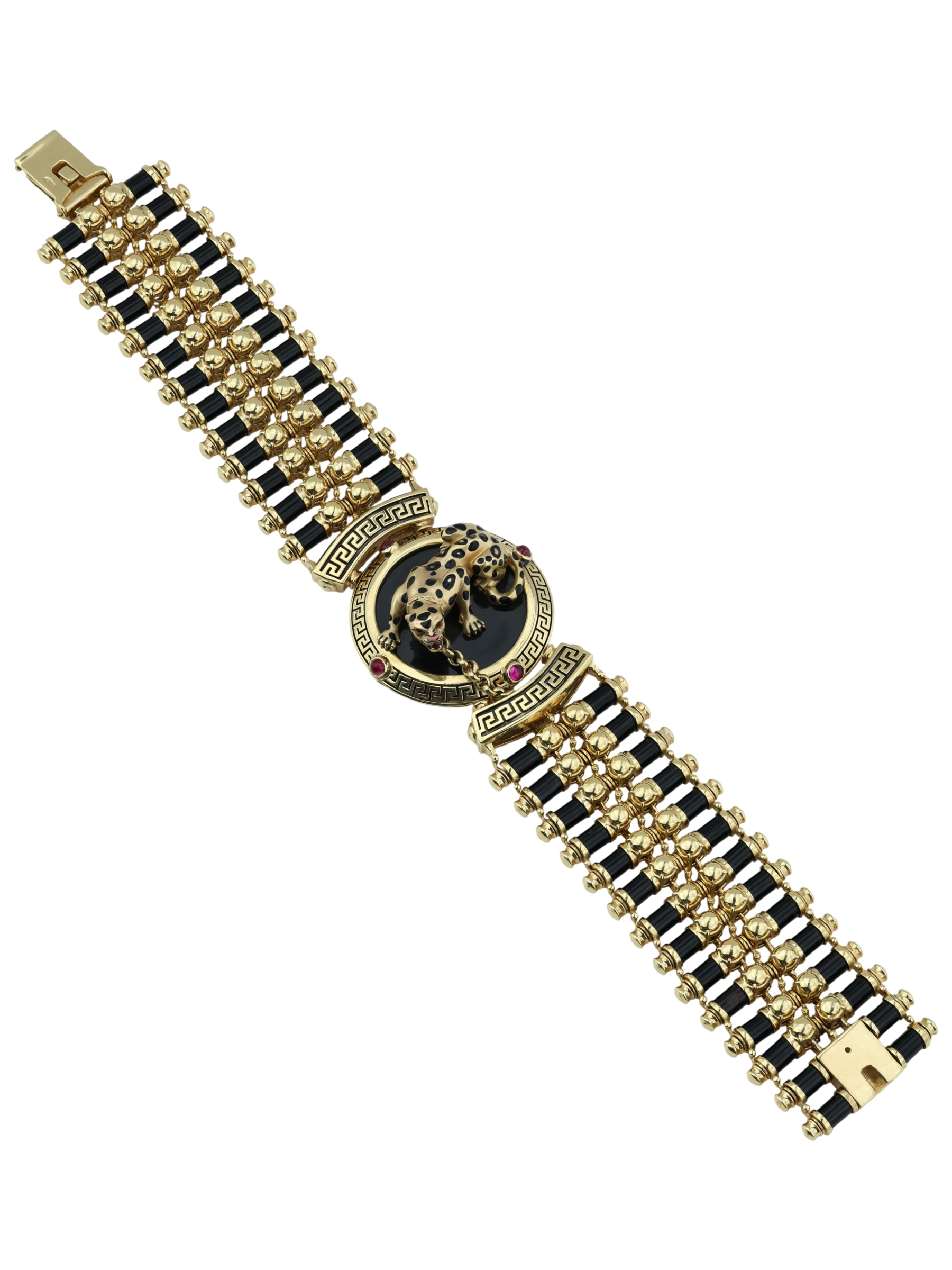 Браслет из лимонного золота c эмалью, ониксом и рубином