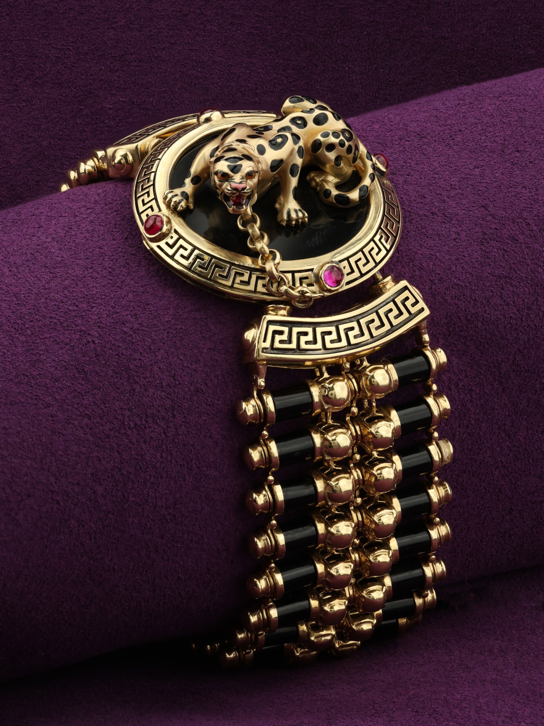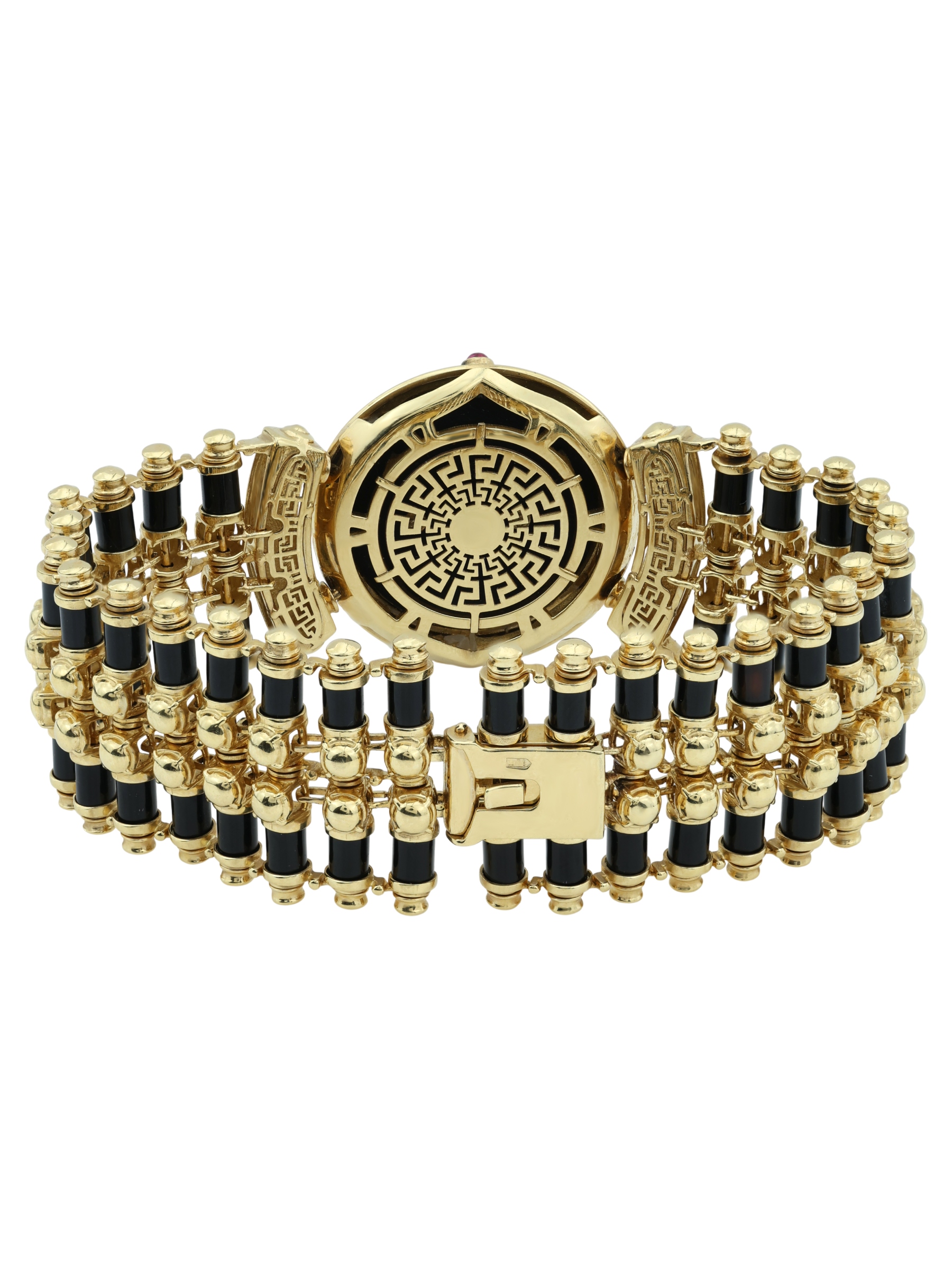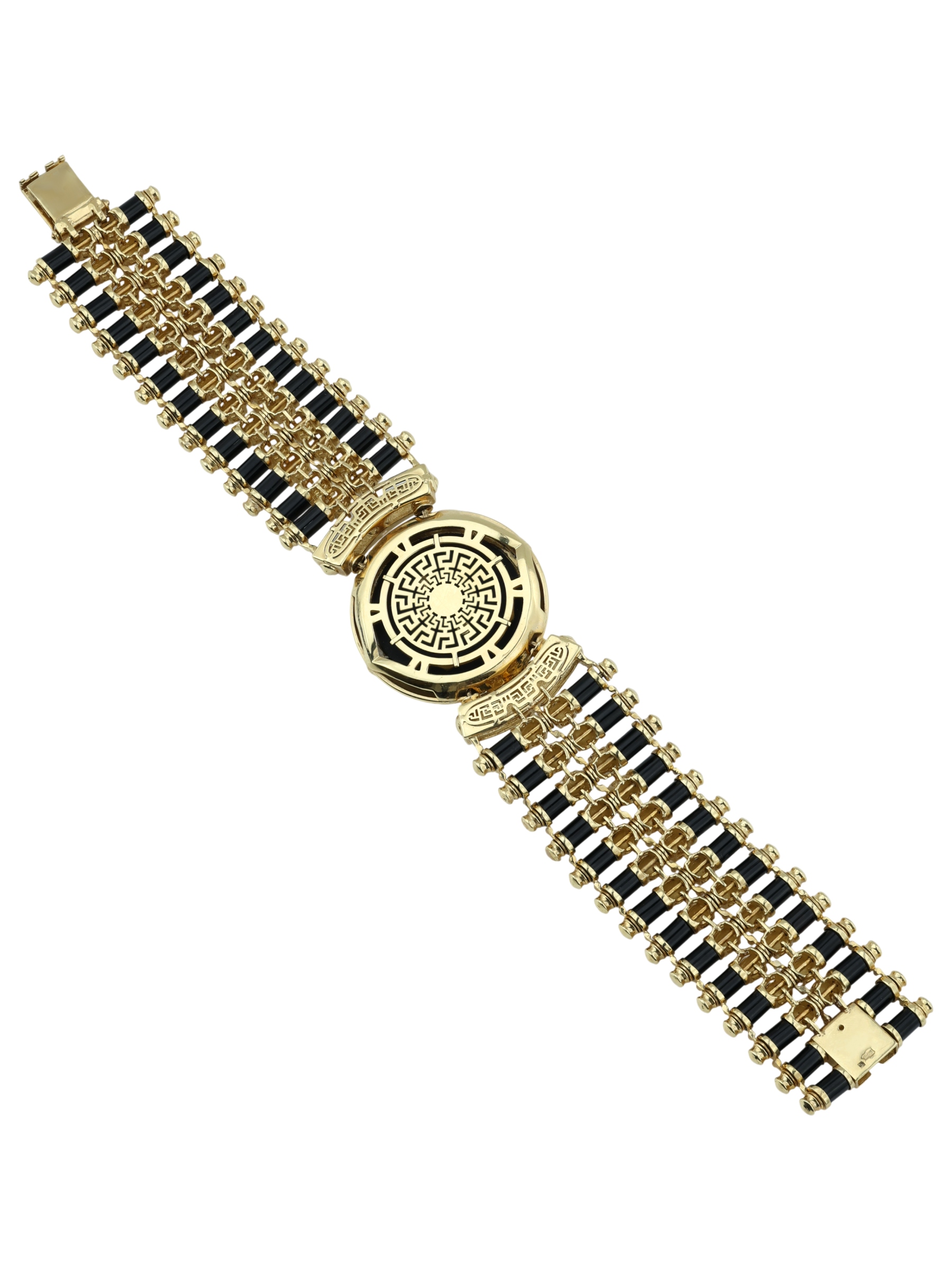 Браслет из лимонного золота c эмалью, ониксом и рубином