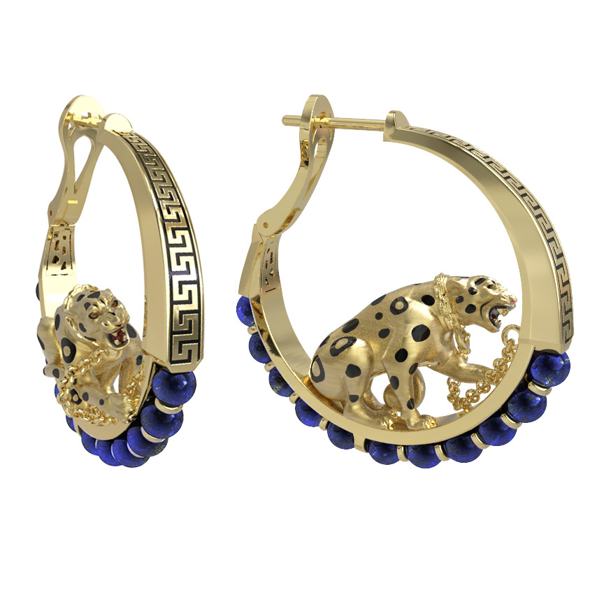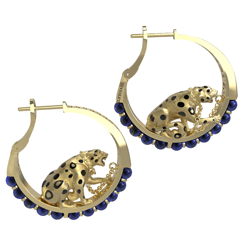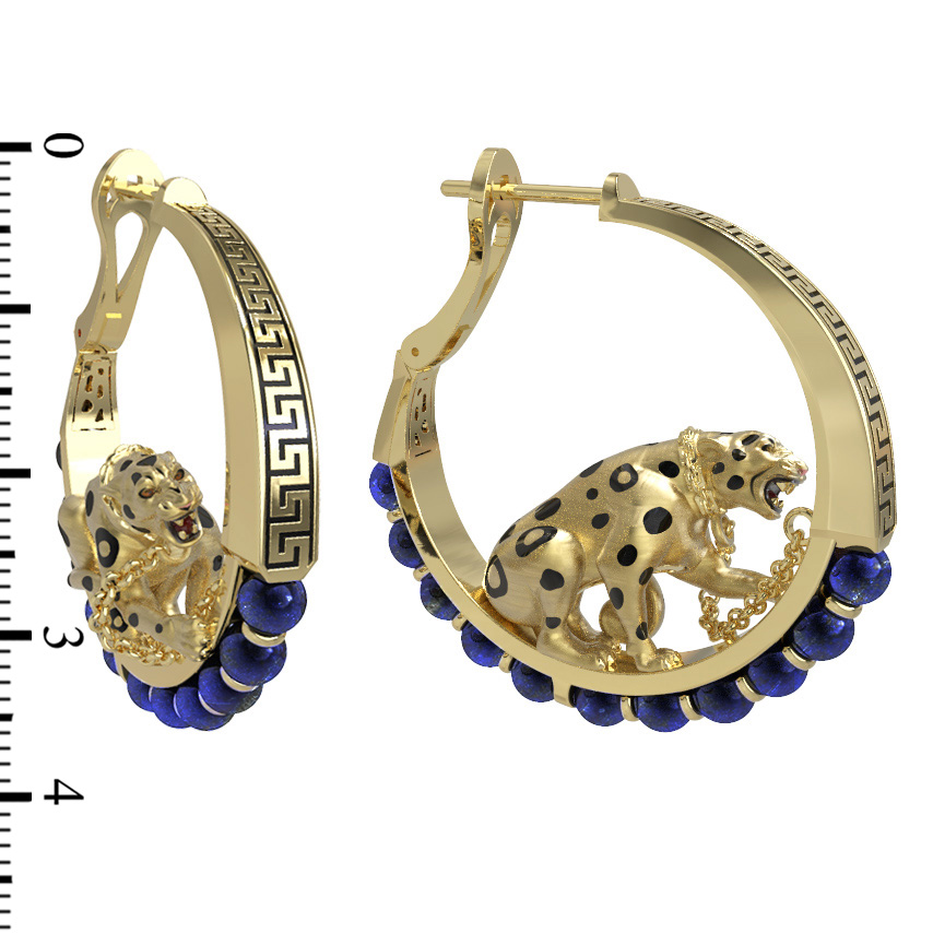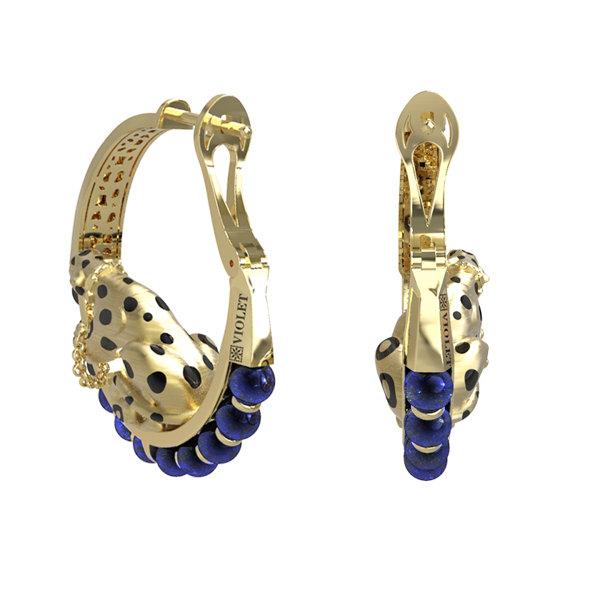 Серьги из лимонного золота c эмалью и лазуритом
