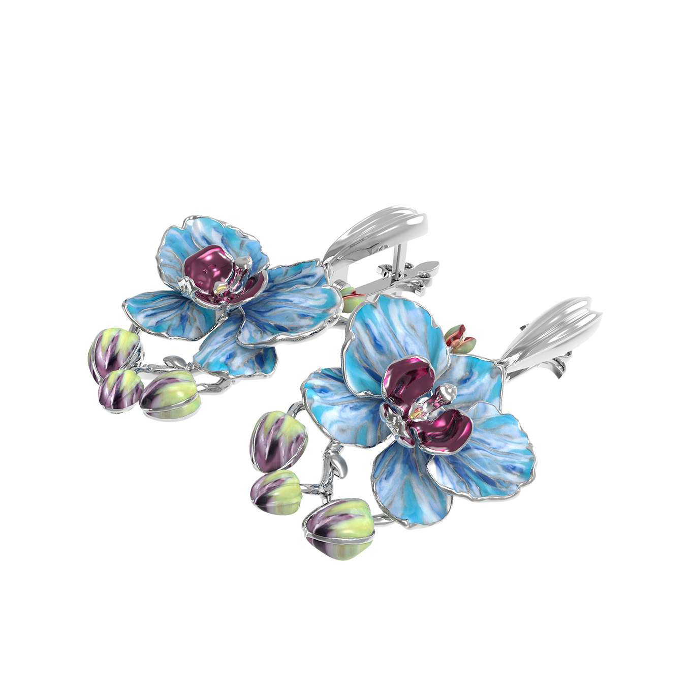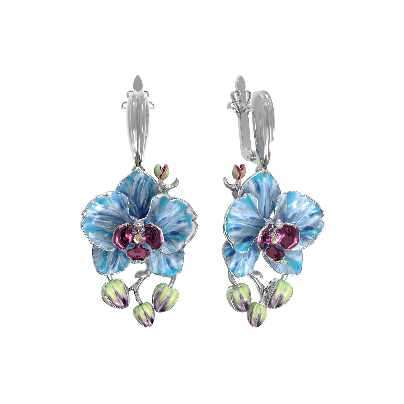 Серьги из белого золота c эмалью