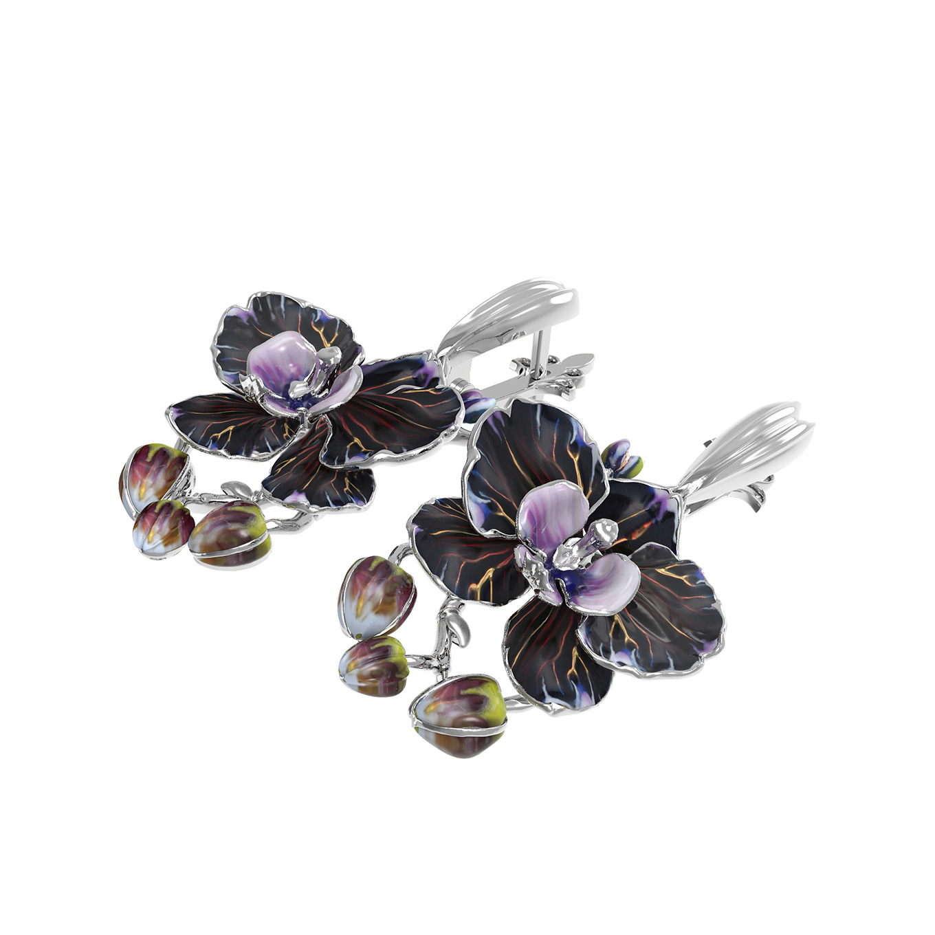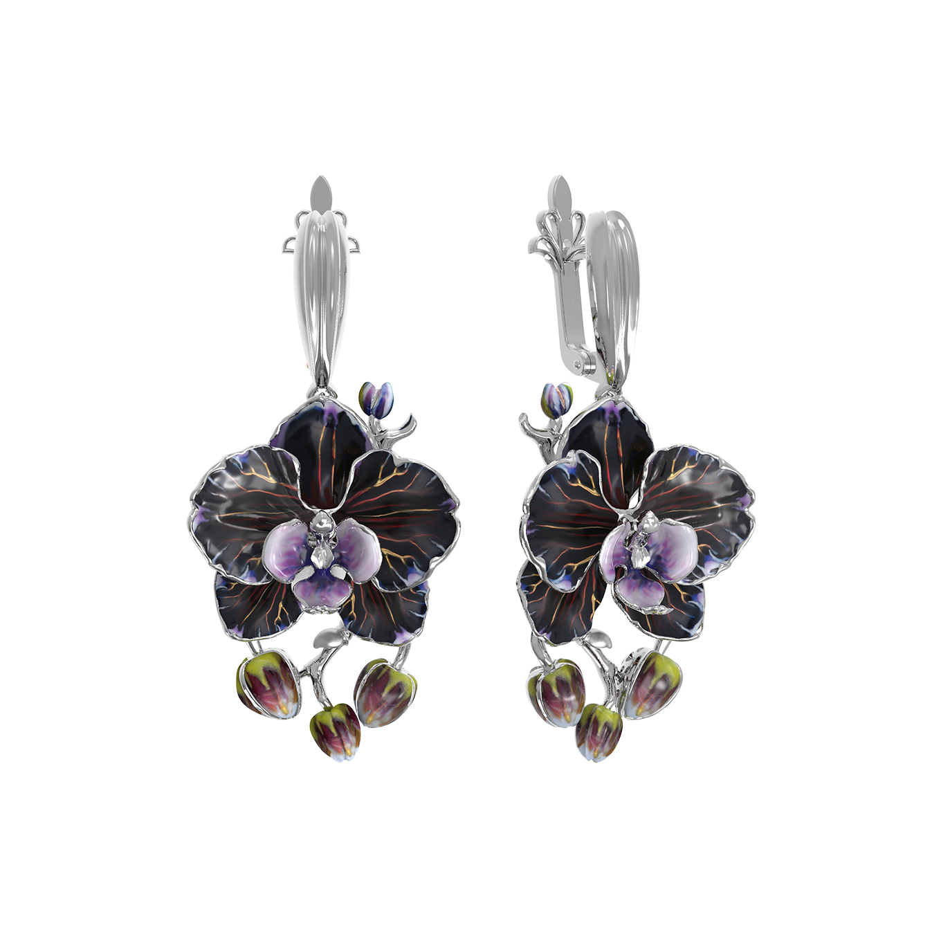 Серьги из белого золота c эмалью