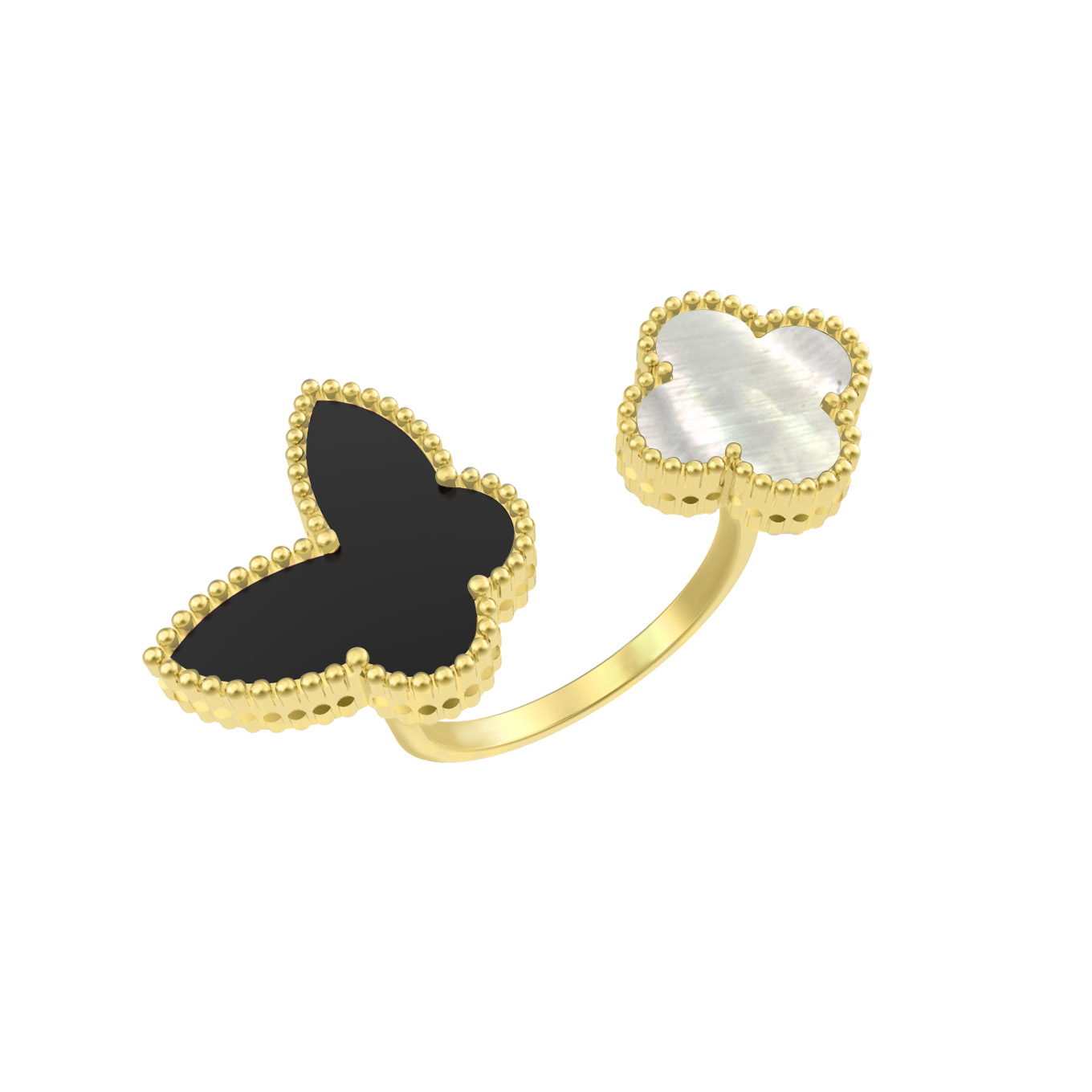 Кольцо из лимонного золота c ониксом и перламутром