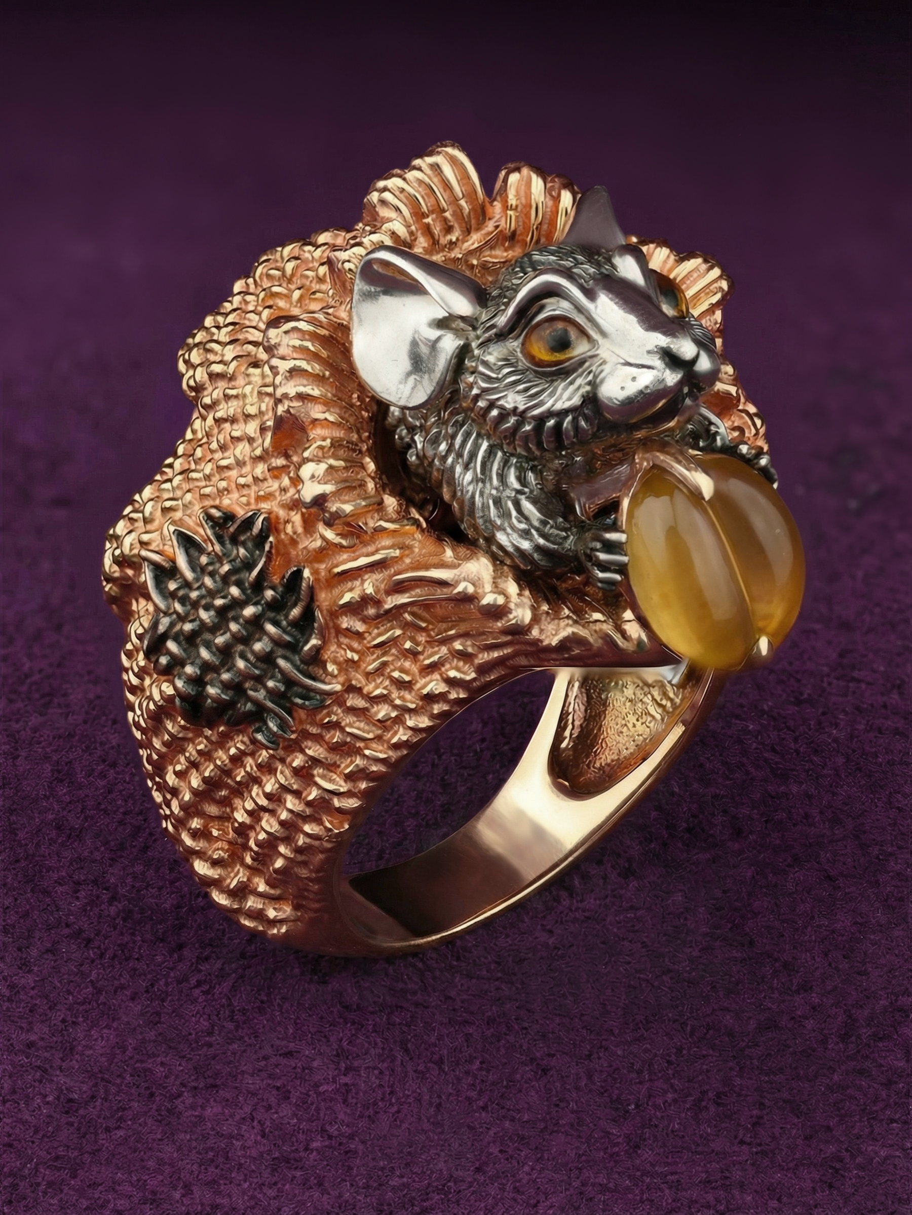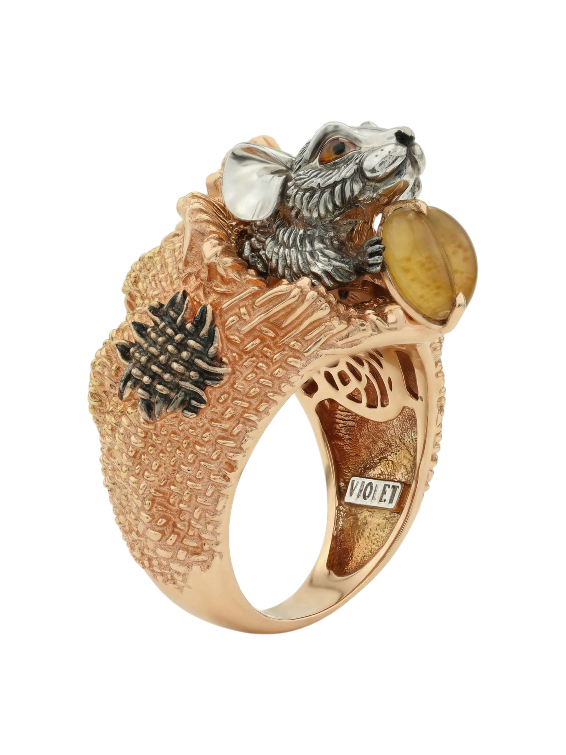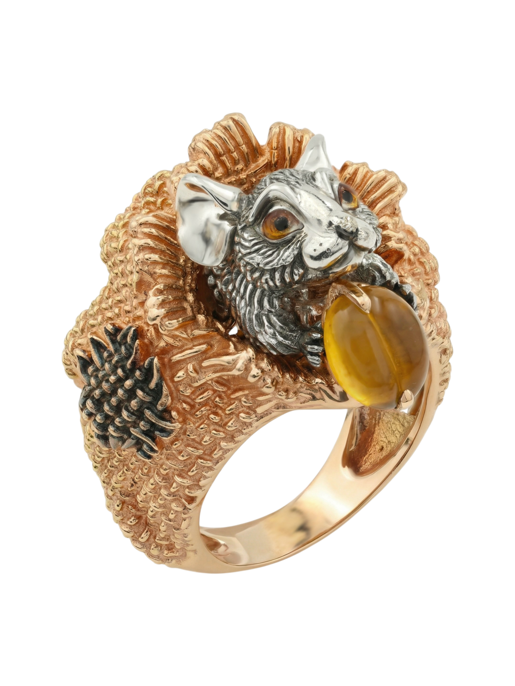 Кольцо из золота c эмалью и янтарём