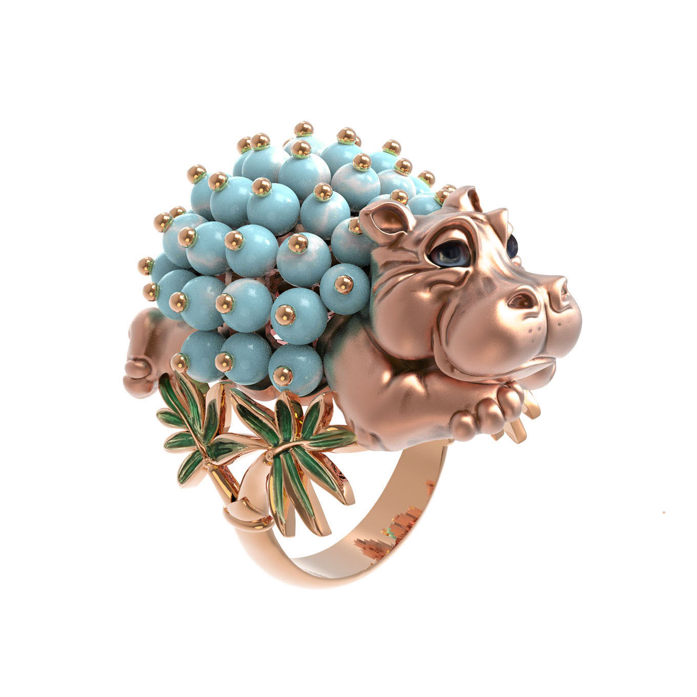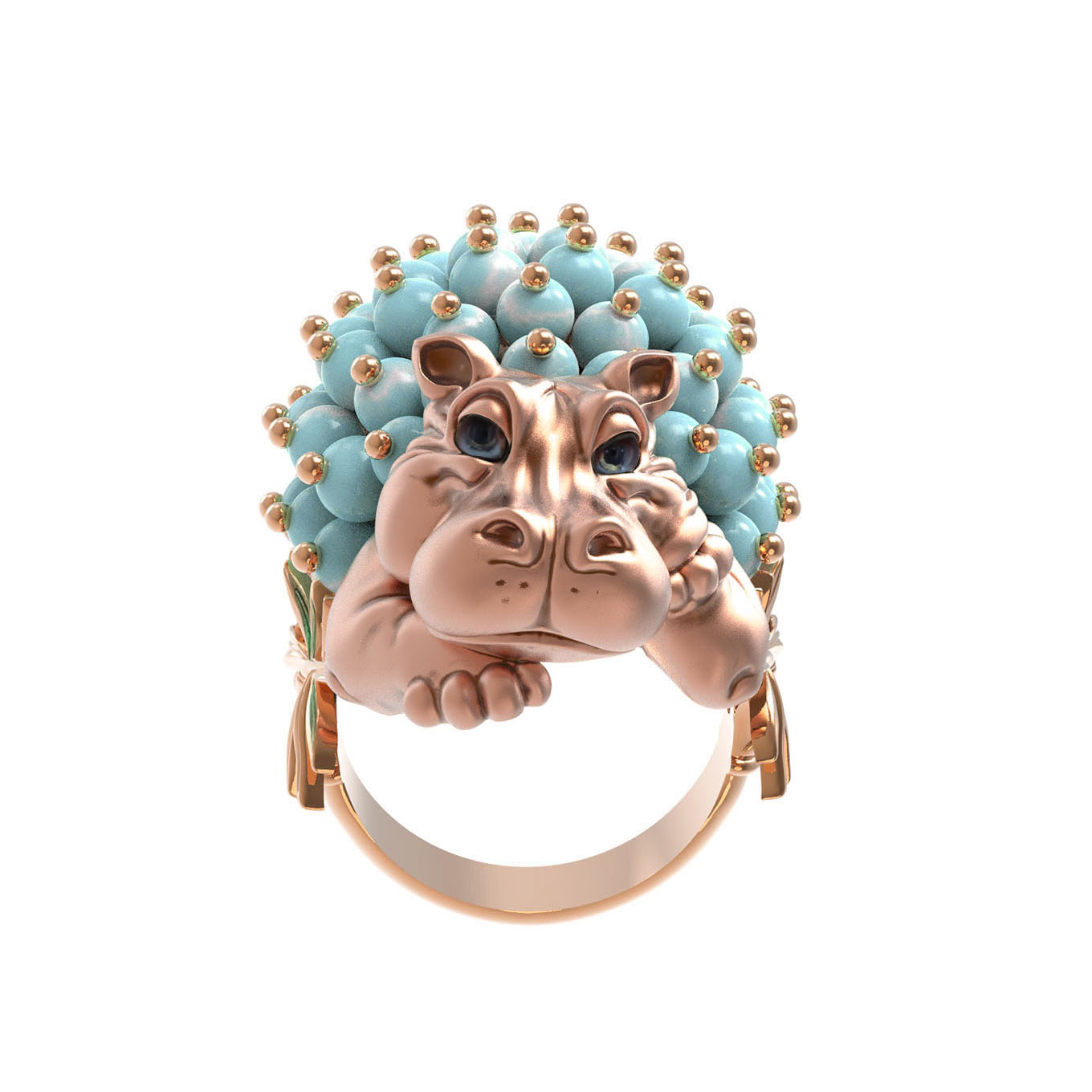 Кольцо из золота c эмалью и бирюзой