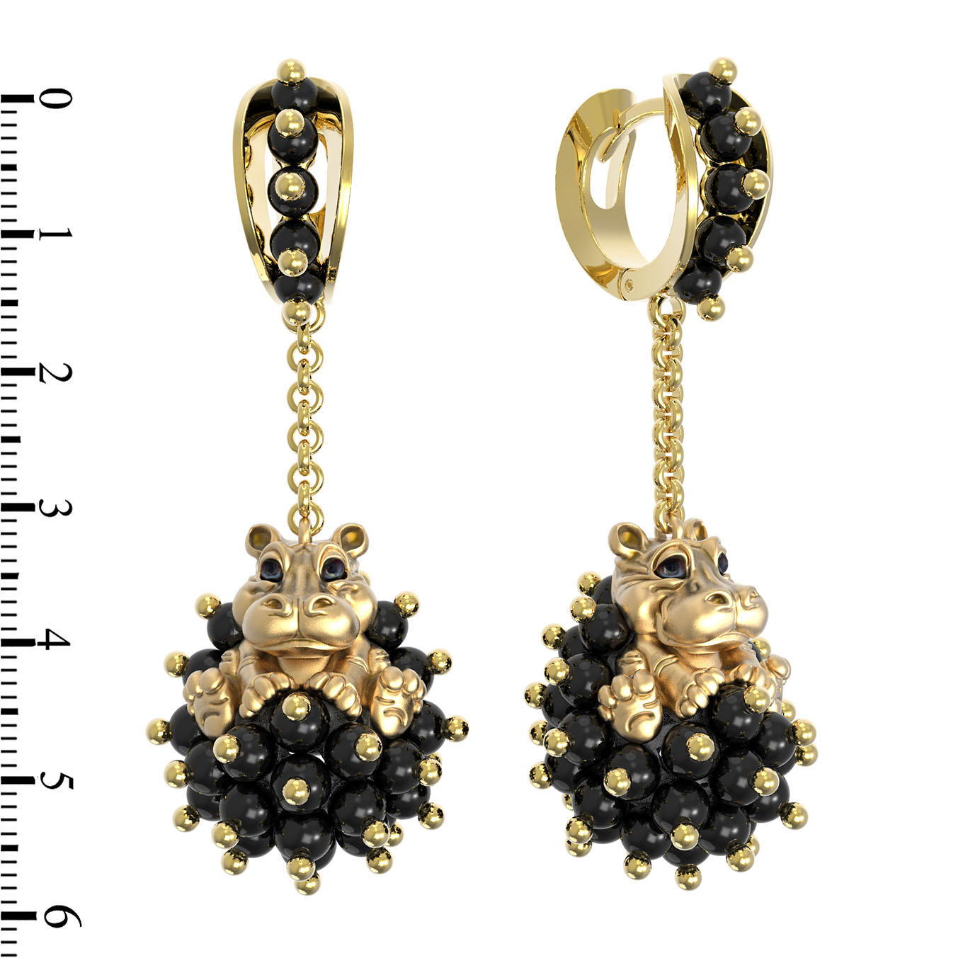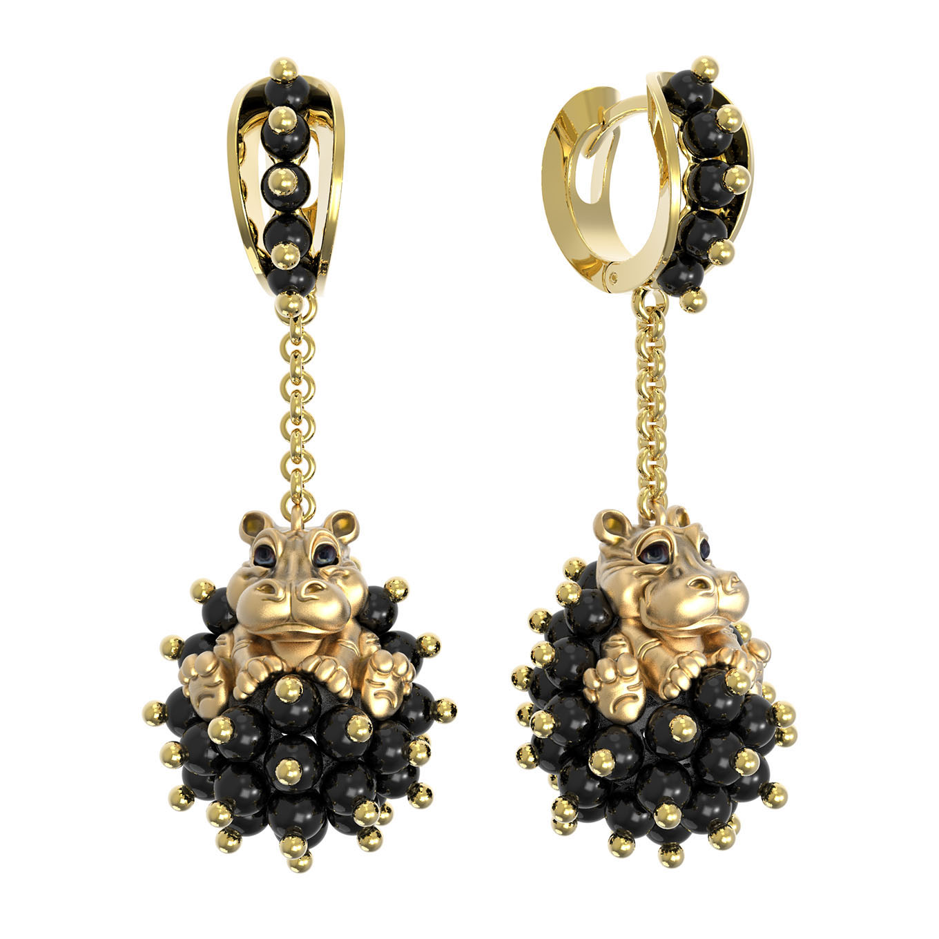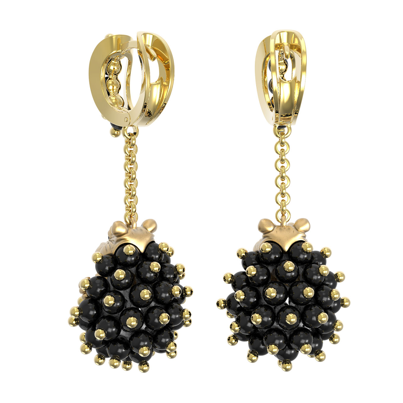 Серьги из лимонного золота c эмалью и ониксом
