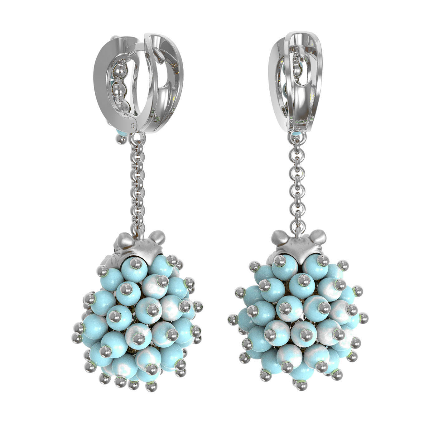 Серьги из белого золота c эмалью и бирюзой