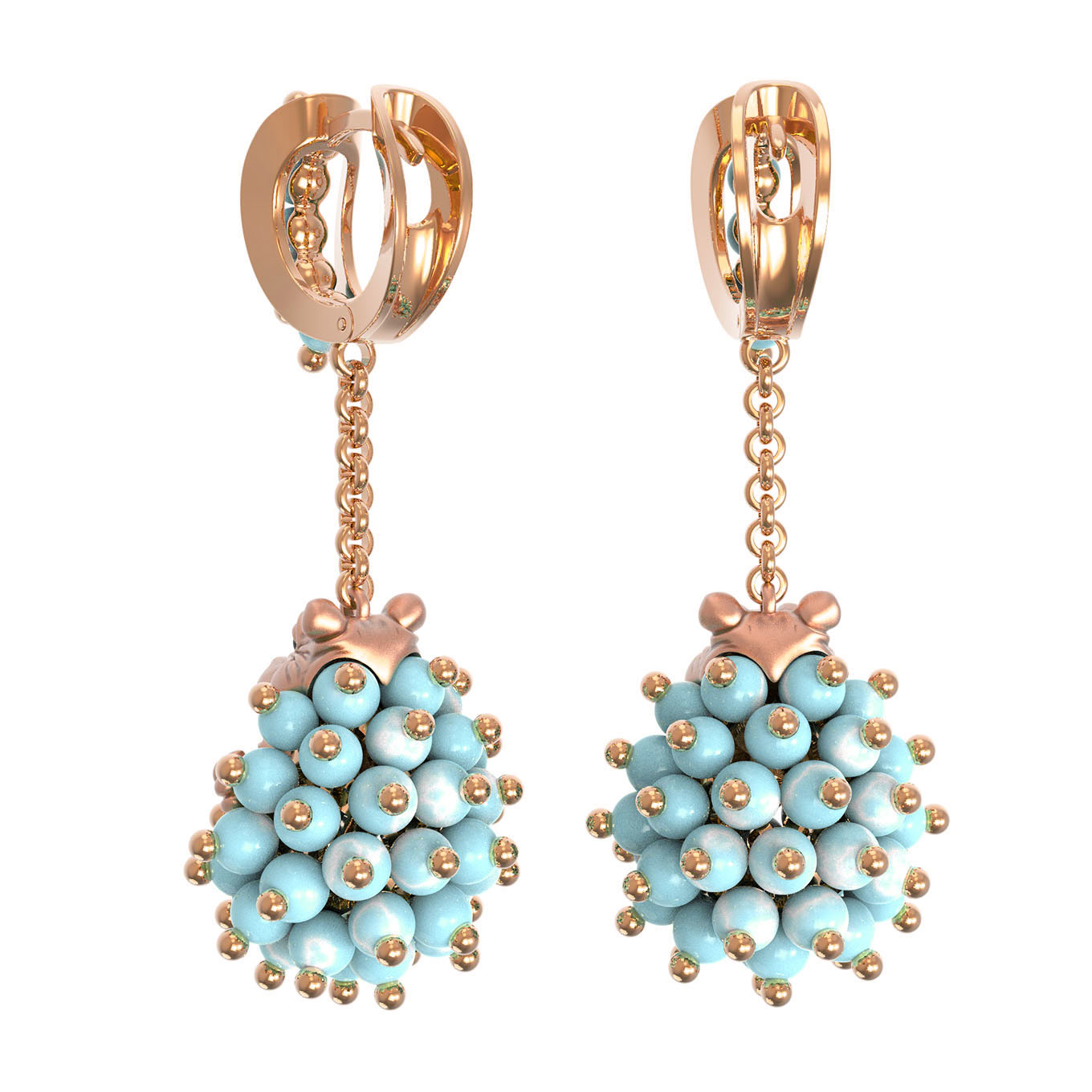 Серьги из золота c эмалью и бирюзой