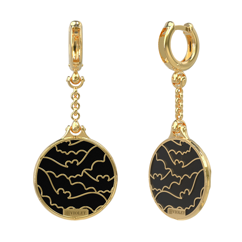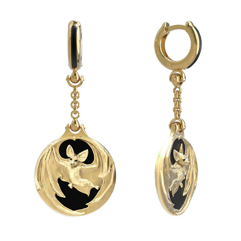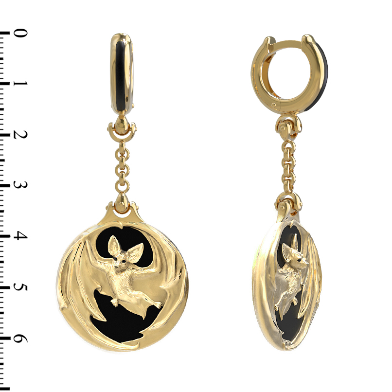 Серьги из лимонного золота c эмалью и ониксом