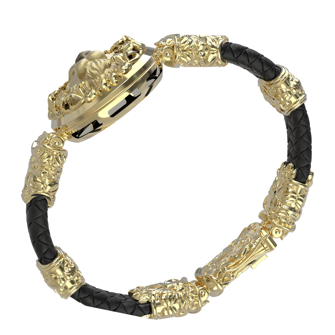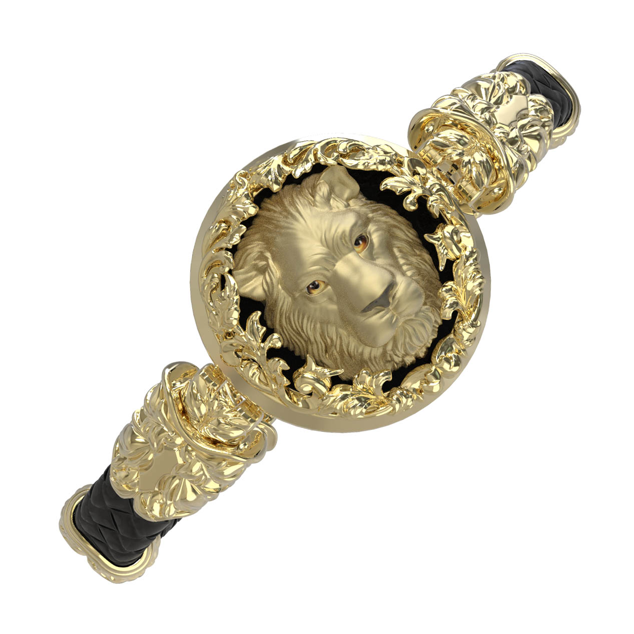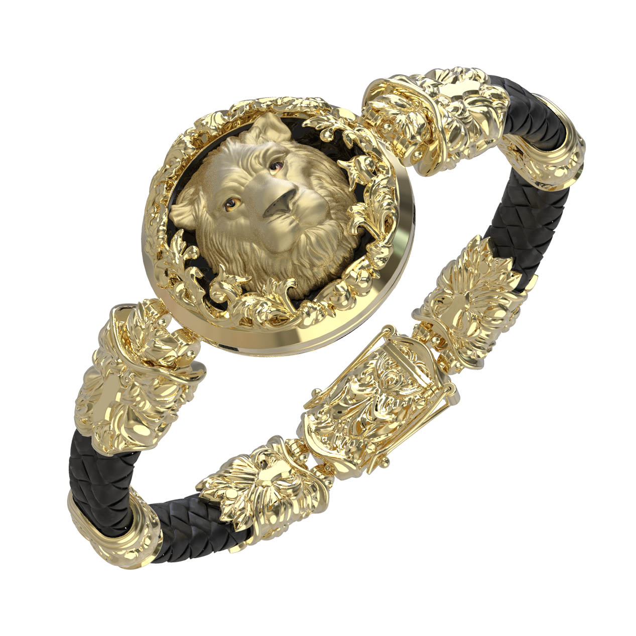 Браслет из лимонного золота c эмалью, шнурком и ониксом