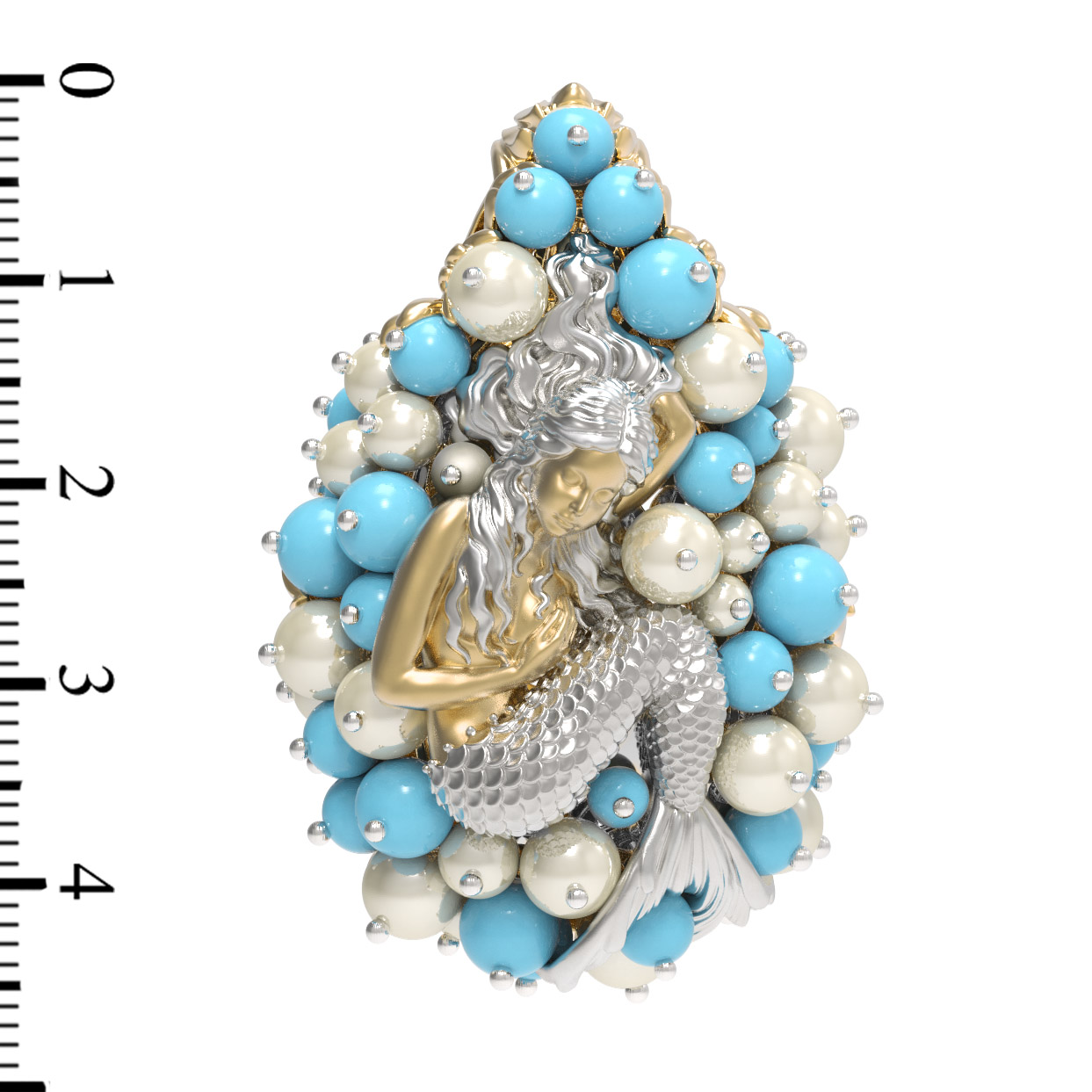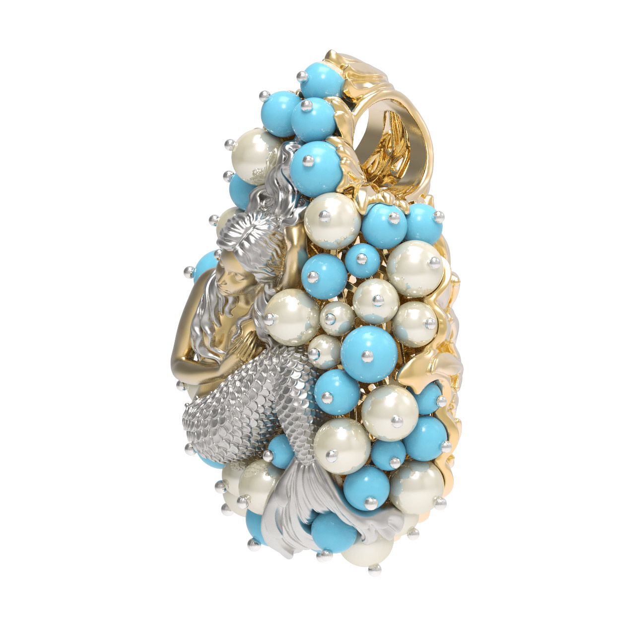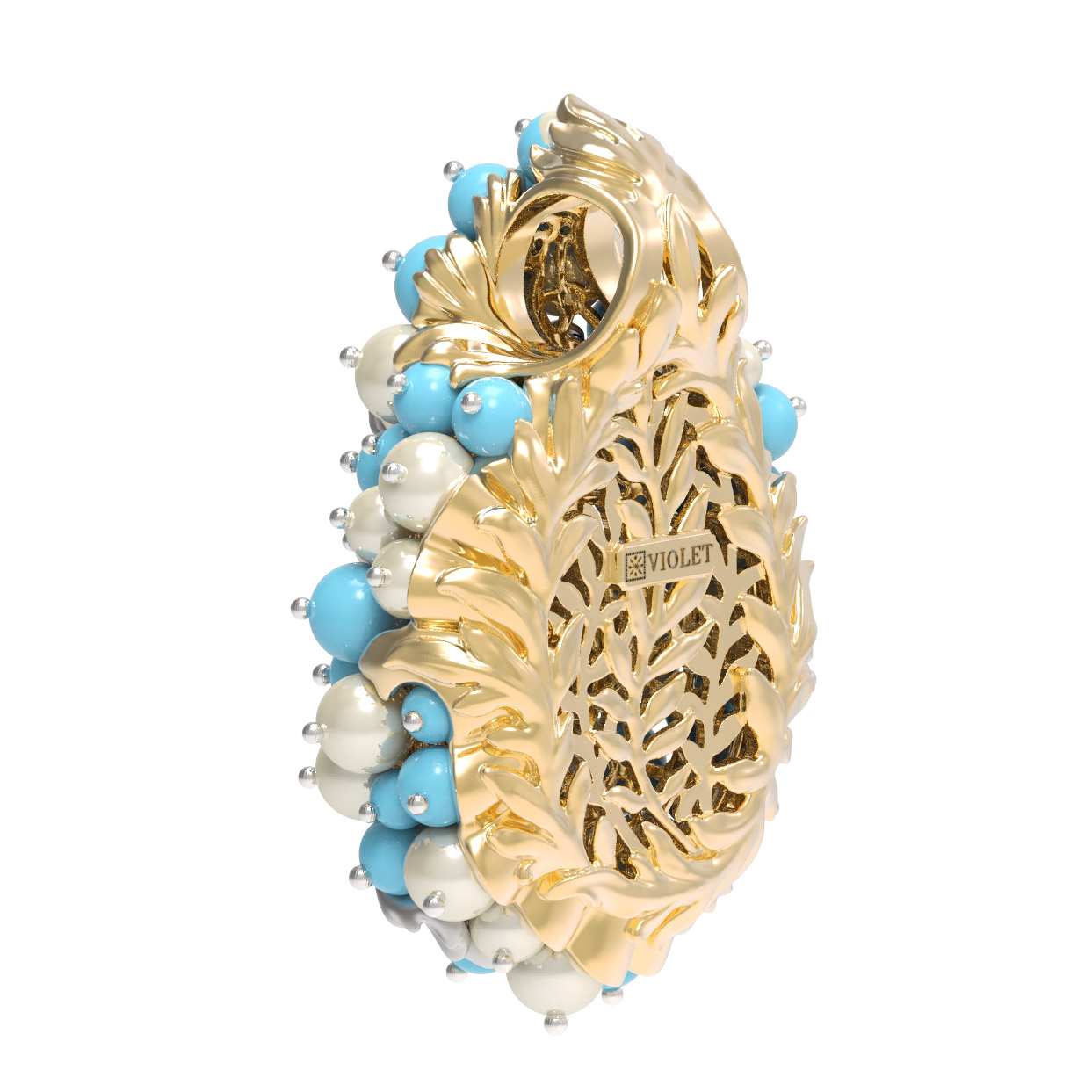 Подвеска из лимонного золота c жемчугом и бирюзой