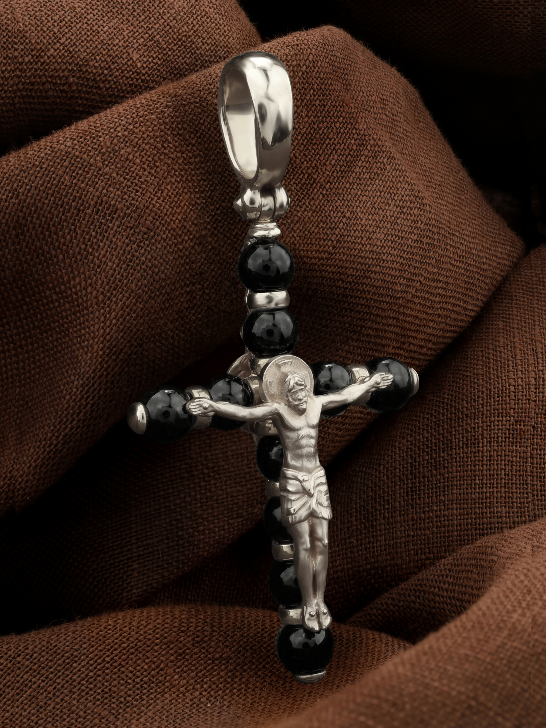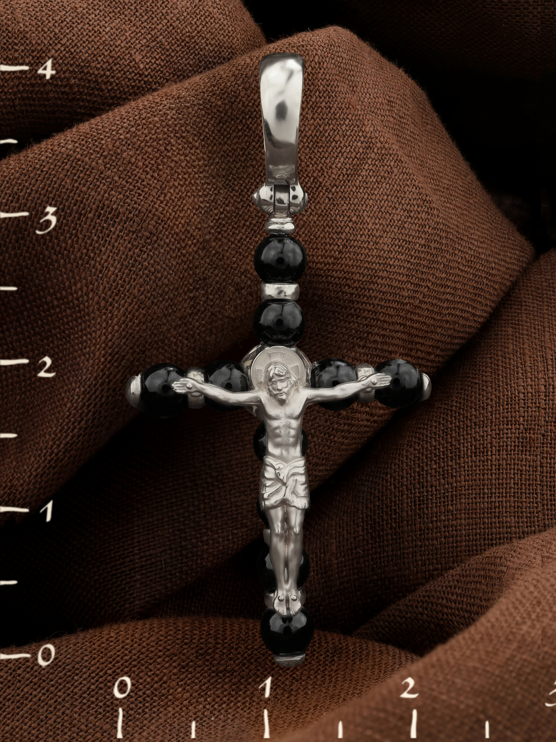 Крест из белого золота c ониксом