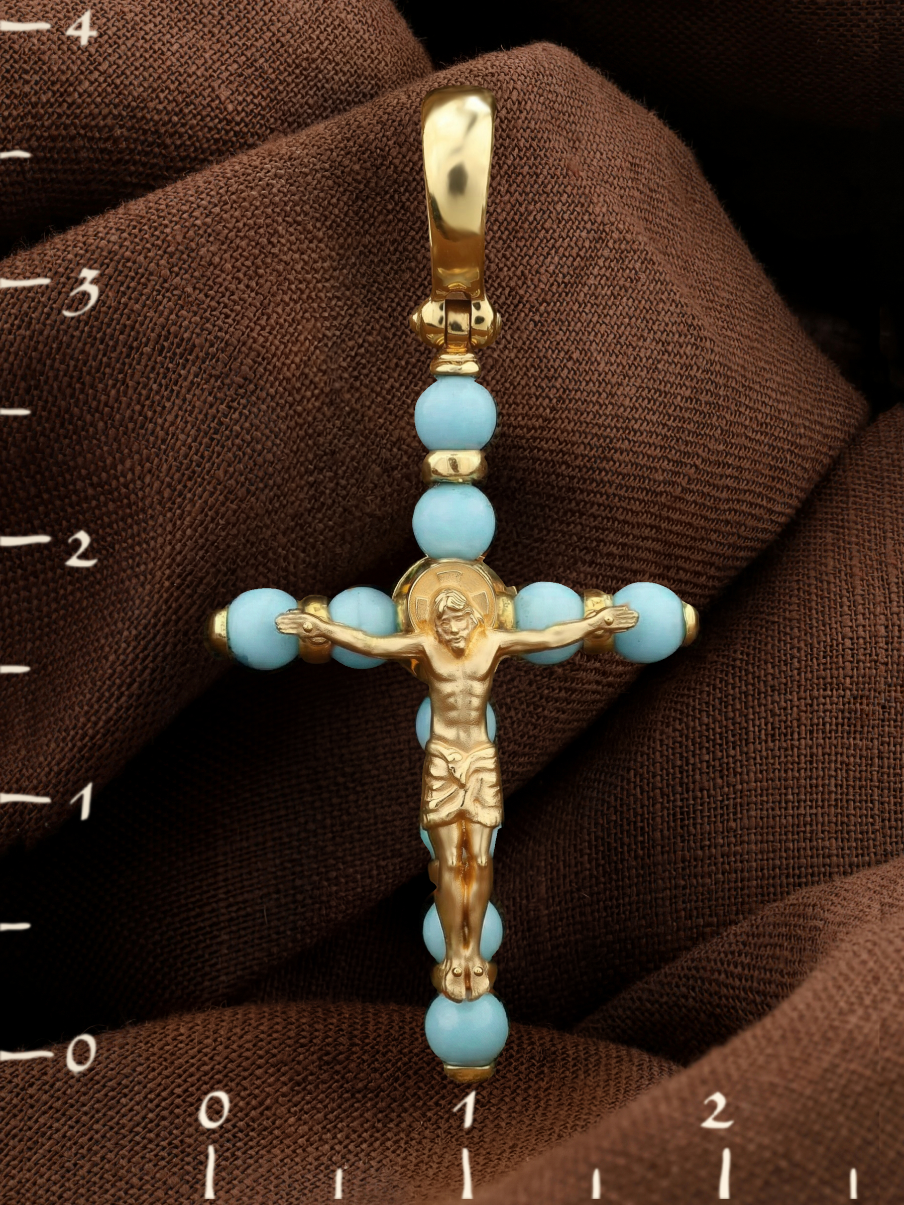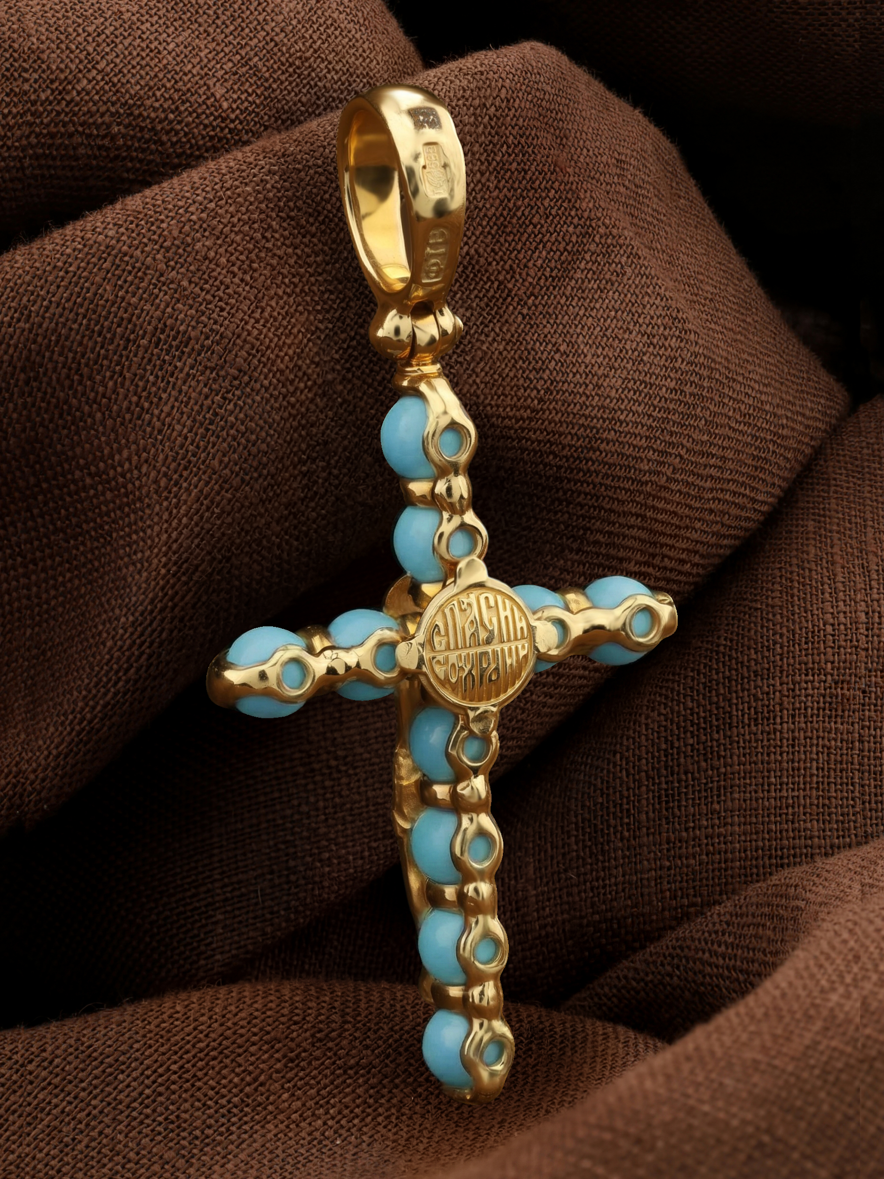 Крест из лимонного золота c бирюзой