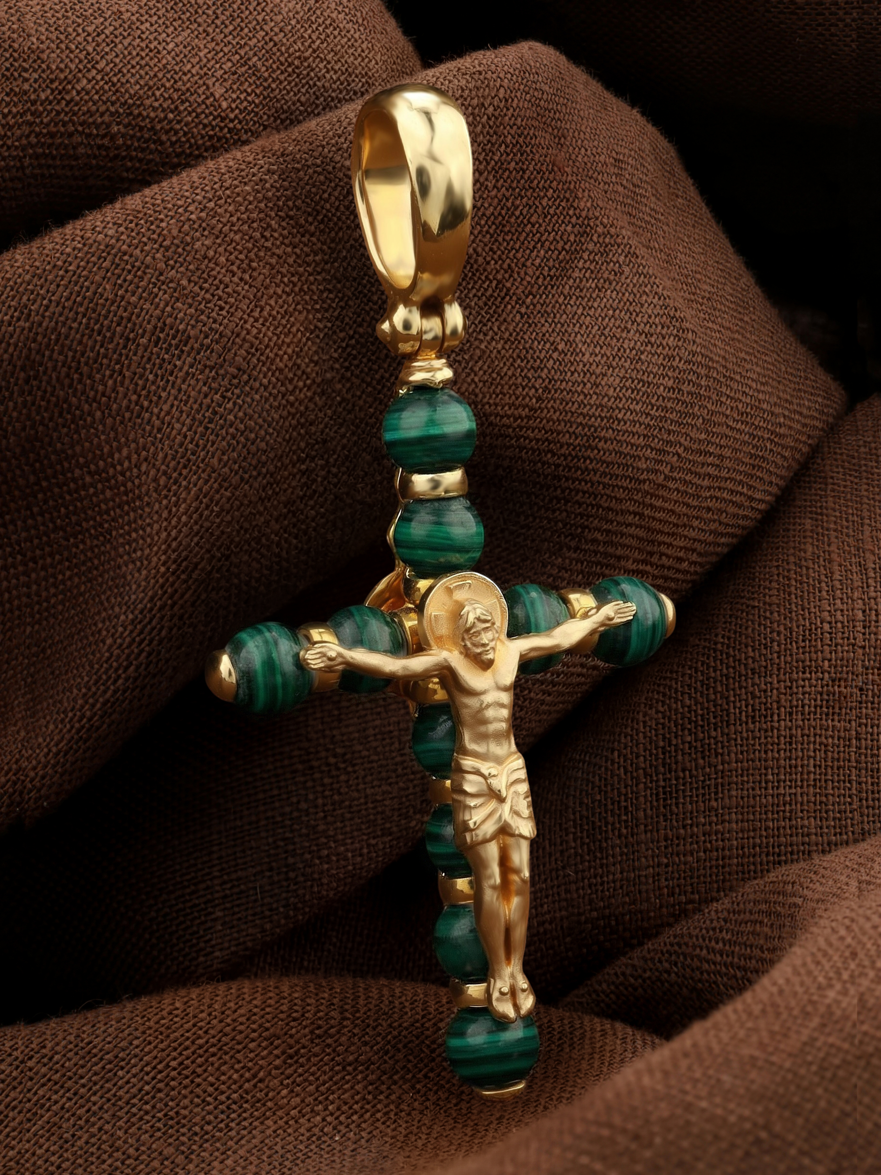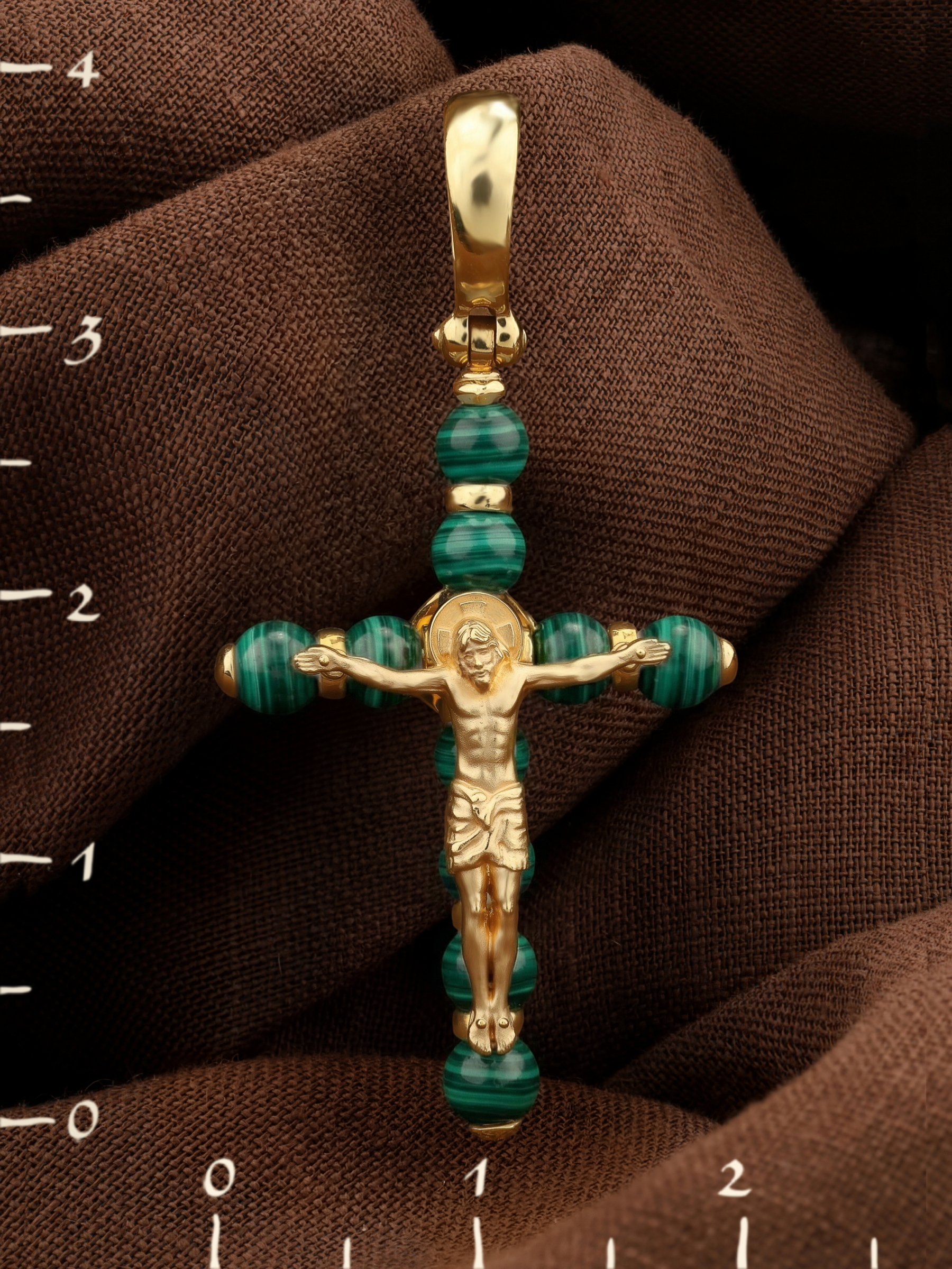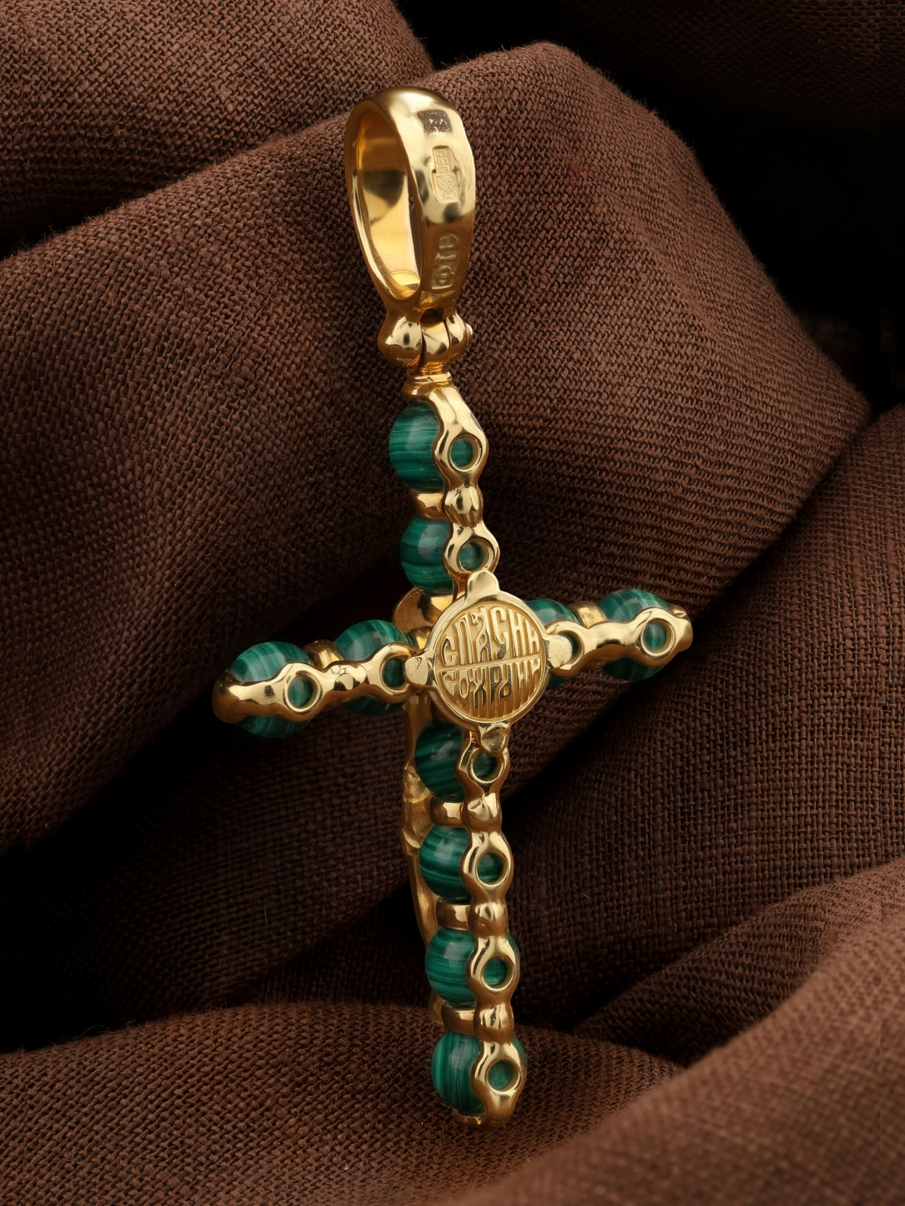 Крест из лимонного золота c малахитом