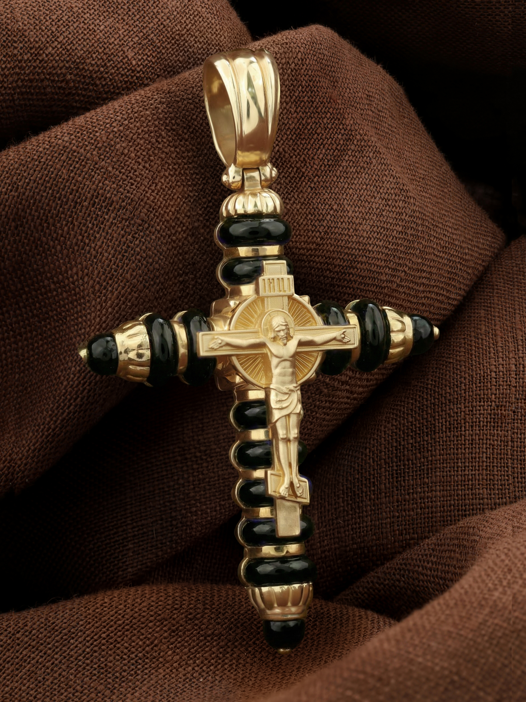Крест из лимонного золота c ониксом