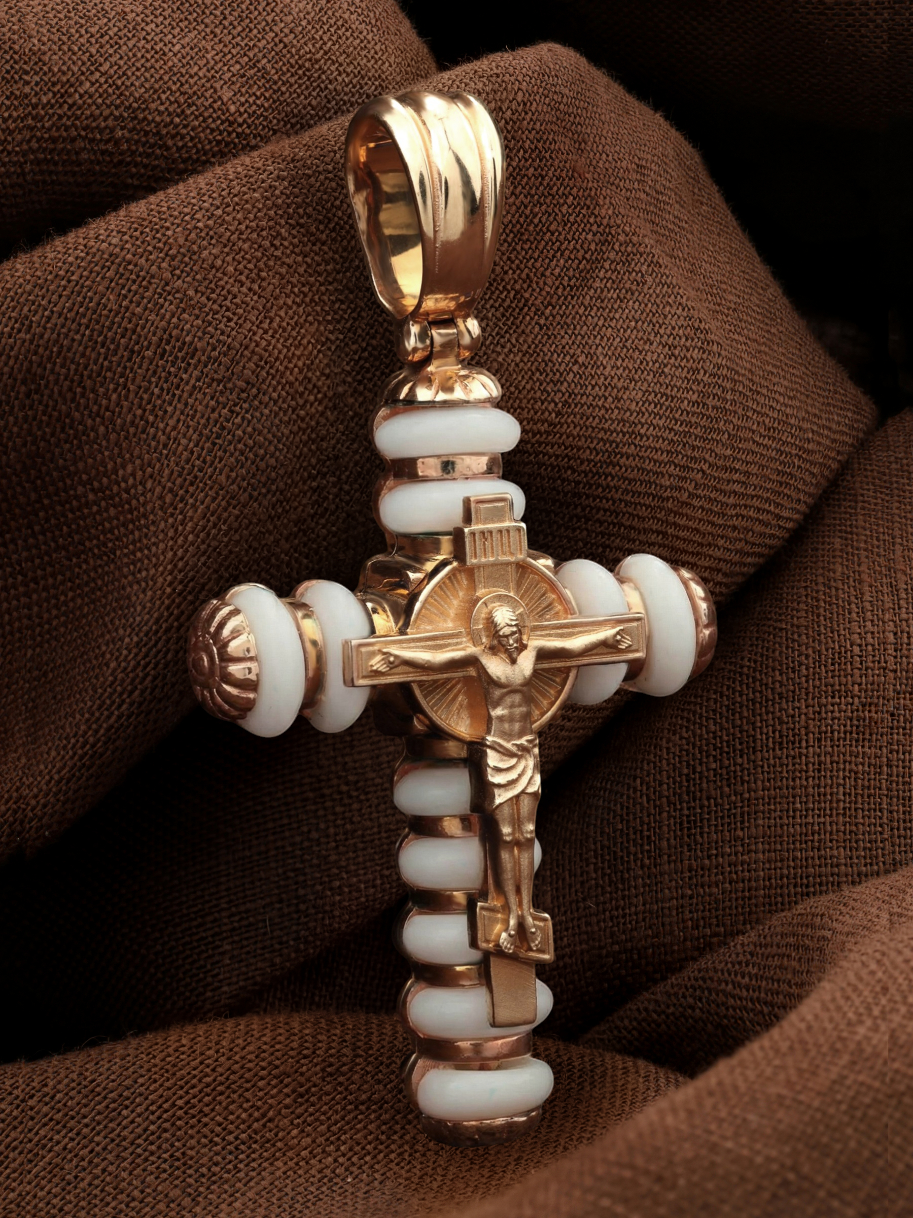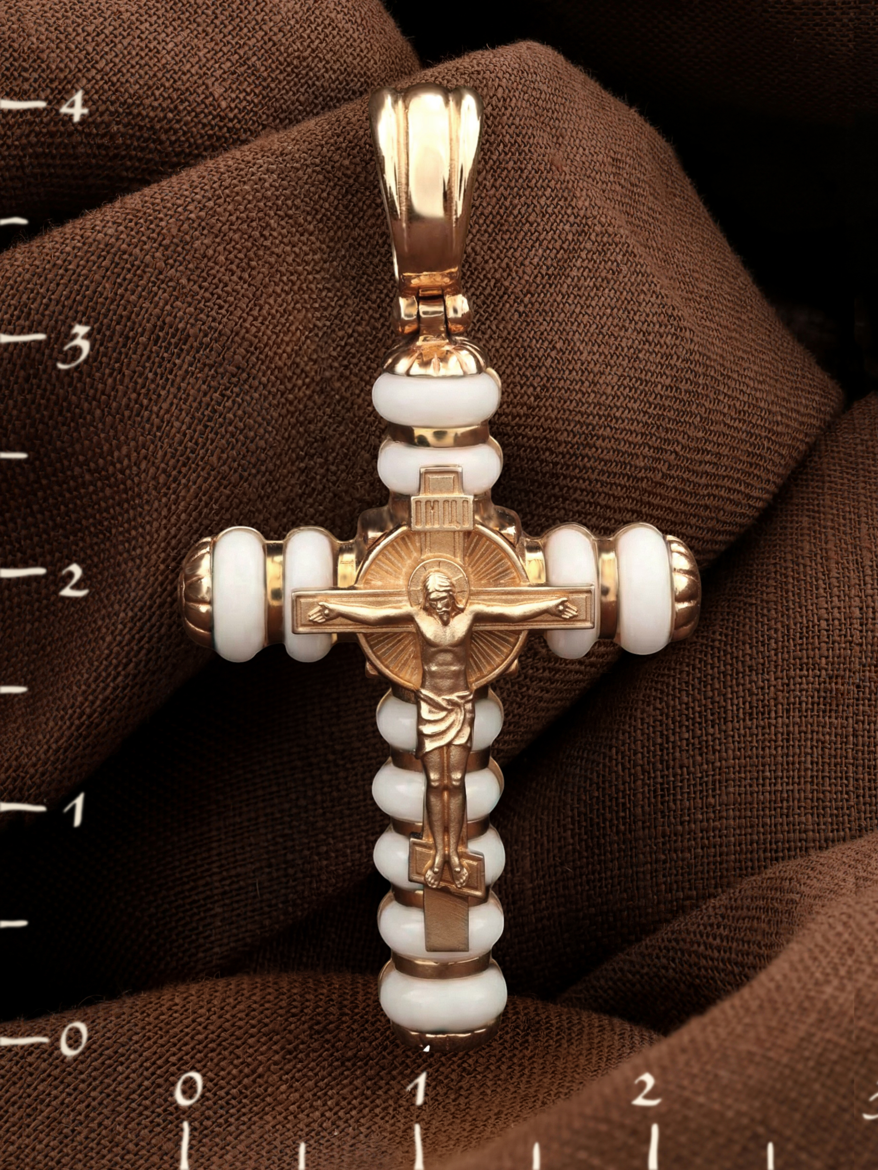 На лицевой стороне креста изображено Распятие Господа и Спасителя нашего Иисуса Христа, отдавшего Себя на смерть для искупления грехов мира. Крест является символом жертвенной любви Всеблагого Бога к падшим людям, всепобеждающим духовным оружием христиан, основанием и средоточием церковной жизни. Над вершиной Распятия помещена надпись «Царь Славы». На верхней перекладине расположена надпись «IНЦI». Она символизирует титло — табличку, на которой, согласно Евангелию, было начертано: Иисус Назорей, Царь Иудейский. Надпись «IC» «ХC»», означает Иисус Христос, помещаются на разных сторонах поперечной перекладины креста. Ниже помещена надпись «НИКА», что означает «победитель».