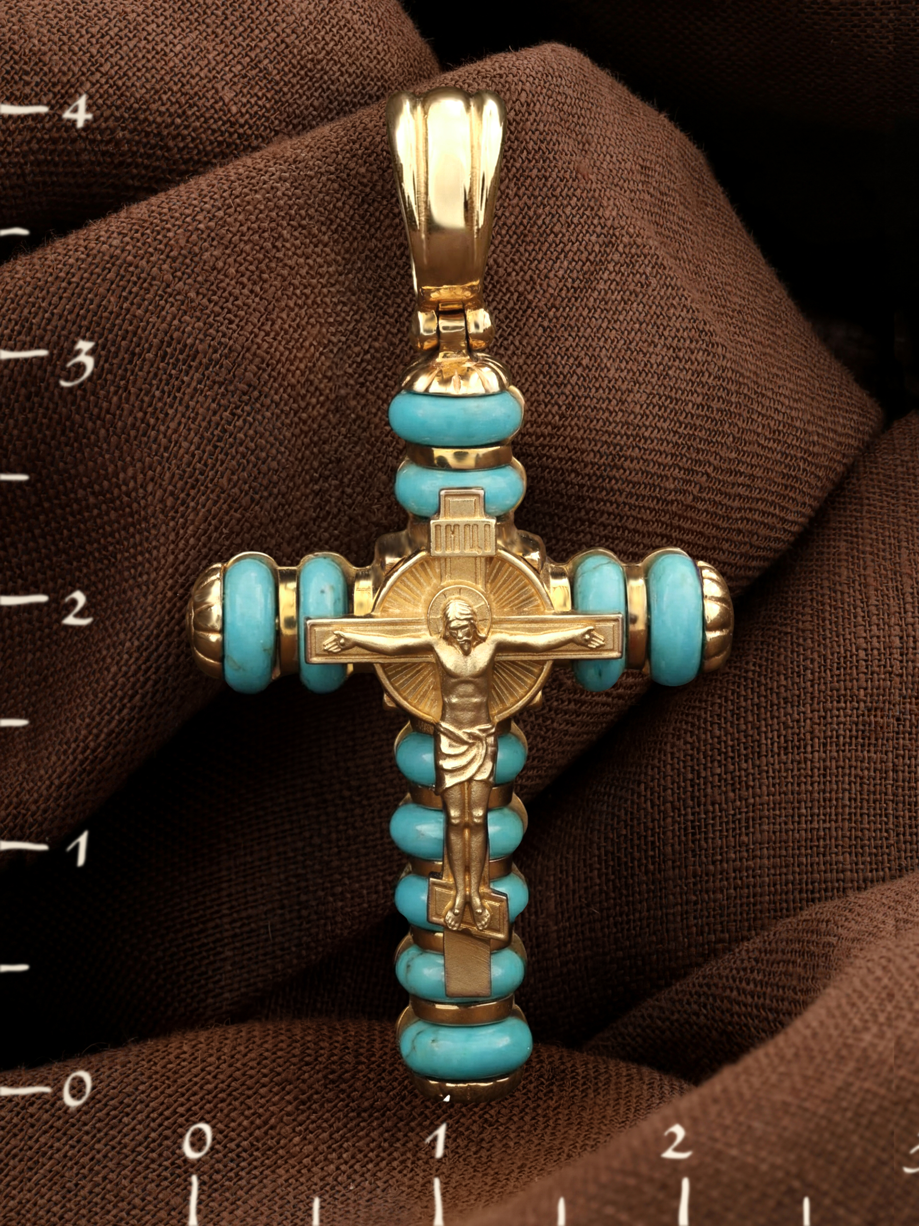 На лицевой стороне креста изображено Распятие Господа и Спасителя нашего Иисуса Христа, отдавшего Себя на смерть для искупления грехов мира. Крест является символом жертвенной любви Всеблагого Бога к падшим людям, всепобеждающим духовным оружием христиан, основанием и средоточием церковной жизни. Над вершиной Распятия помещена надпись «Царь Славы». На верхней перекладине расположена надпись «IНЦI». Она символизирует титло — табличку, на которой, согласно Евангелию, было начертано: Иисус Назорей, Царь Иудейский. Надпись «IC» «ХC»», означает Иисус Христос, помещаются на разных сторонах поперечной перекладины креста. Ниже помещена надпись «НИКА», что означает «победитель».
