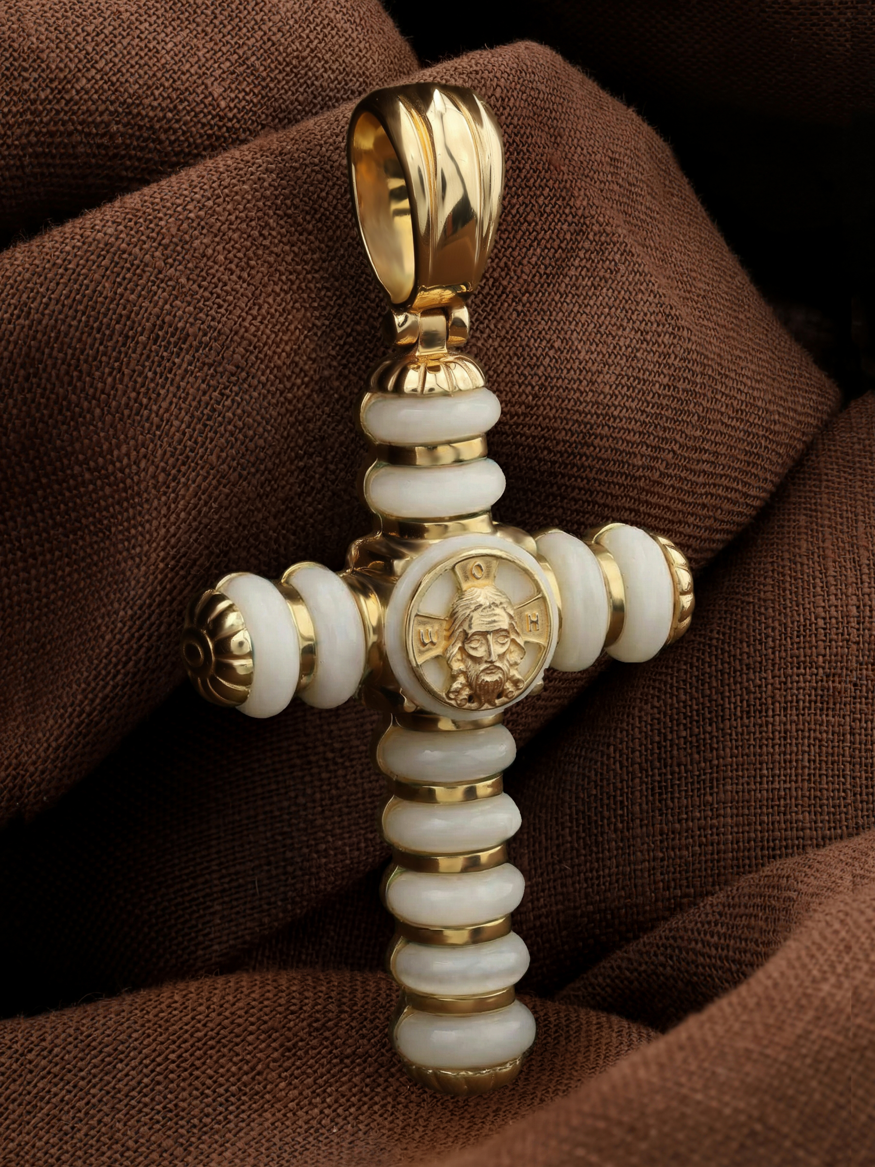 Крест из лимонного золота c кахолонгом