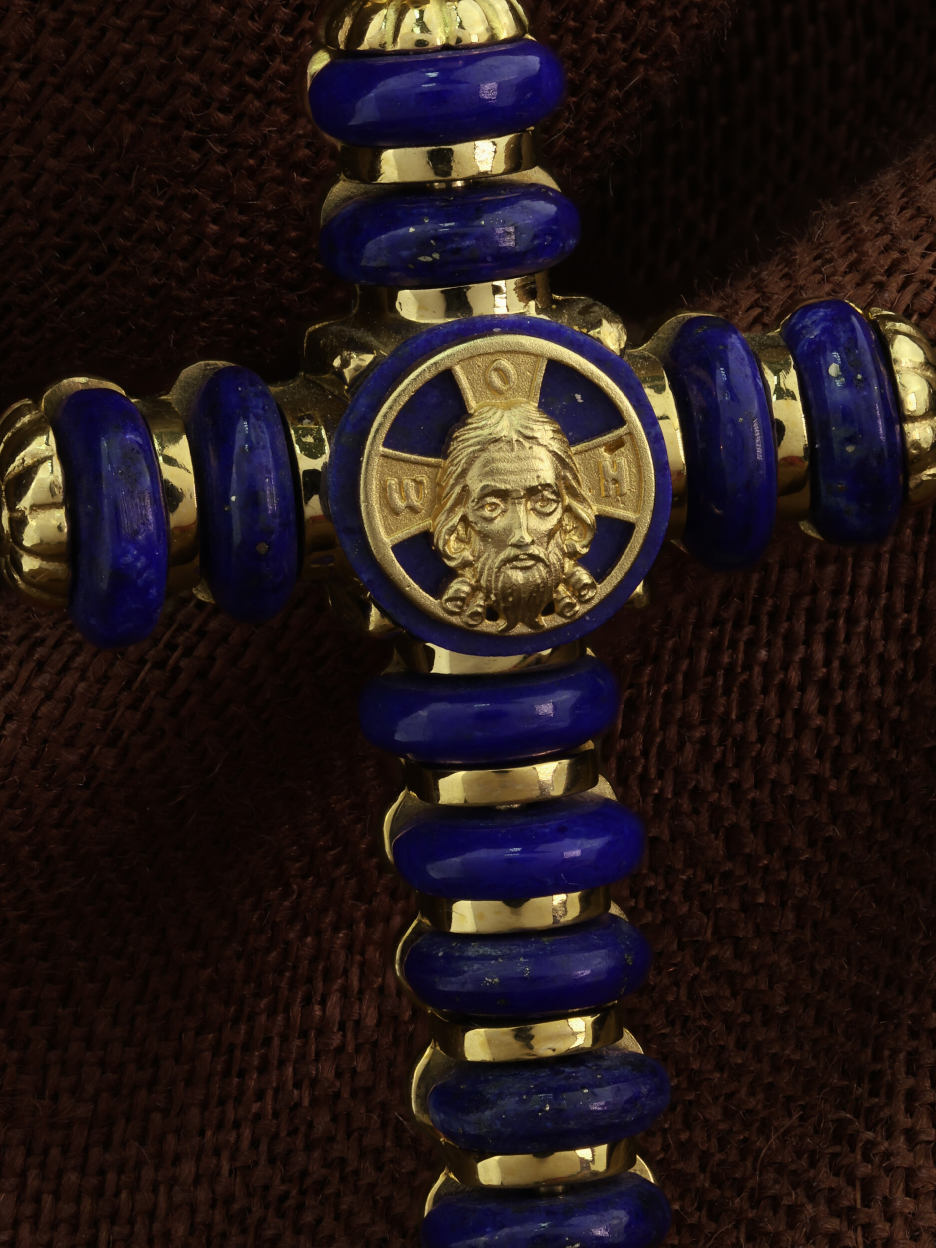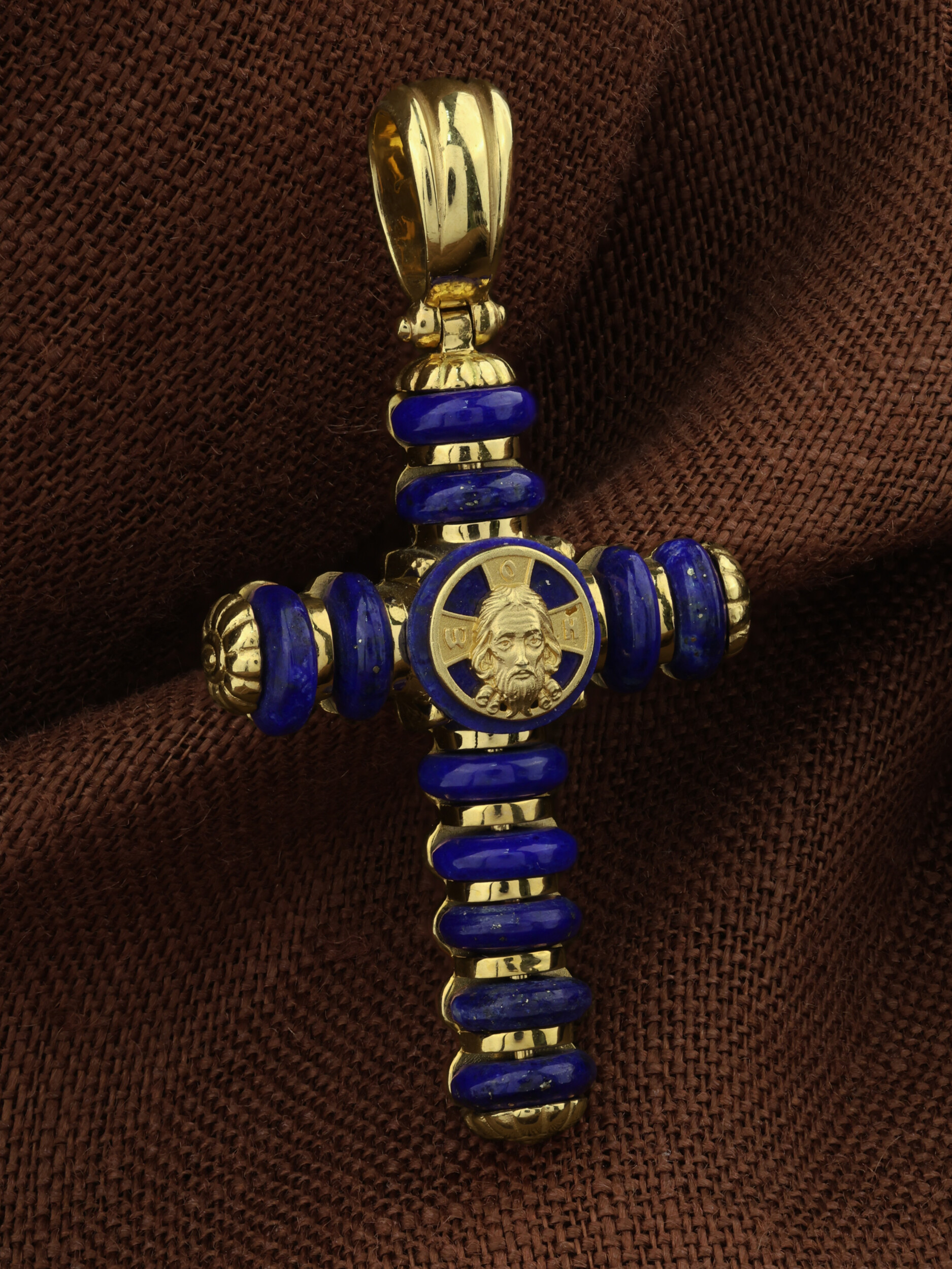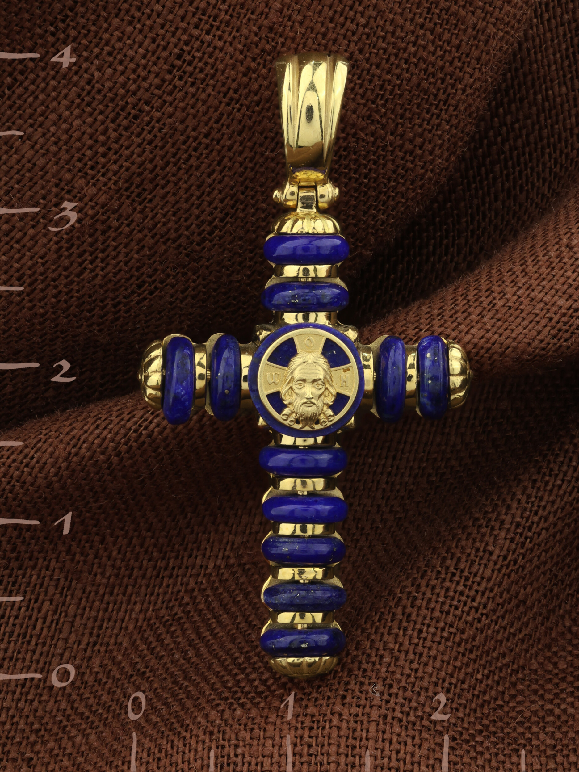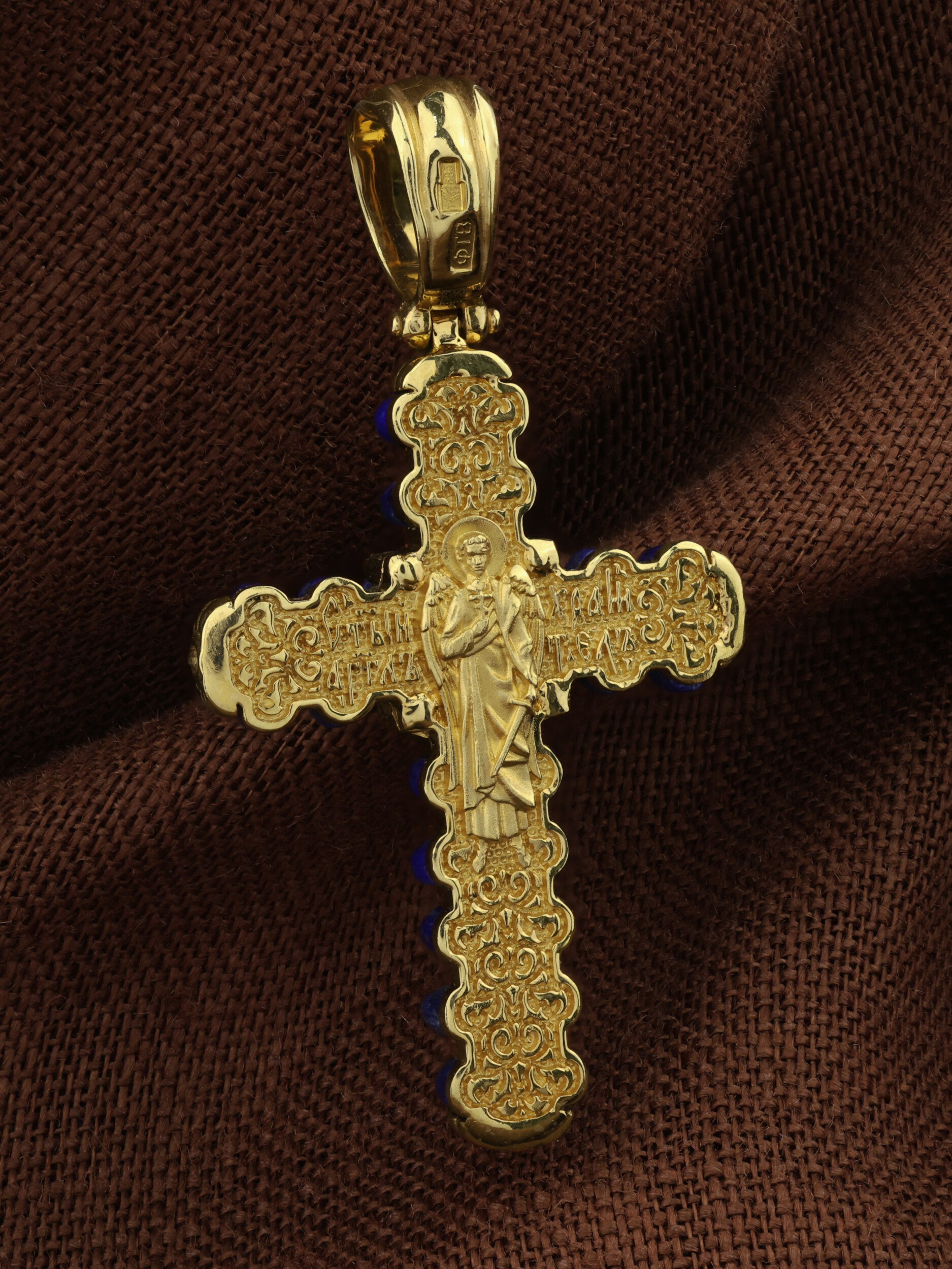 Крест из лимонного золота c лазуритом
