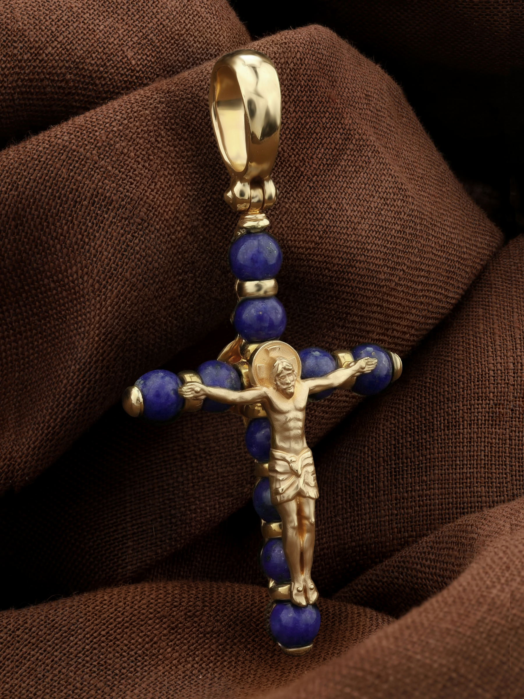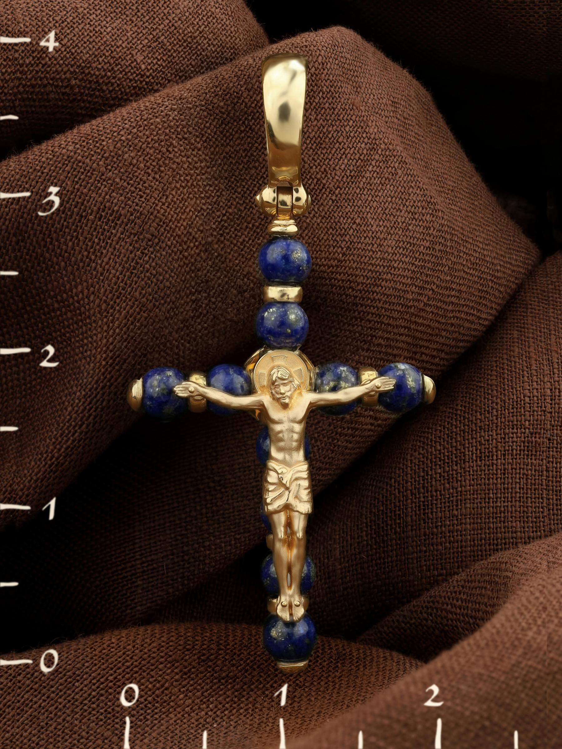 На лицевой стороне креста изображено Распятие Господа и Спасителя нашего Иисуса Христа. Своими крестными страданиями Господь смыл наши грехи, покрыл наш долг перед Богом или, на языке Писания, нас «искупил». В Голгофе сокрыта непостижимая тайна бесконечной правды и любви Бога. Крест стал символом победы добра над злом, жизни над смертью, напоминанием бесконечной Божьей любви, предметом радости. Воплотившийся Сын Божий Своею кровью освятил крест и сделал его проводником Своей благодати, источником освящения верующих.
