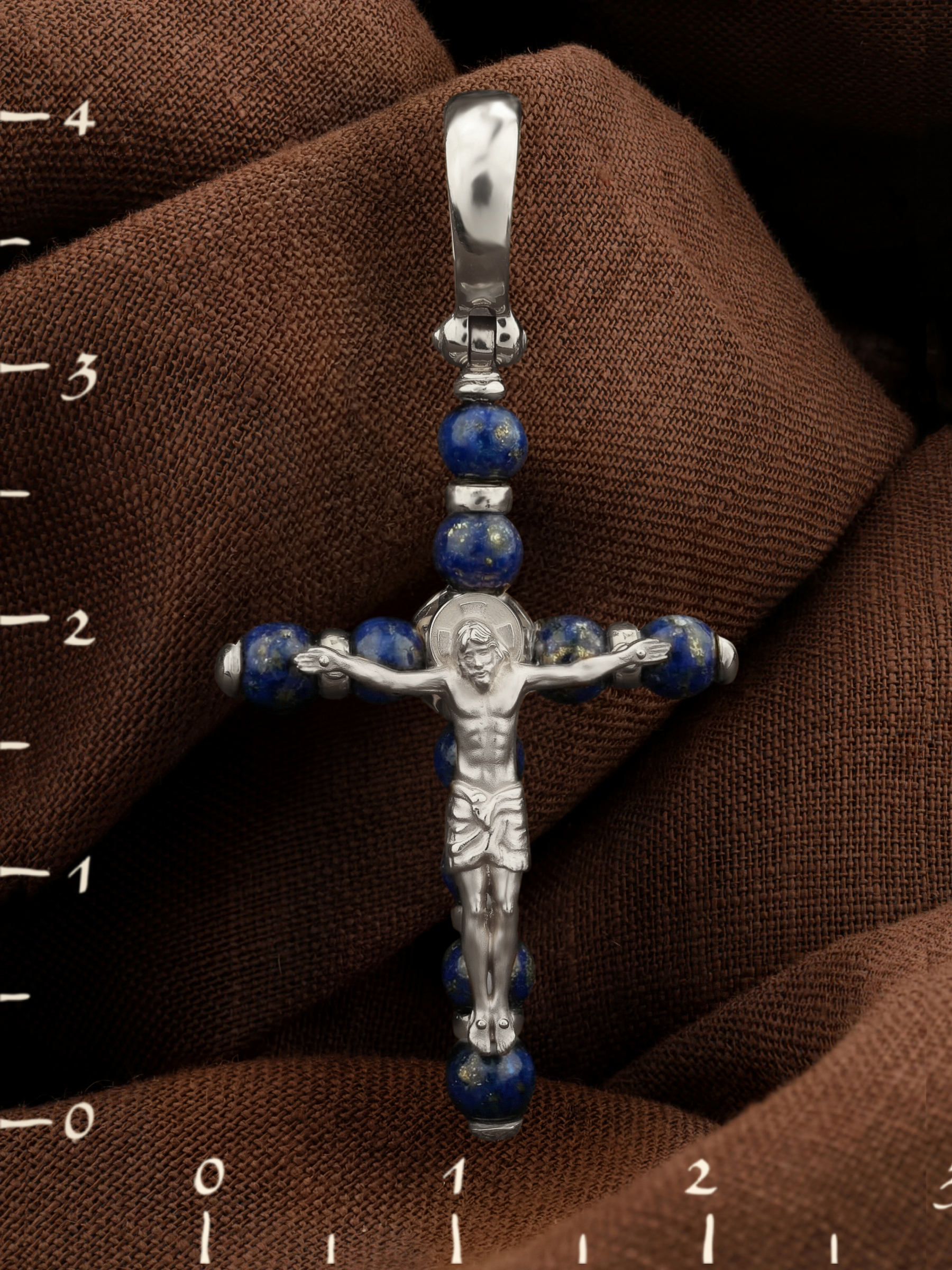 Крест из белого золота c лазуритом