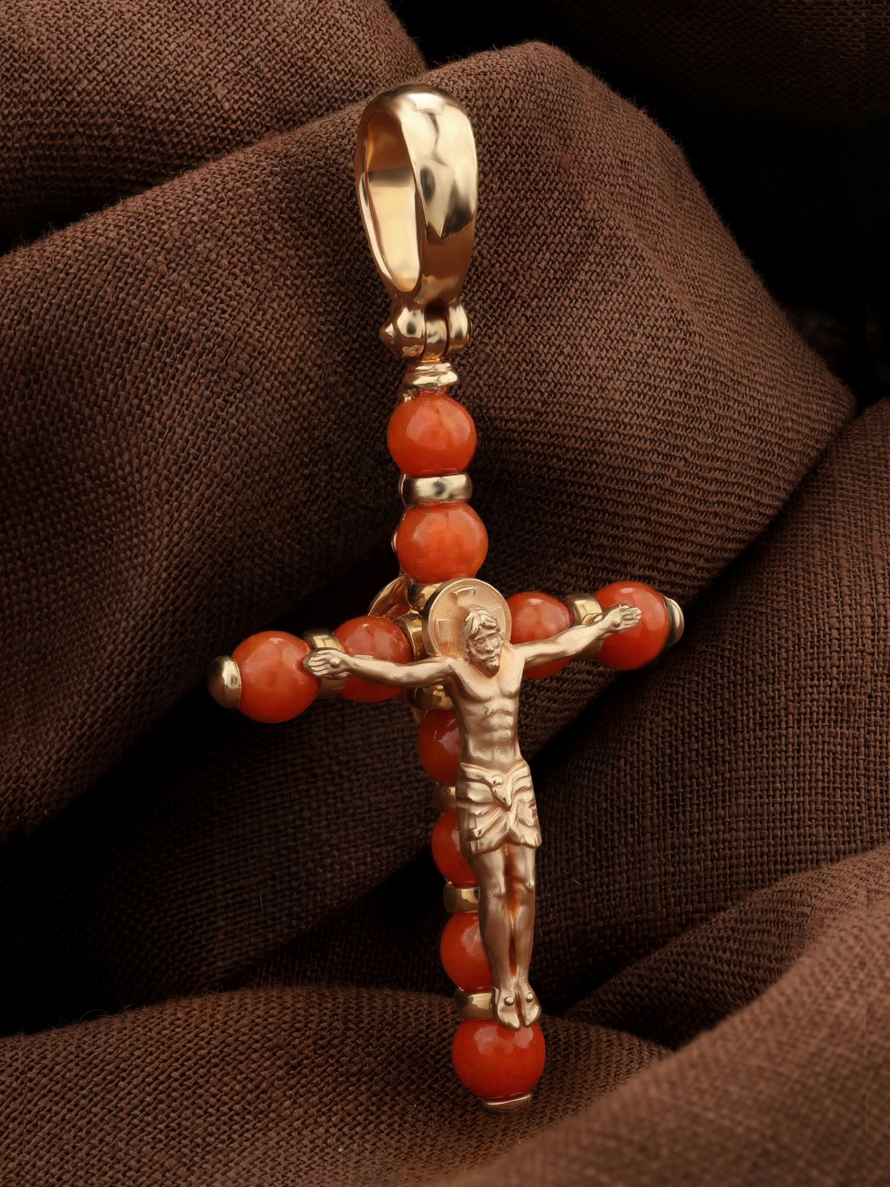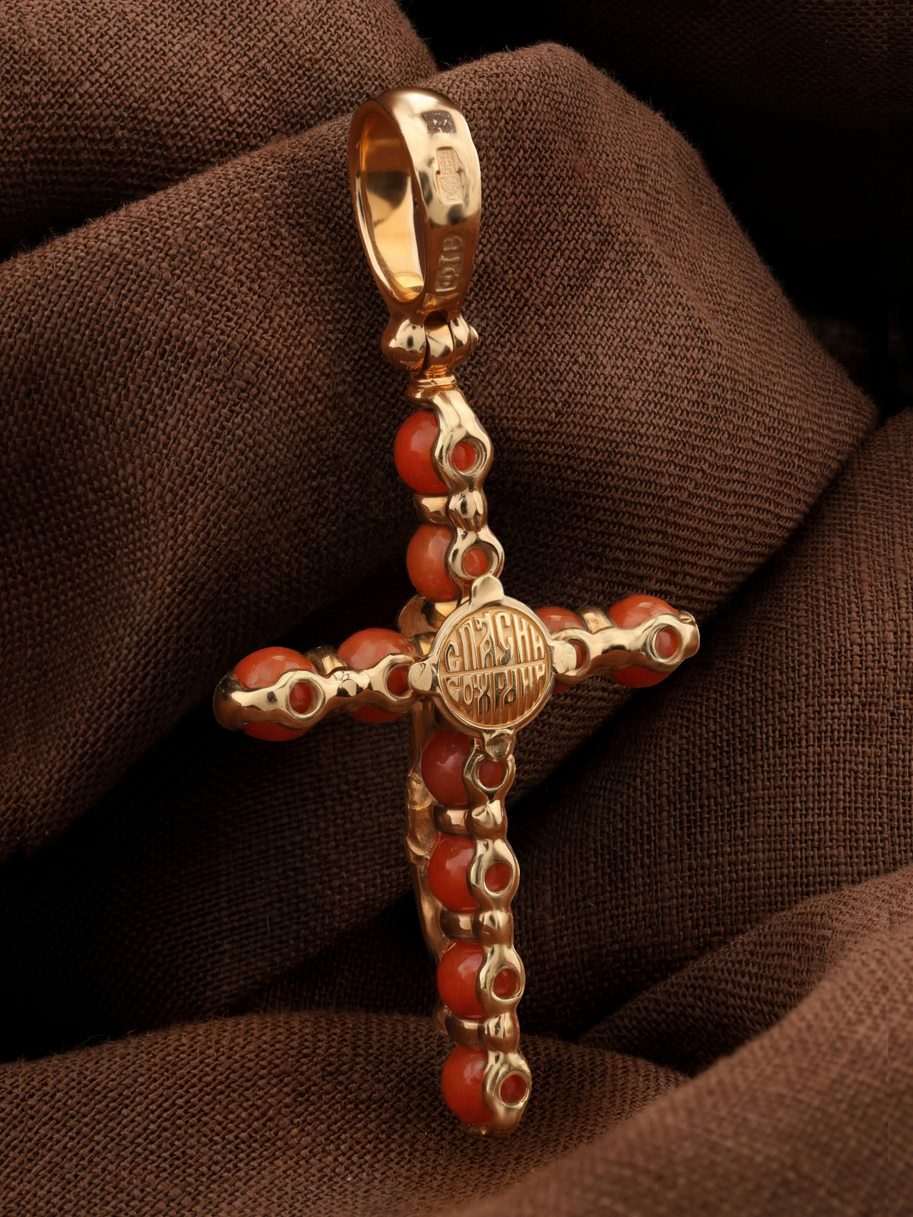 Крест из золота c кораллом