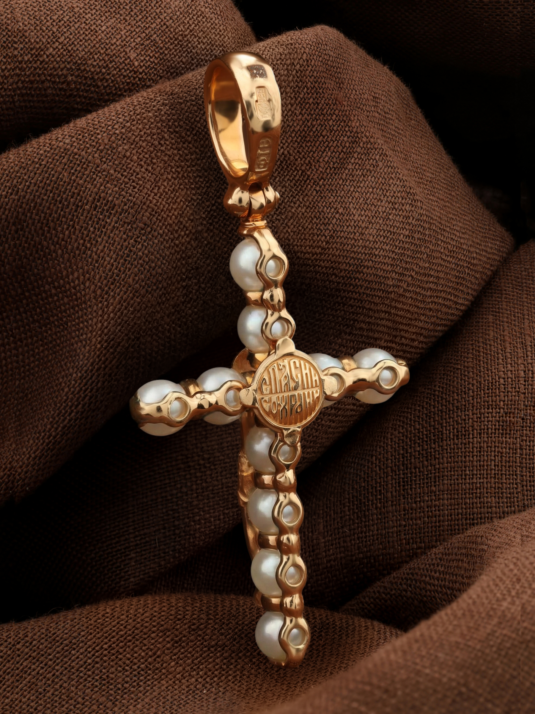 Крест из золота c жемчугом