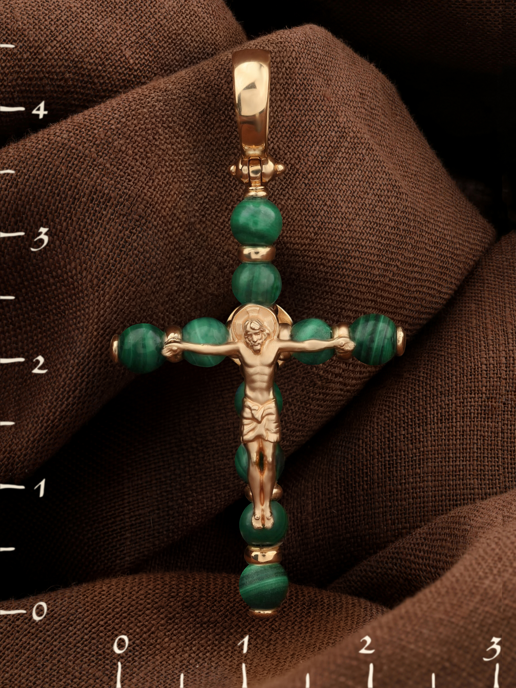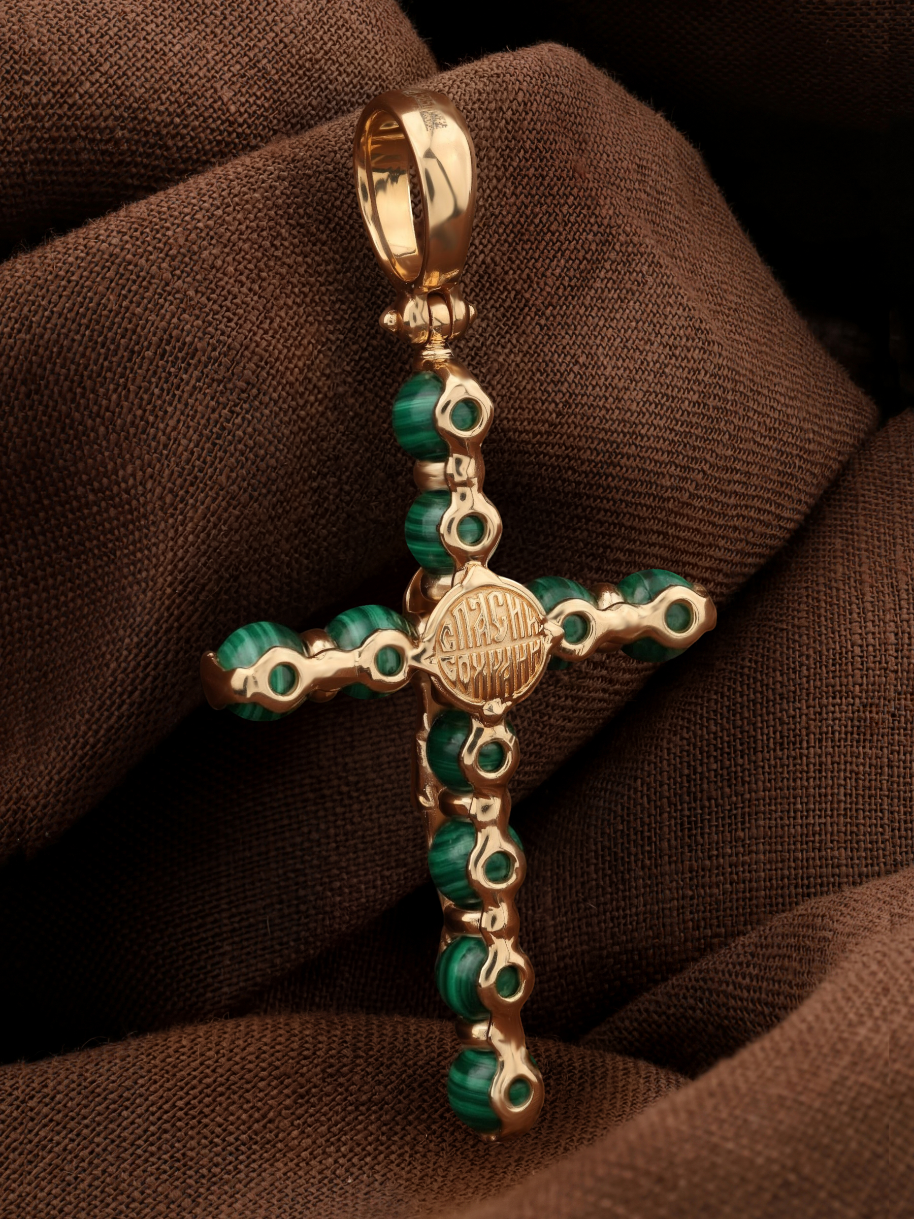 Крест из золота c малахитом