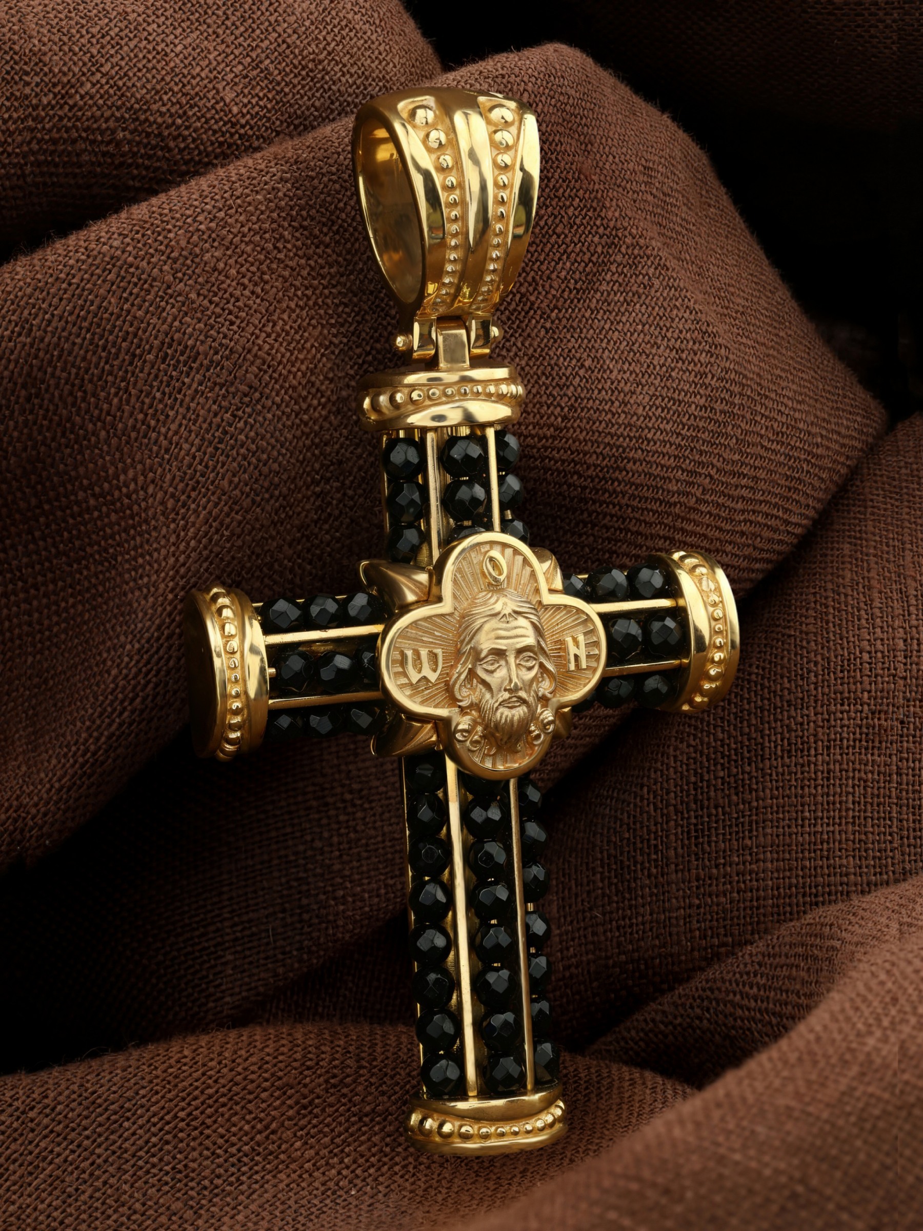 Крест из лимонного золота c ониксом