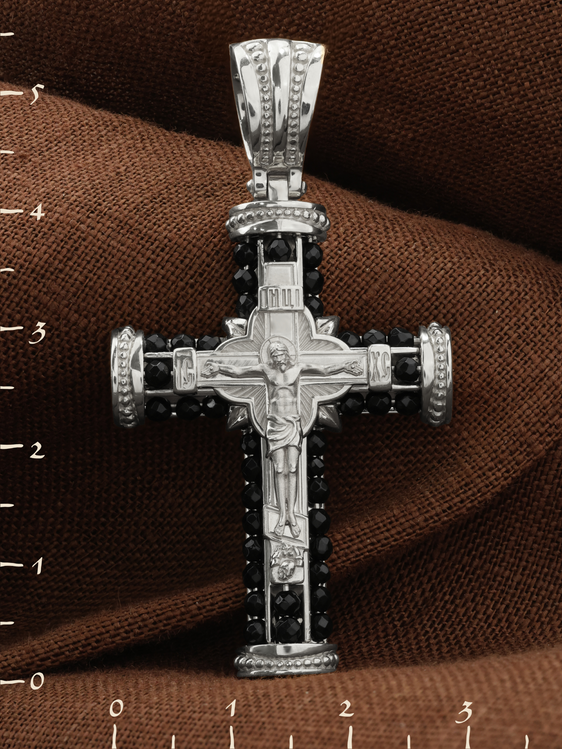 Крест из белого золота c ониксом